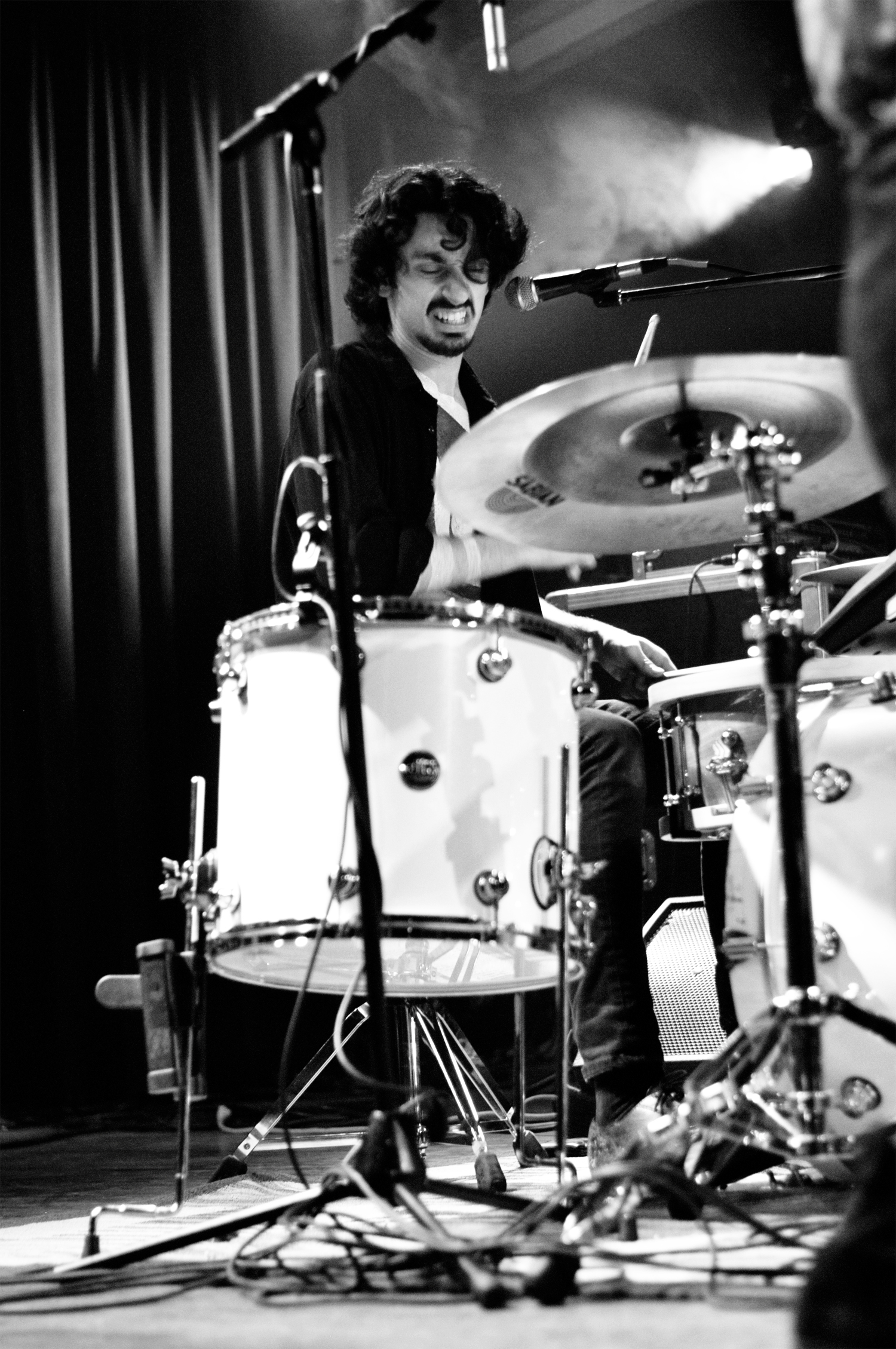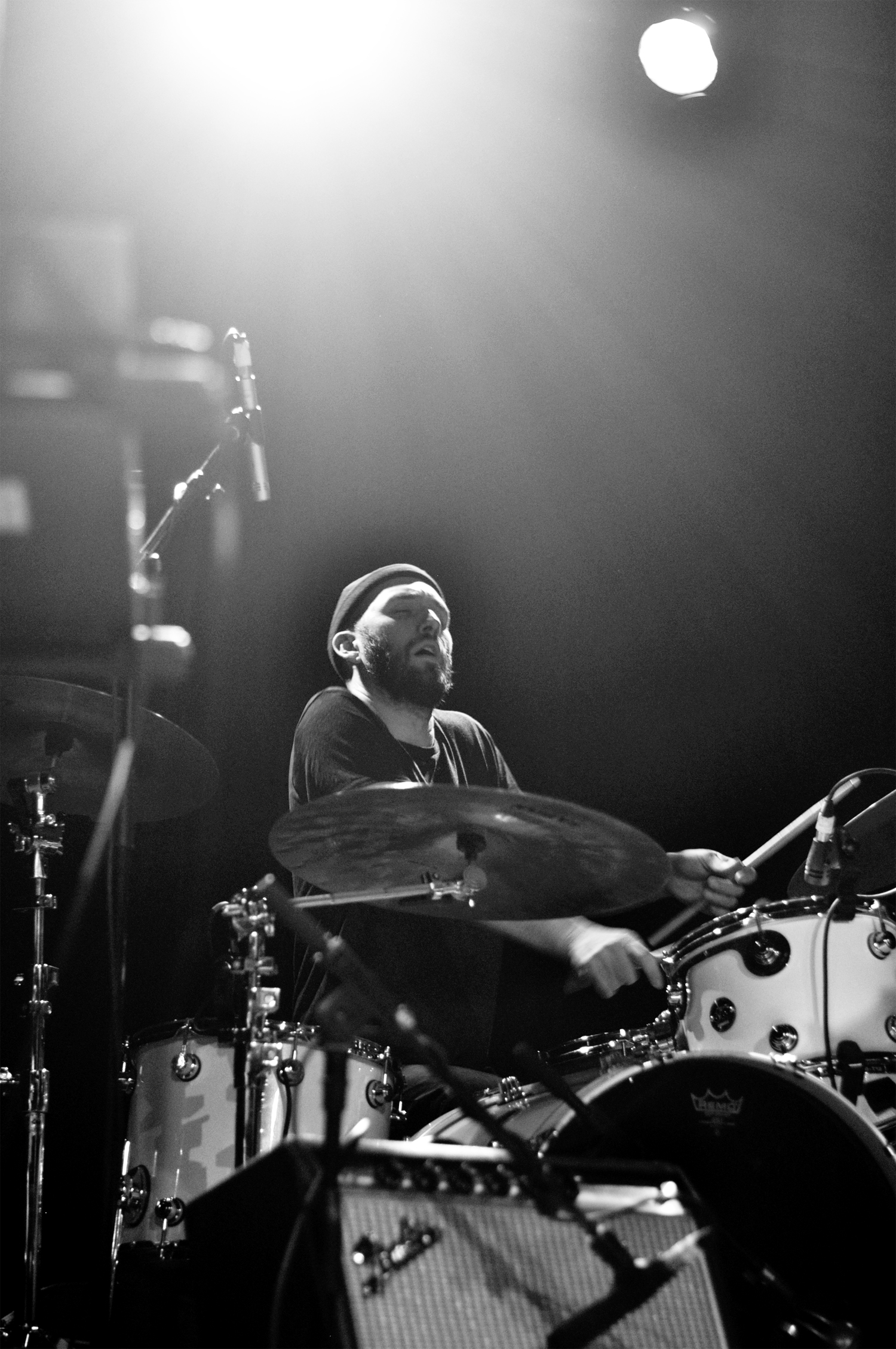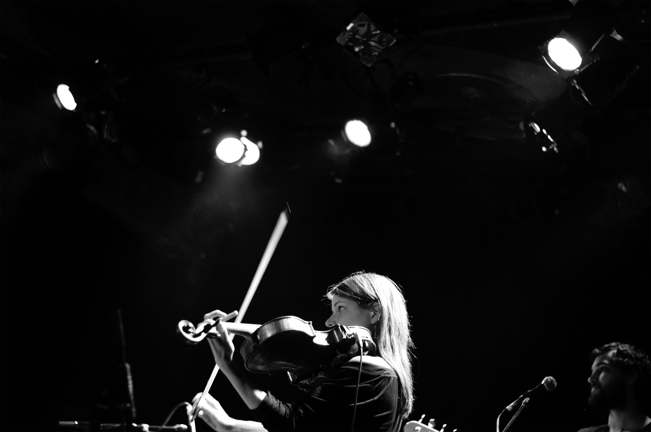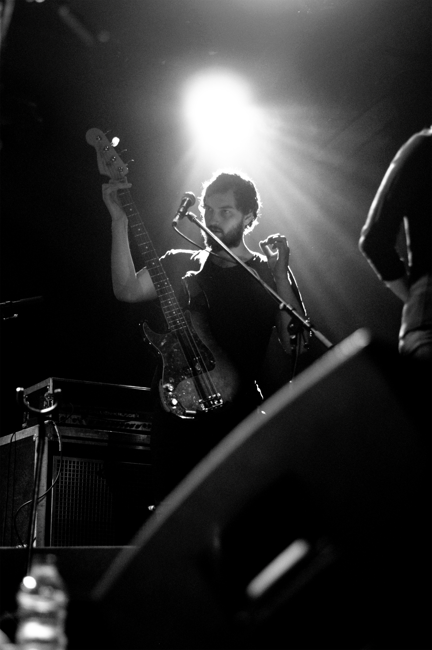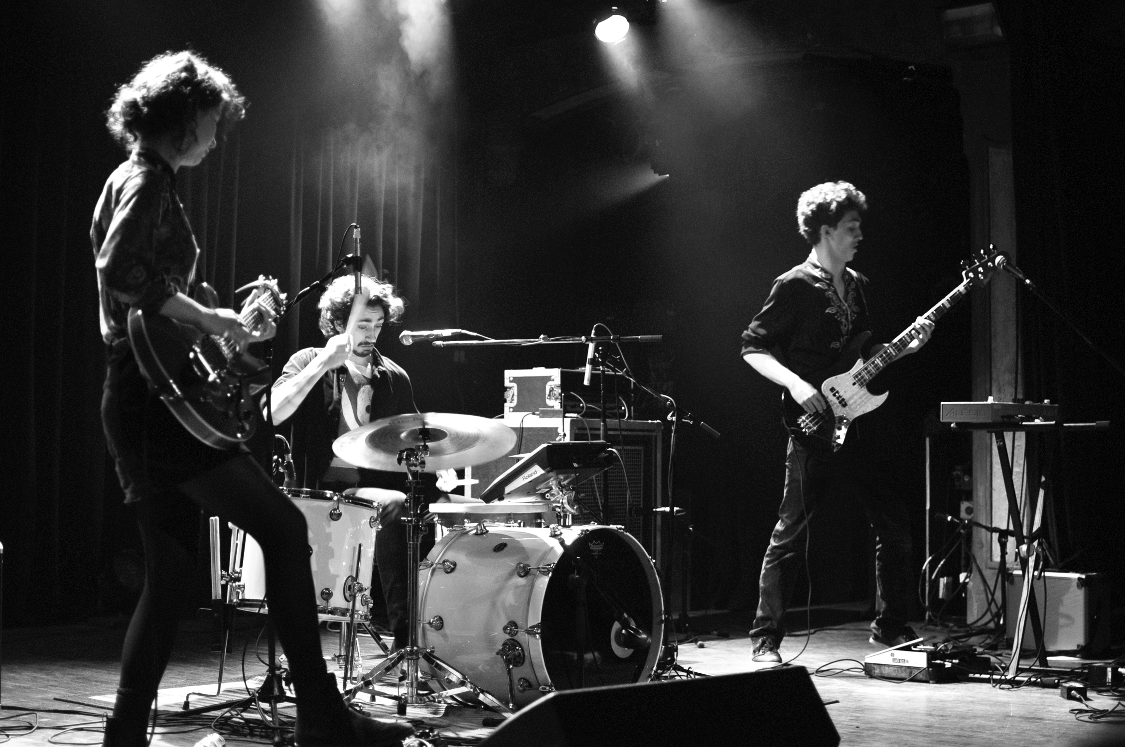 “C’est le groupe que je veux que mes enfants écoutent” glisse une jeune femme enthousiaste à son amie alors que Valse Fréquence vient de finir son set. Les Montréalais étaient attendus par une grande portion de spectateurs, famille, amis et connaissances venus nombreux pour les soutenir. Le trio est une jeune formation plutôt originale : au centre est en effet installé le batteur chanteur. À sa gauche la basse, à sa droite la guitare. Les rythmes sont cadencés, la basse rock peut prendre des allures presque funk et blues, la guitare elle peut être aussi légère qu’incisive. Le groupe s’éclate sur scène et ça se voit, en témoignent les nombreuses grimaces et les états tétaniques dans lesquels se met le bassiste. Musicalement c’est très intéressant, c’est fougueux, mais je suis un peu perdue, il y a de tout, et ça se disperse un peu trop. J’ai plus de plaisir à les regarder s’agiter et s’amuser qu’à essayer de me laisser porter et comprendre leur musique.