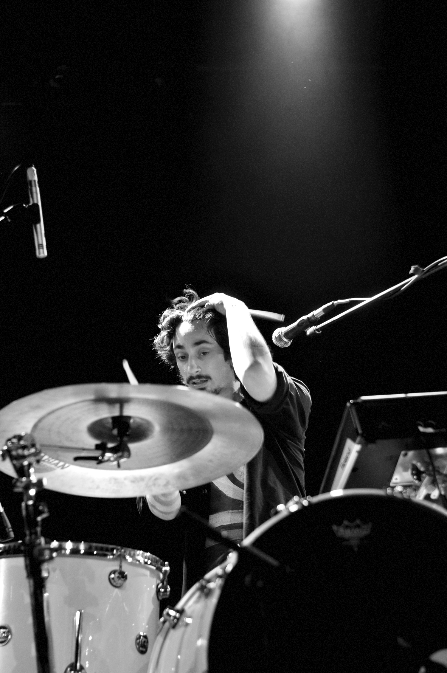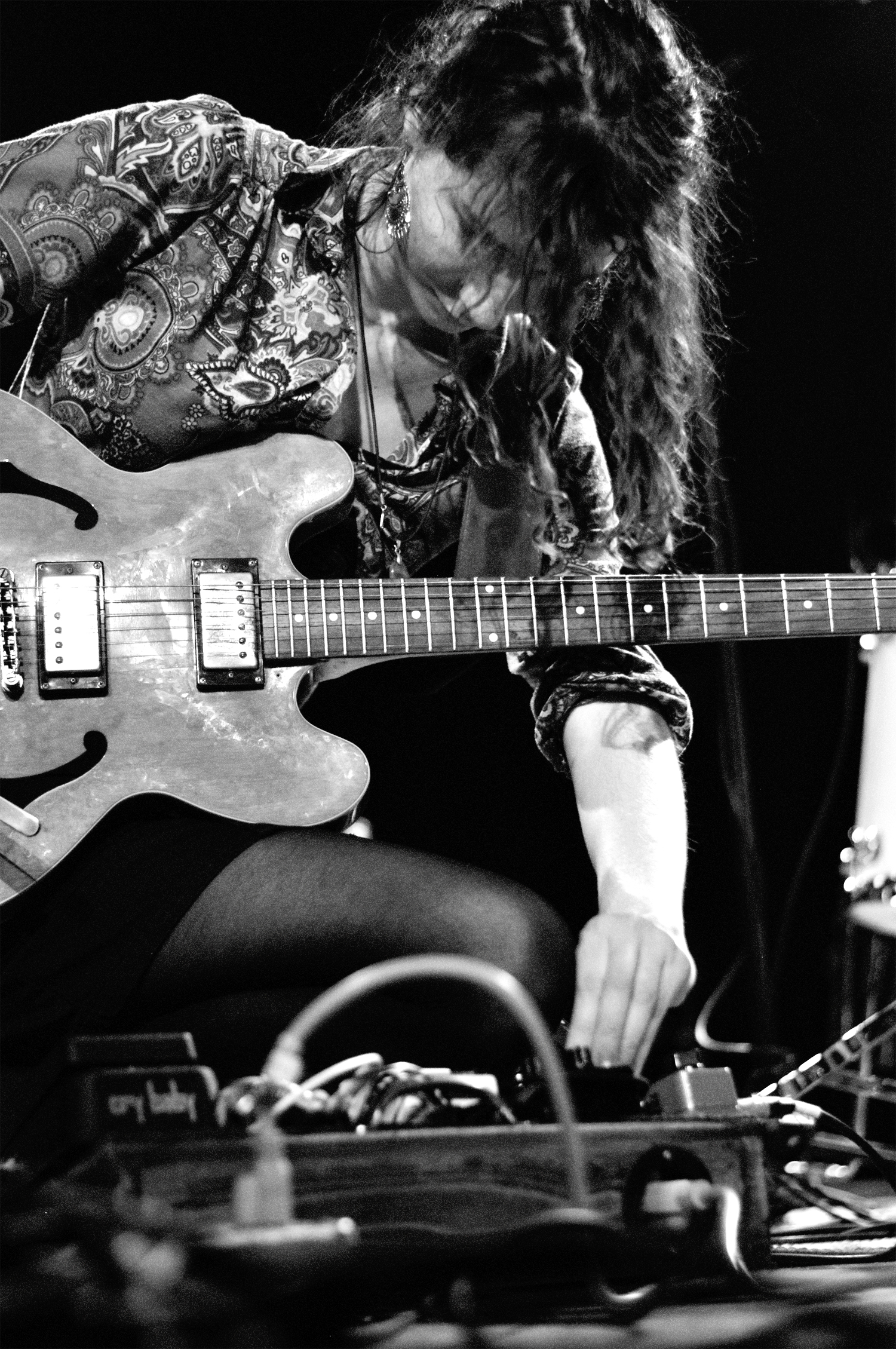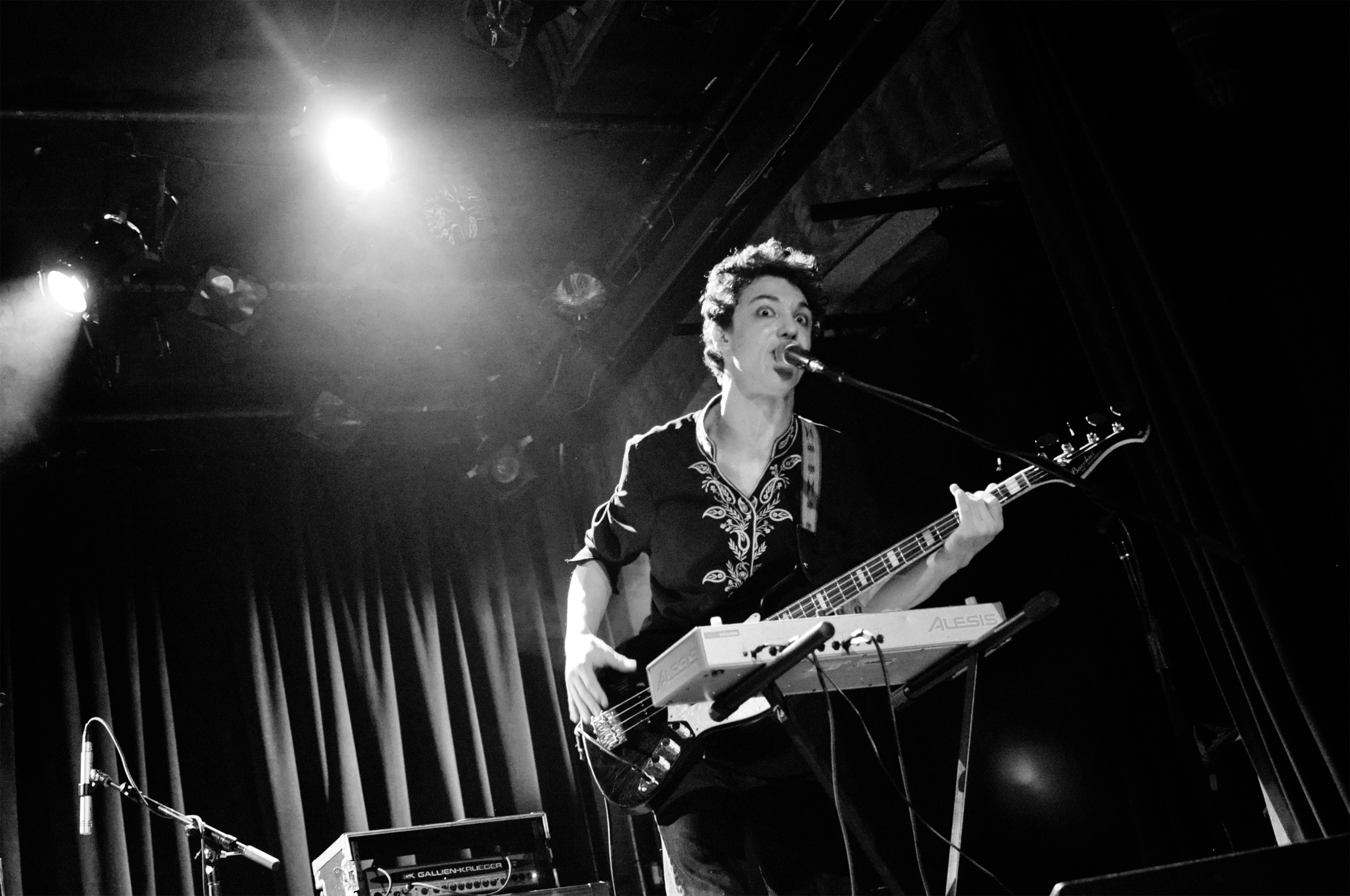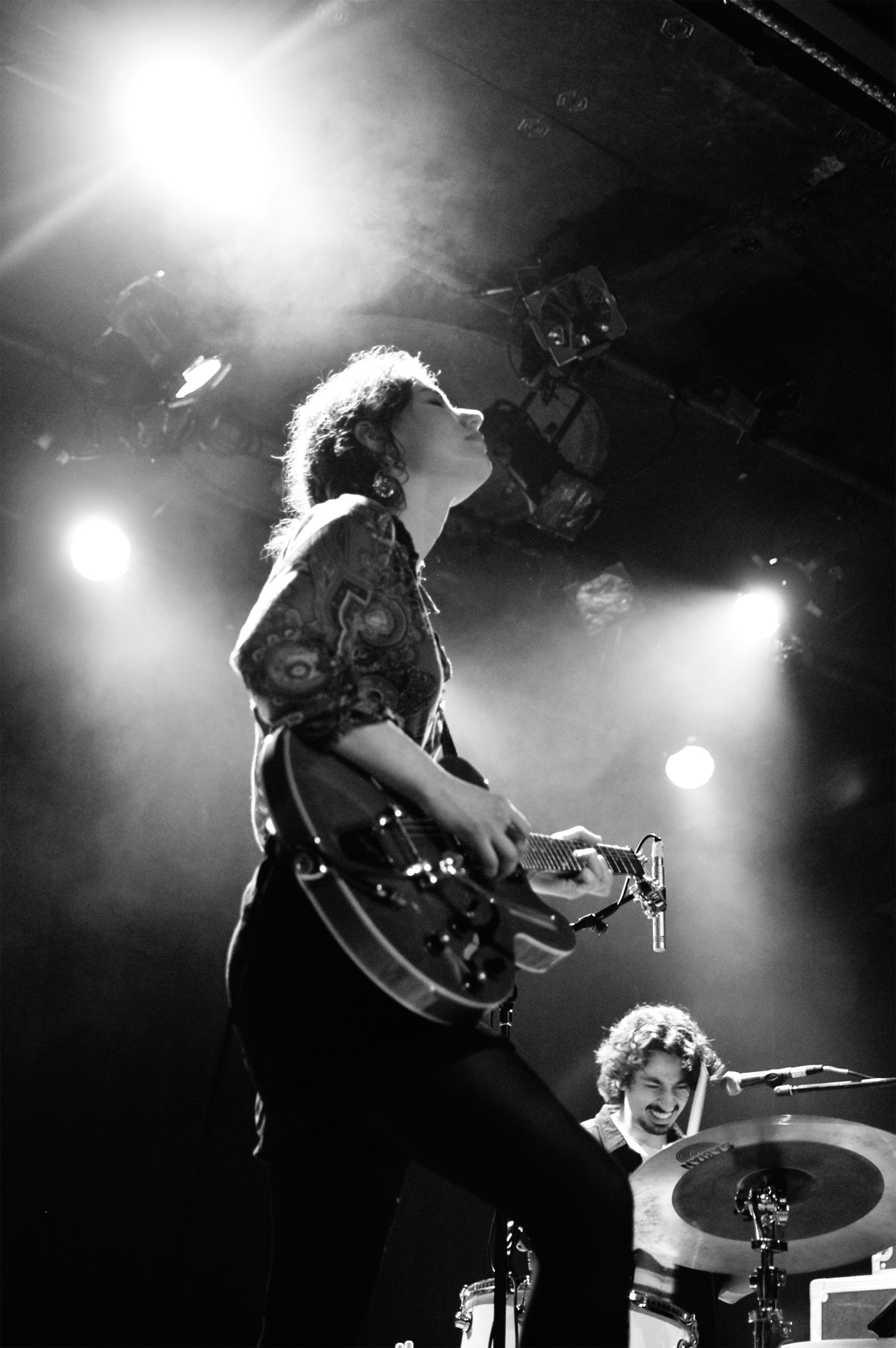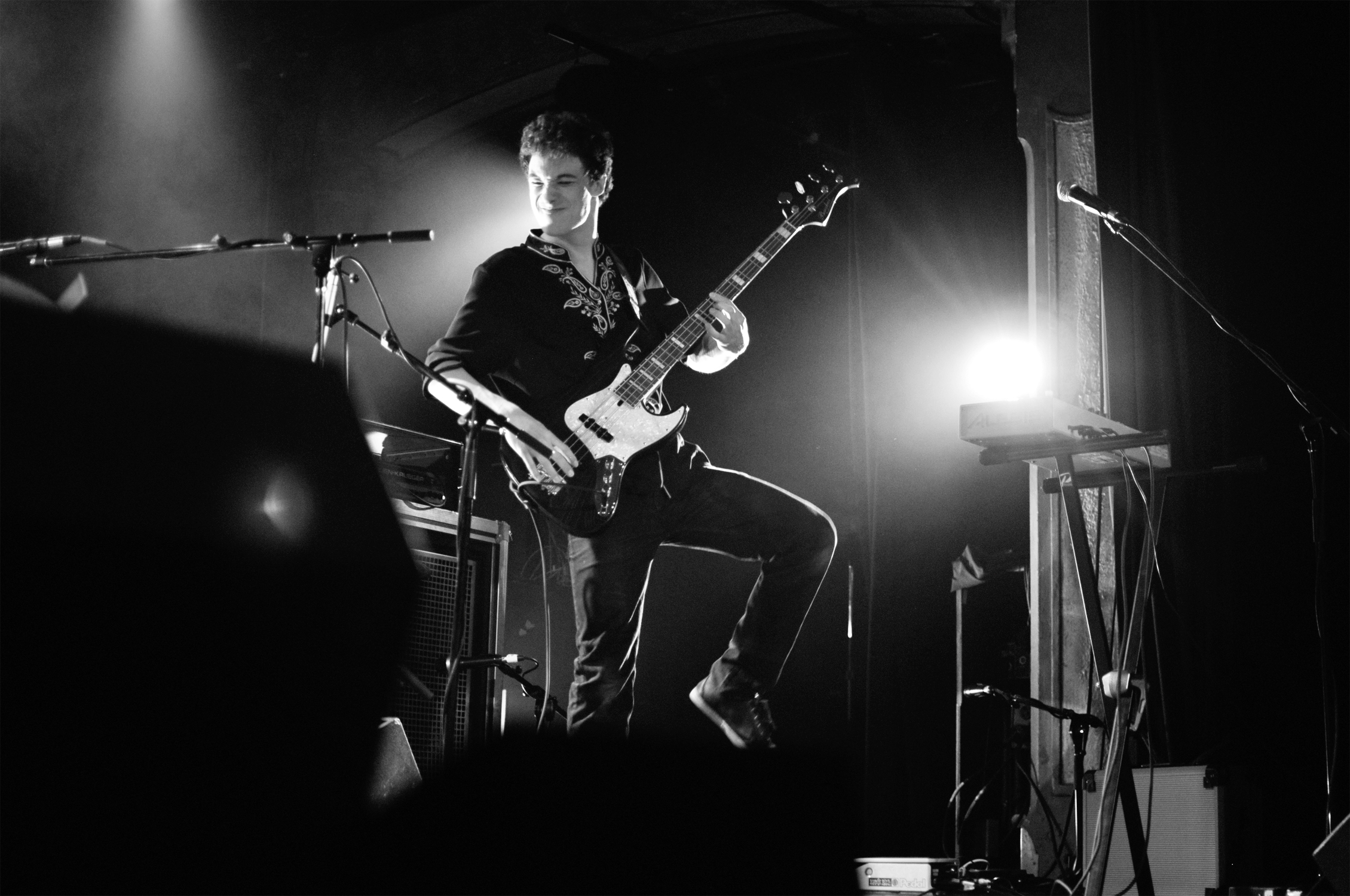 “C’est le groupe que je veux que mes enfants écoutent” glisse une jeune femme enthousiaste à son amie alors que Valse Fréquence vient de finir son set. Les Montréalais étaient attendus par une grande portion de spectateurs, famille, amis et connaissances venus nombreux pour les soutenir. Le trio est une jeune formation plutôt originale : au centre est en effet installé le batteur chanteur. À sa gauche la basse, à sa droite la guitare. Les rythmes sont cadencés, la basse rock peut prendre des allures presque funk et blues, la guitare elle peut être aussi légère qu’incisive. Le groupe s’éclate sur scène et ça se voit, en témoignent les nombreuses grimaces et les états tétaniques dans lesquels se met le bassiste. Musicalement c’est très intéressant, c’est fougueux, mais je suis un peu perdue, il y a de tout, et ça se disperse un peu trop. J’ai plus de plaisir à les regarder s’agiter et s’amuser qu’à essayer de me laisser porter et comprendre leur musique.