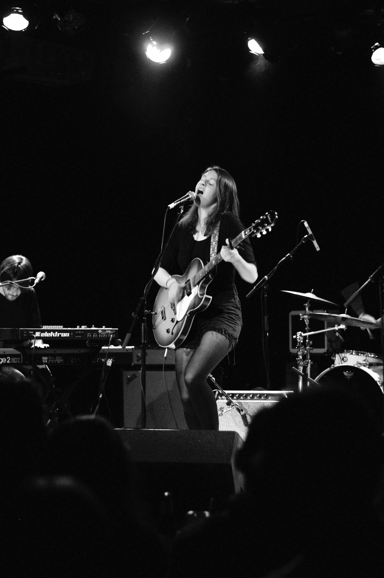 Un premier titre au piano puis le reste à la guitare avec son band, Lou-Adriane Cassidy propose un set vibrant et efficace avec des chansons qui figureront très certainement sur son premier album, prévu pour la fin de l’année. Le timbre est vraiment beau, rond et suave. Très maîtrisé. Elle fait des blagues, et admet candidement que ses chansons ne sont pas très guillerettes niveau paroles. Alors pour illustrer ses propos, elle enchaîne en guitare voix par la très belle “La Petite Mort”. Très triste aussi. Lou-Adriane nous raconte aussi l’origine de cette chanson que les sœurs Boulay lui ont écrite. Pas la meilleure de son set à mon goût, malgré tout l’amour que je porte aux sœurs. “Ça va ça va” que lui a composé Philémon Cimon, son premier single d’ailleurs, est bien plus entraînant à mon goût. C’est naturellement avec celui-ci qu’elle clôture son concert, sourire aux lèvres, le devoir accompli.