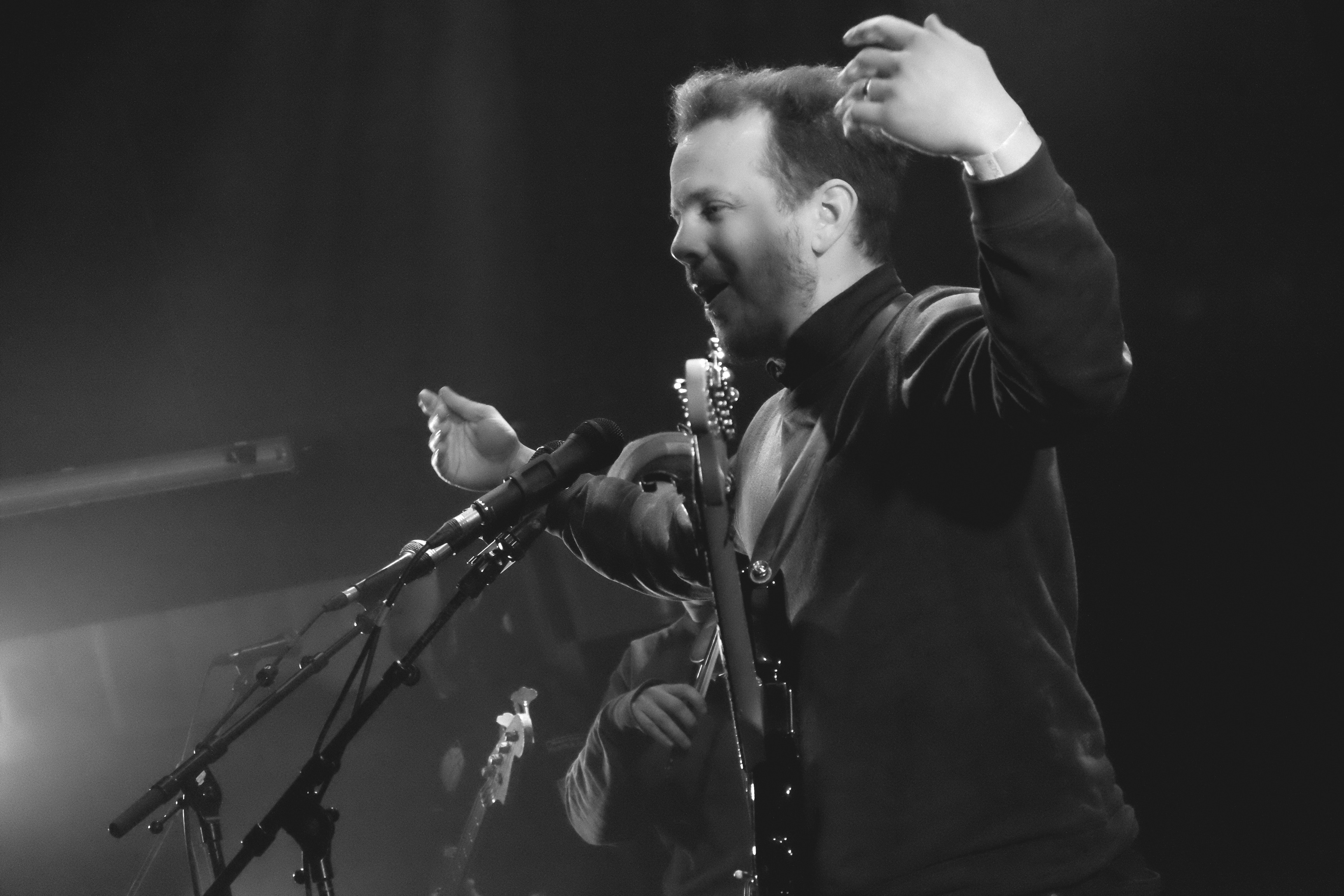Je ne vais pas te redire à quel point il ne faut jamais louper les premières parties. Je l’ai déjà écrit il y a peu. Et je vais essayer de passer rapidement sur Typhoon. Ils débarquent à 7 sur scène : 2 batteurs, 2 guitaristes, un bassiste, un clavier, et une violoniste. J’apprendrais plus tard qu’ils peuvent être bien plus nombreux dans leur pays d’origine. Et justement, ce pays d’origine, à l’écoute des premiers titres, j’ai beaucoup de mal à le situer. Une dose d’Arcade Fire, du violon un peu irlandais… Entre le Canada et l’Irlande, il faudra pourtant trancher. Ce sera… les Etats-Unis ! Originaire de l’Oregon, le groupe déroule un set très dense de bon indie rock. Dommage que le leader Kyle Morton et sa voix prennent autant de place, et ne laissent pas la musique décoller plus, et les chœurs prendre de l’ampleur… Le set, néanmoins, reste agréable à suivre.