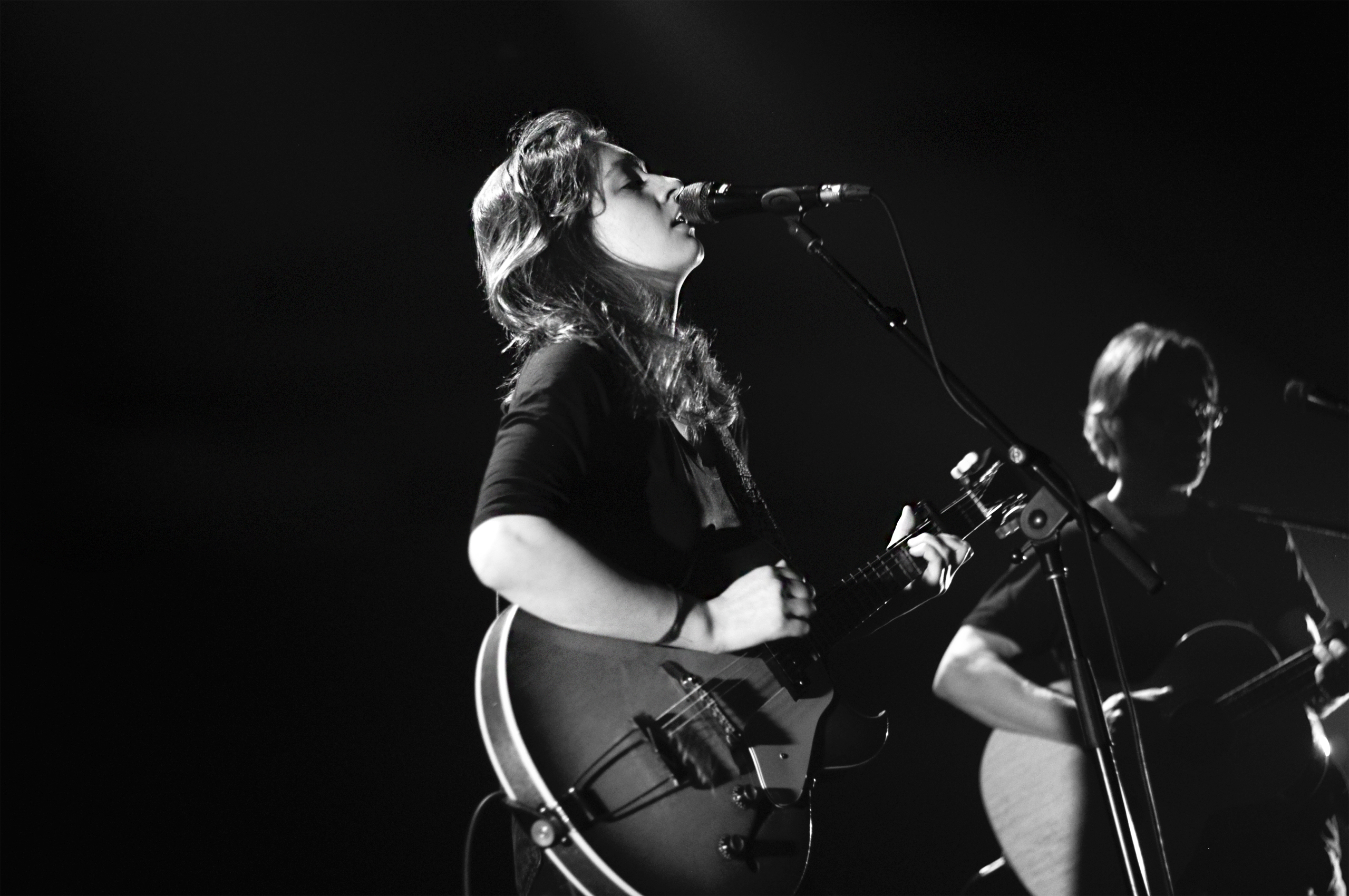 Deux concerts de Lou-Adriane Cassidy en une semaine. C’est le destin. Lundi aux Francouvertes en groupe, on la retrouve ce samedi soir en première partie de Fishbach à l’Astral. Cette fois-ci, elle est en duo. Deux guitares donc, et un kick l’histoire de rythmer un peu le tout. Pas que ça en ait besoin, mais c’est vrai que c’est un set complètement différent qu’elle présente. Beaucoup plus folk déjà et plus sucré. Même si, comme Lou-Adriane aime à le rappeler, ses chansons ne sont pas des hymnes à la joie. La blague sur le moment métal au moment de jouer “Les Plants de fraises”, la chanson que les sœurs Boulay lui ont écrite, passe toujours aussi bien. Malheureusement, c’est une première partie, et qui dit première partie dit à peine quelques chansons. On la retrouvera vite.