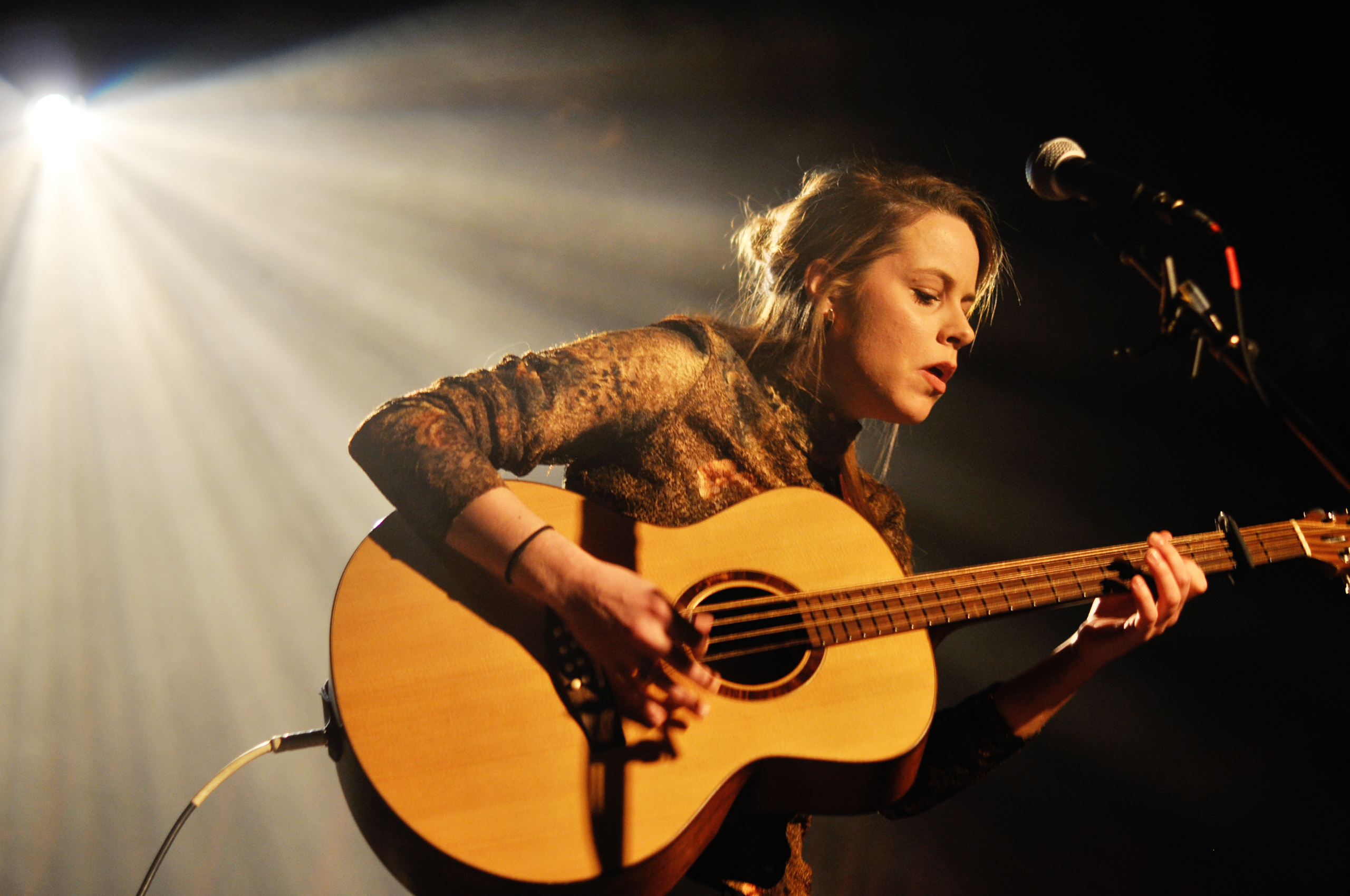 Ce soir-là, Marie Claudel (anciennement Chénard) joue trois nouvelles chansons qui figureront sur son prochain album. Le timbre est profond et suave. Elle maîtrise de ses doigts de fée sa guitare à huit cordes, son “mando cello”, puisque l’année passée, elle l’avait mentionnée sur scène, mais avait oublié de la ramener. Il n’est jamais trop tard. La jeune femme finit son court set avec une chanson plus “rock” car, avoue-t-elle, c’est une soirée rock et il n’est pas question de finir avec de petites ballades. Celle qui a collaboré avec Jesse McCormack et Jean-Philippe Levac nous donne un aperçu ultra séduisant de ce futur album qu’on attendra avec grande impatience.