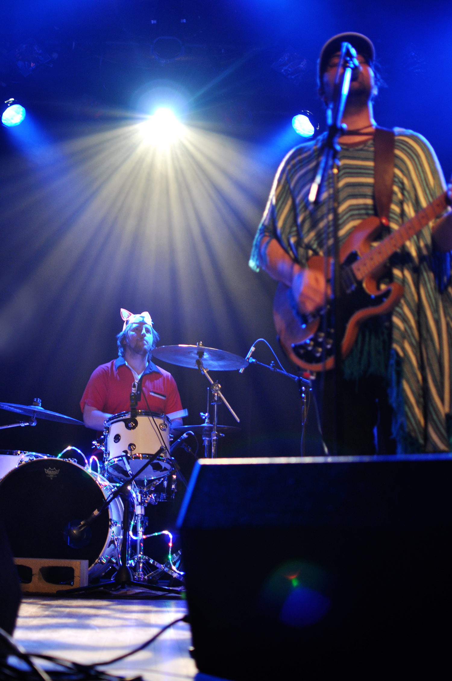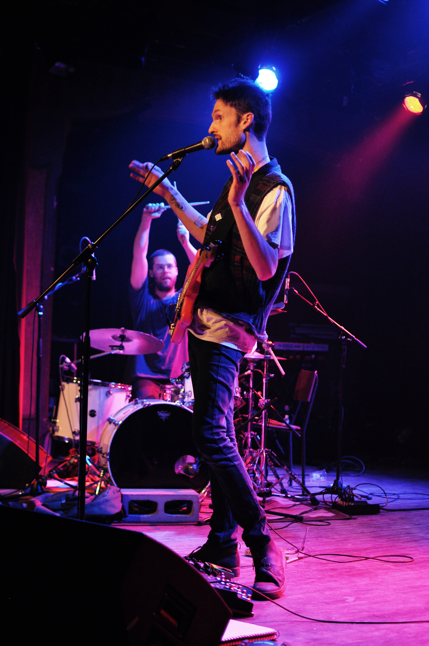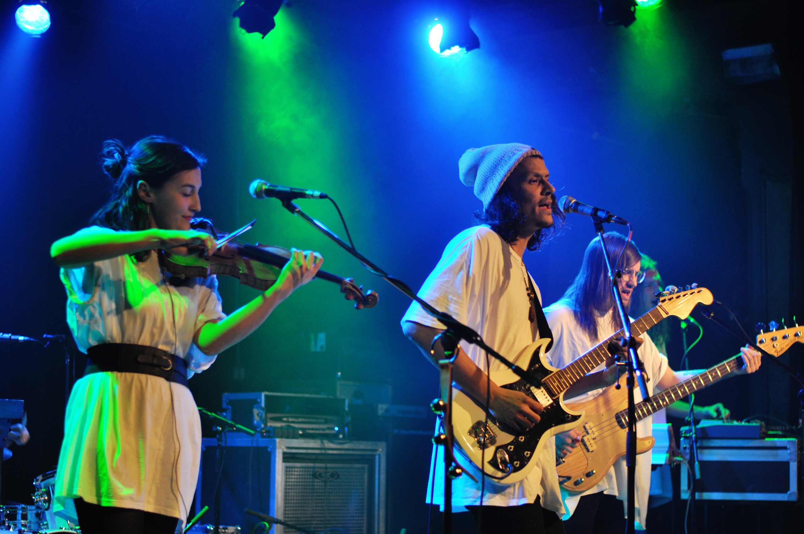 Le trio de Totem Tabou avait attiser mon attention sur le papier. Dans les faits, je suis passée complètement à côté de leur performance. Musicalement, je n’y comprends rien, je ne parviens pas à me raccrocher à un passage, une mélodie, ou un bout de texte, ne pouvant à peine distinguer les paroles. Je n’ai rien contre les dissonances, les changements abrupts de rythmes et autres expérimentations, seulement c’est bien s’en servir avec parcimonie, ça n’en sera que plus percutant. J’ai plus l’impression de regarder trois musiciens qui jam chacun de leur côté dans un garage qu’un groupe dont la création remonte à 2013. Pas plus bavard que Barrdo, Totem Tabou livre une prestation presque égoïste vis à vis du public, autocentrée sur Christian St-Pierre, le frontman survolté au poncho tournoyant. Cruelle déception.