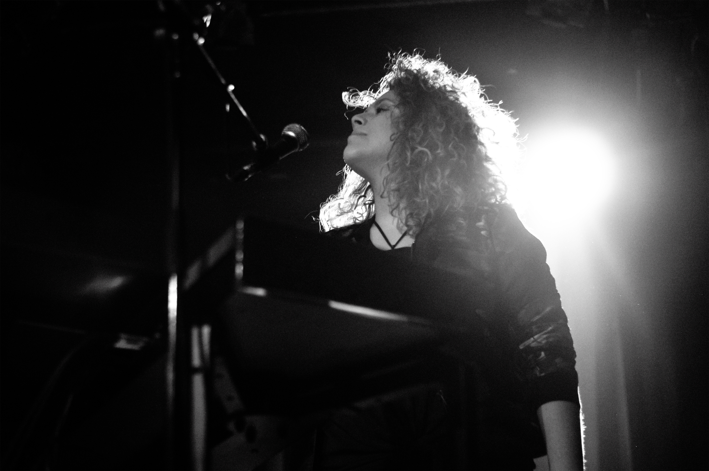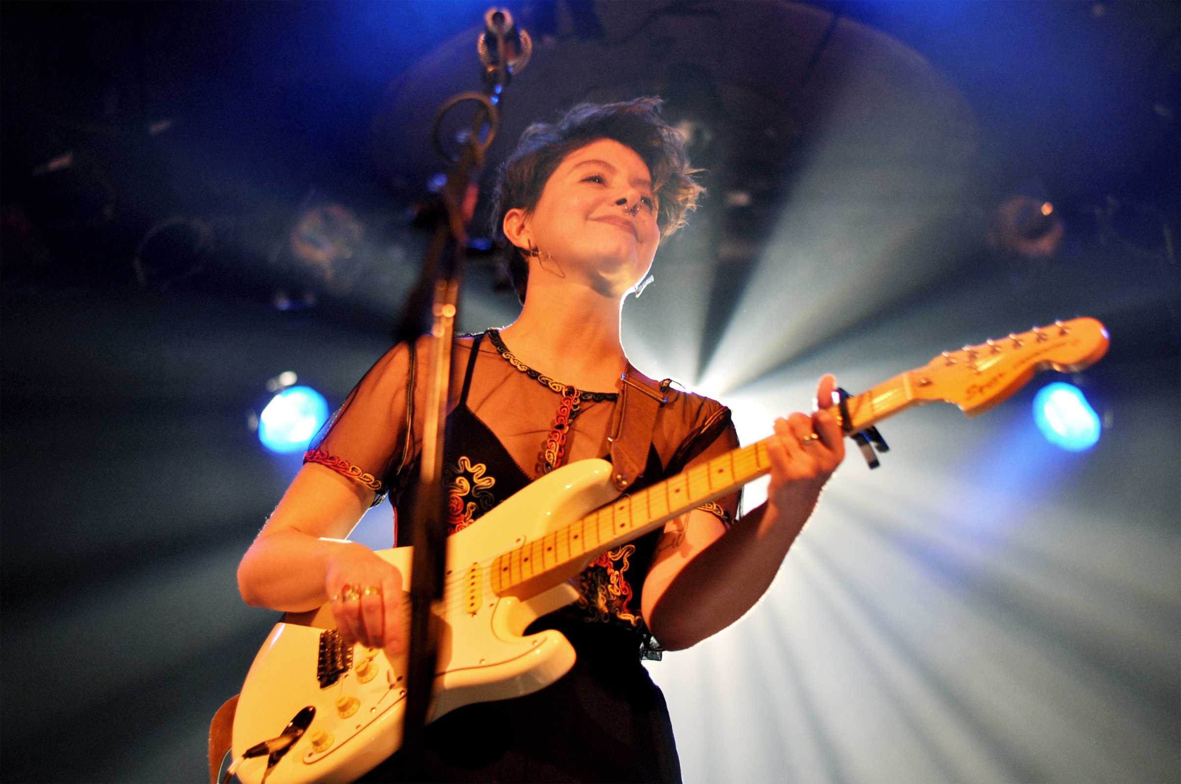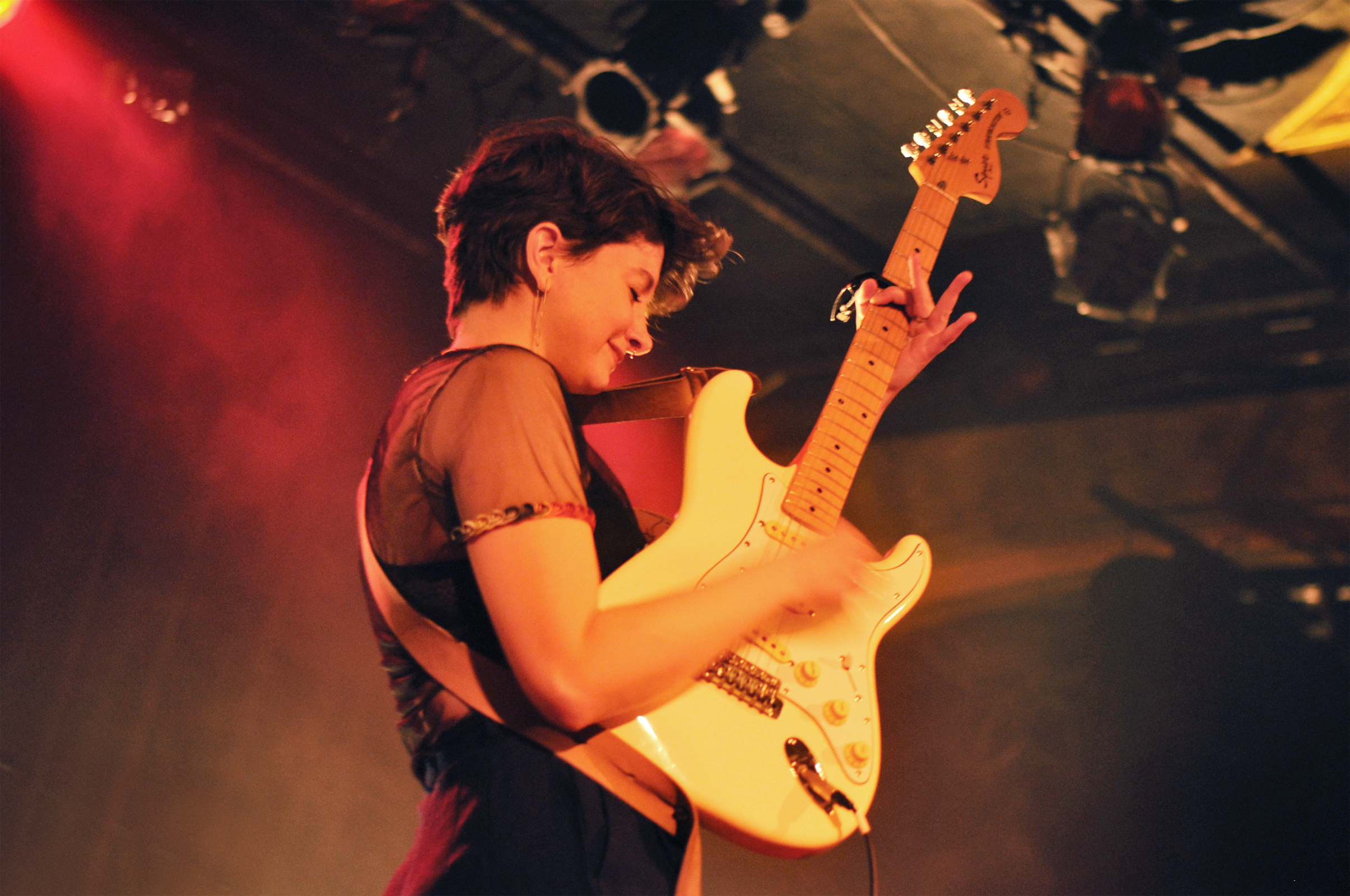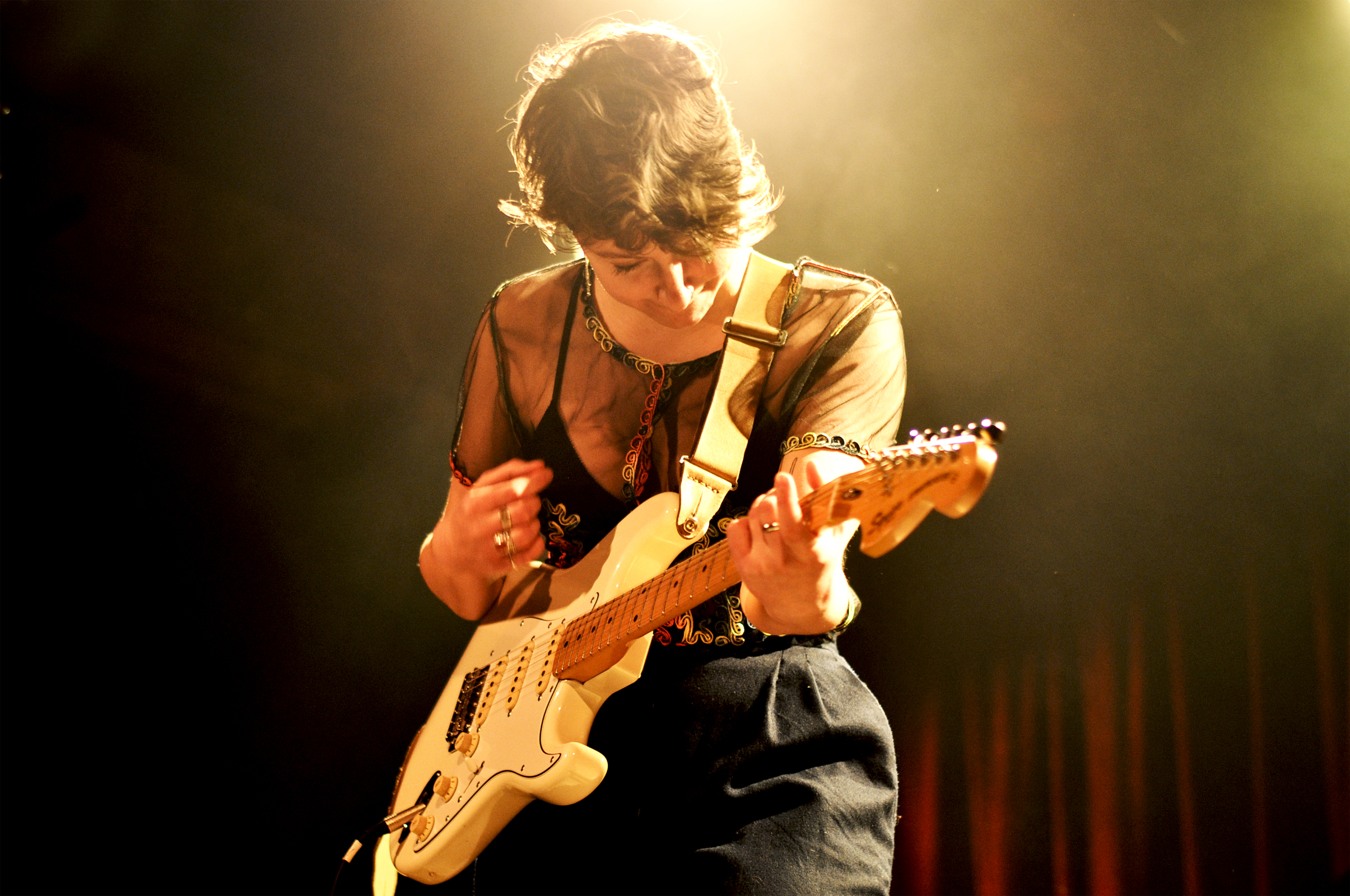 Laura Babin entame les festivités avec une intro instrumentale mi-planante, mi-mystérieuse pour nous mettre dans le bain de “La Couleur”, tirée de son dernier EP Water Buffalo. En jetant un coup d’œil au public, tous les regards sont braqués sur la scène, c’est bien pensé et bien joué, nous voilà tous absorbés. “Je suis venue tous les lundis, ça m’a donné vraiment hâte” nous dit-elle souriante avant de se lancer dans la superbe “Water Buffalo”, accompagnée de basse et batterie. Ma préf’. Et rien qu’à la regarder, on sent qu’elle prend beaucoup de plaisir à jouer pour nous, avec ses deux musiciens. L’expression “comme un poisson dans l’eau” s’applique entièrement à ce que l’on peut observer. Musicalement, tout est au point, on sent qu’il y a du travail et de la bouteille. On n’a aucun mal à se laisser porter et emporter par son univers rock mélancolique. C’est bien fait et très beau, que demander de plus ?