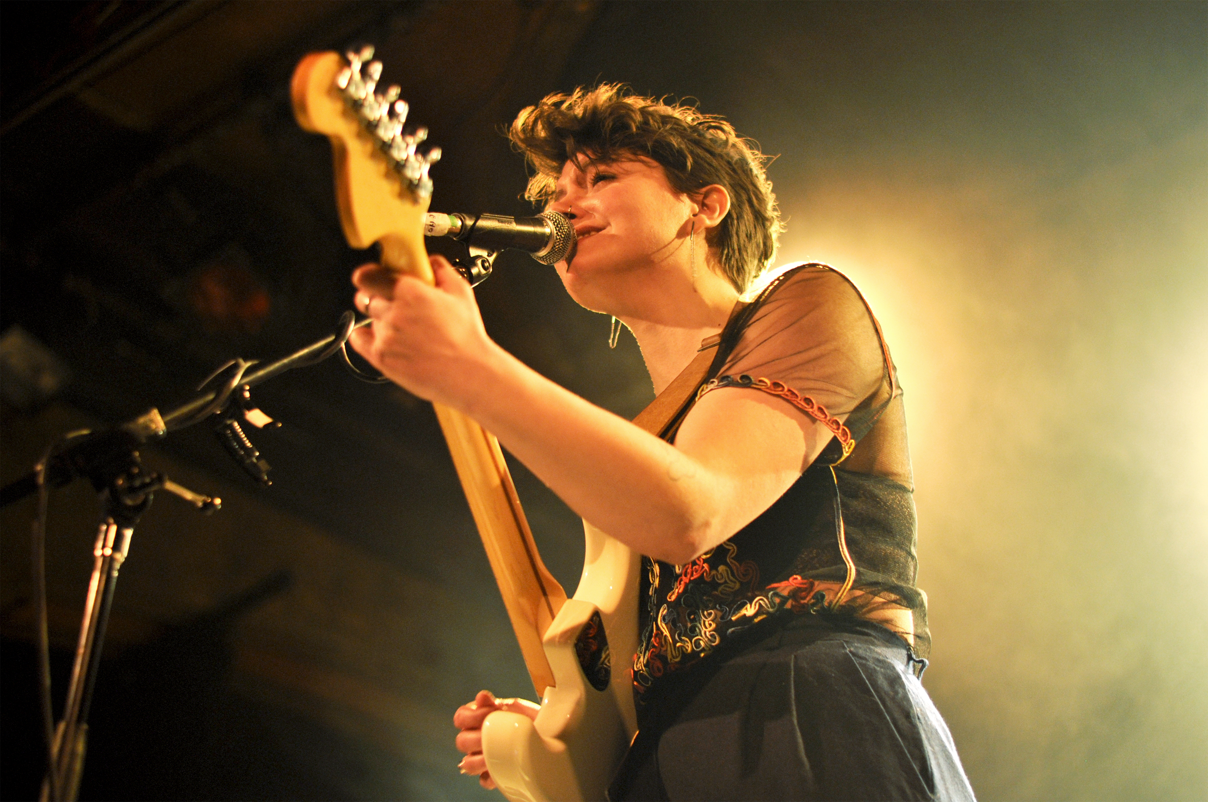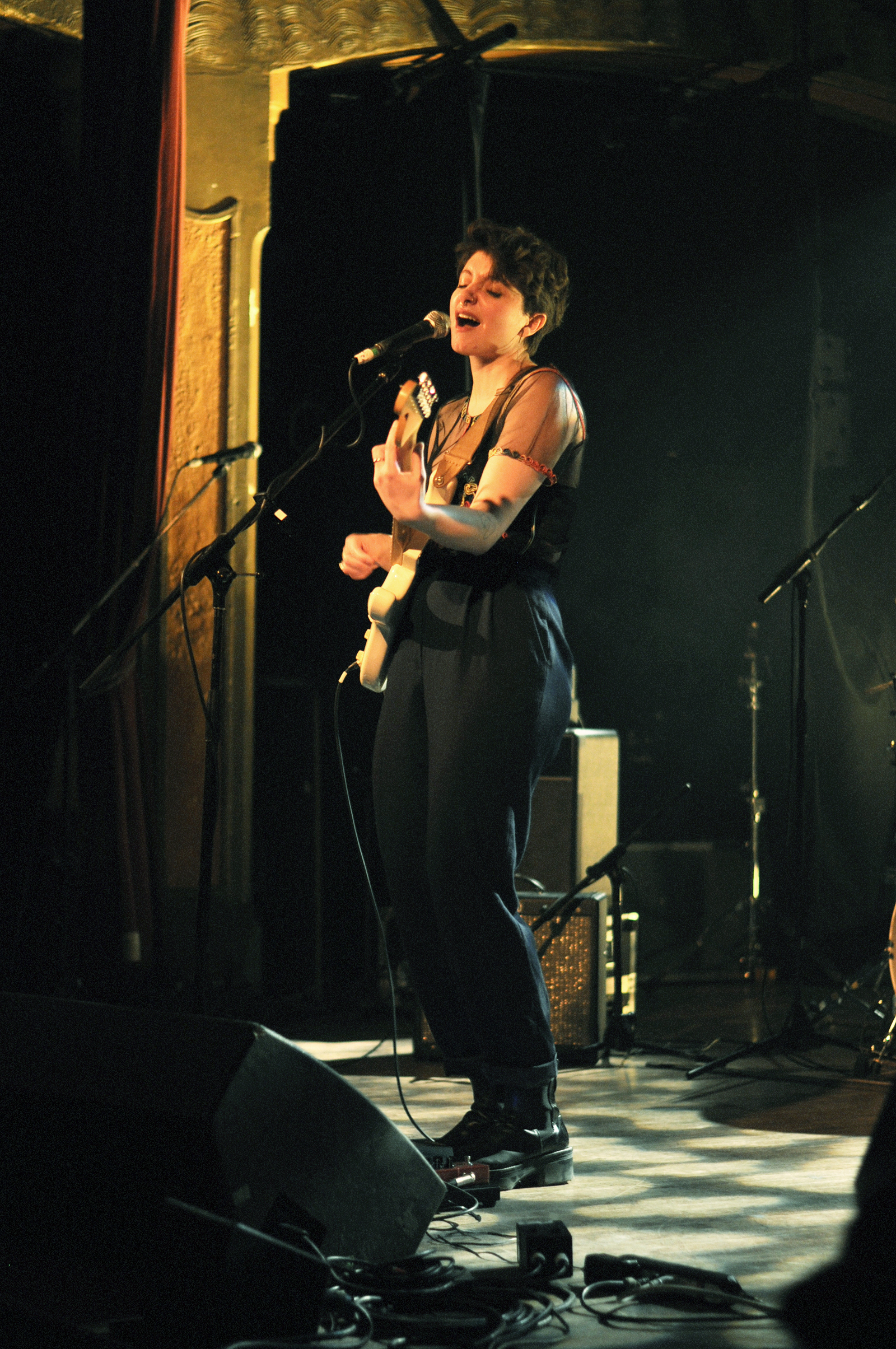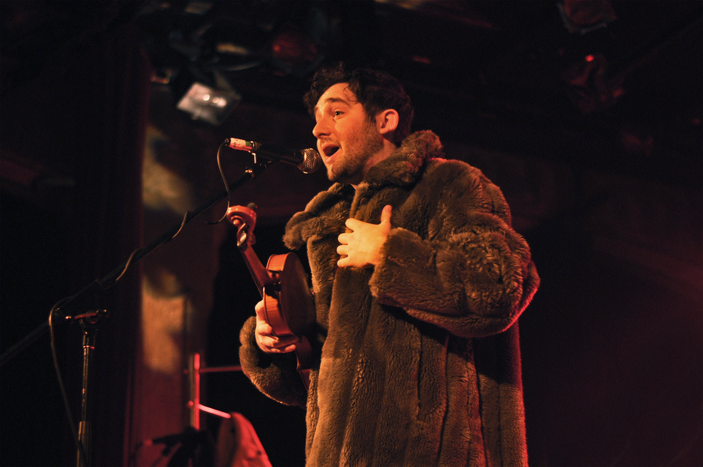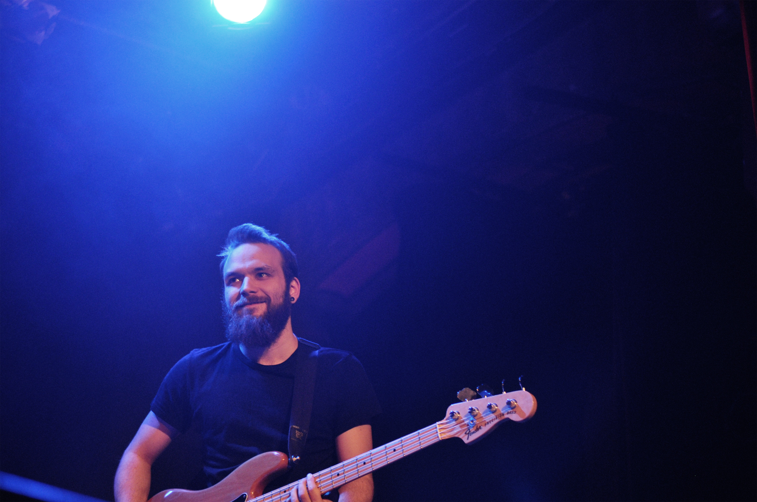 Pour finir, Anthony Roussel monte sur scène avec ses quatre musiciens. Je vous avoue que je n’ai pas grand chose à dire sur ce set. Comme si une mini tornade des années 1990 m’avait brutalement arrachée à 2018. J’ai l’impression de me retrouver dans la voiture de mes parents, en route pour la Normandie avec David Hallyday qui passe à la radio et la pluie qui tambourine contre le pare-brise. Je ne comprends pas bien pourquoi Anthony a la tâche de conclure la soirée (tu le vois le soufflet sortant du four qui se tasse sur lui-même d’un coup ?). Si les arrangements sont propres, ils sont trop propres et stéréotypés à mon goût. De la chanson française un peu désuète. Je n’arrive pas à me concentrer sur les mélodies ou les paroles, tout file. Ça ne me touche pas. Exception faite de la très jolie “Mimi” interprétée en guitare-voix, seul. Là, je m’arrête et écoute avec attention cette déclaration amoureuse. Mais la parenthèse est vite fermée. Dommage car il y avait des éléments intéressants.