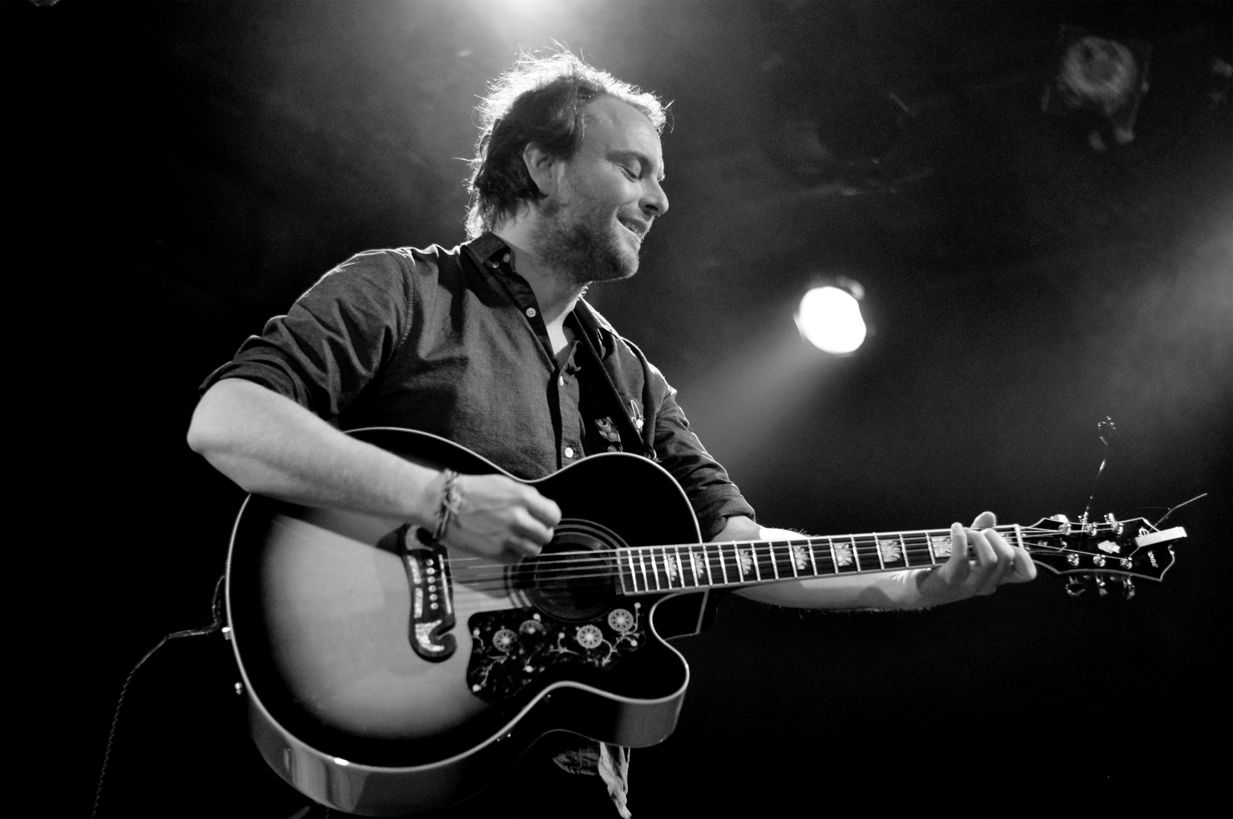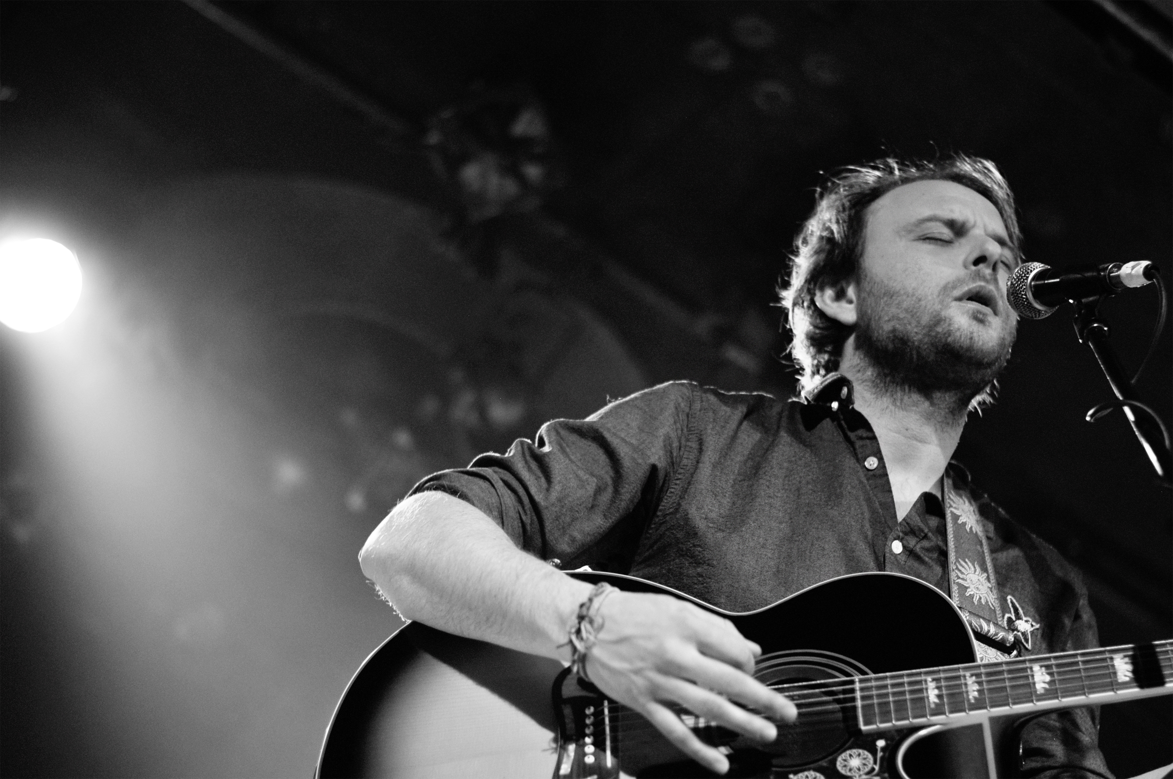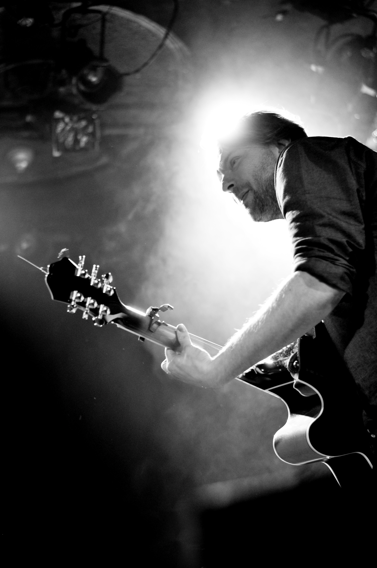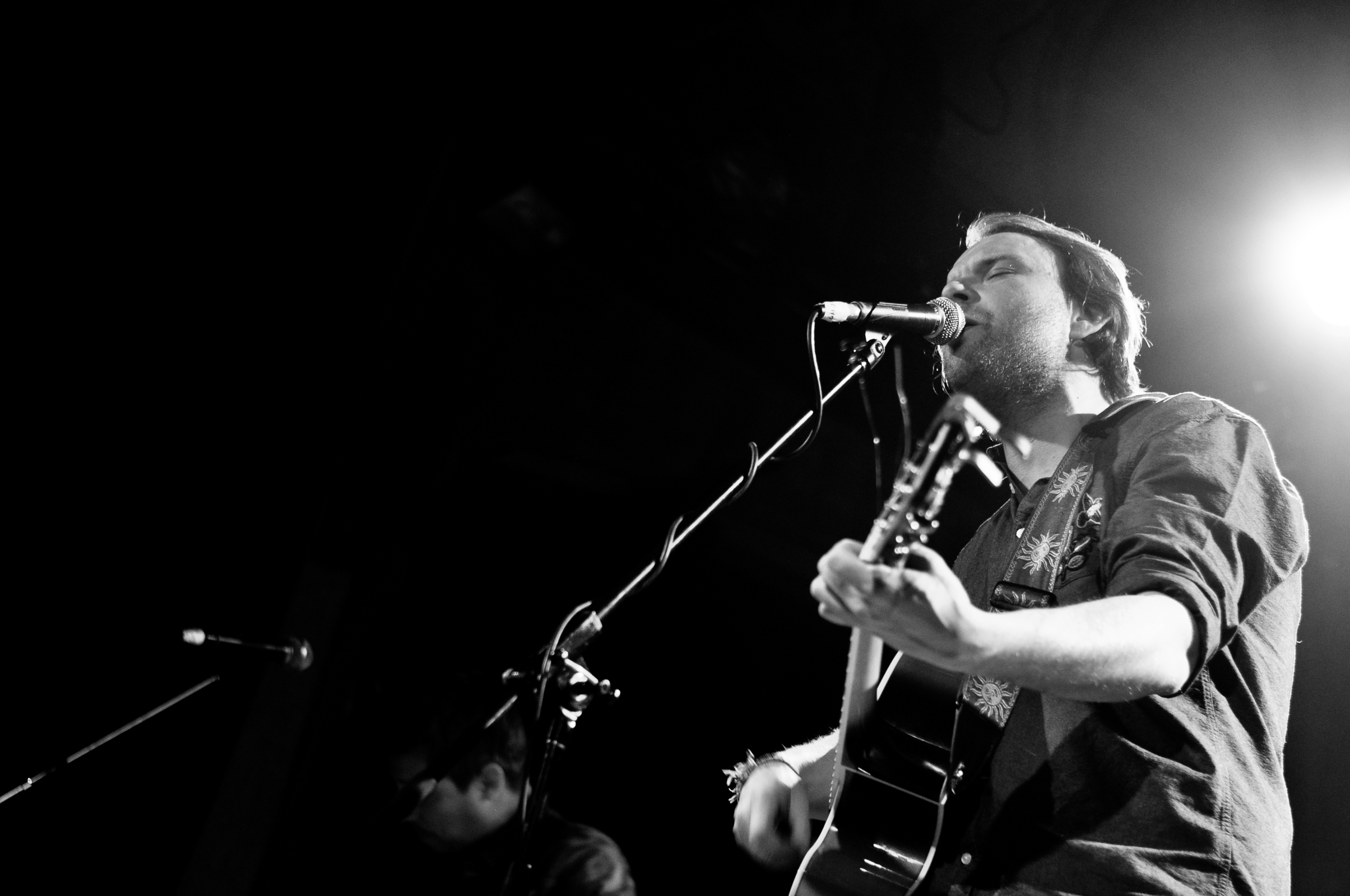 Pour finir, Anthony Roussel monte sur scène avec ses quatre musiciens. Je vous avoue que je n’ai pas grand chose à dire sur ce set. Comme si une mini tornade des années 1990 m’avait brutalement arrachée à 2018. J’ai l’impression de me retrouver dans la voiture de mes parents, en route pour la Normandie avec David Hallyday qui passe à la radio et la pluie qui tambourine contre le pare-brise. Je ne comprends pas bien pourquoi Anthony a la tâche de conclure la soirée (tu le vois le soufflet sortant du four qui se tasse sur lui-même d’un coup ?). Si les arrangements sont propres, ils sont trop propres et stéréotypés à mon goût. De la chanson française un peu désuète. Je n’arrive pas à me concentrer sur les mélodies ou les paroles, tout file. Ça ne me touche pas. Exception faite de la très jolie “Mimi” interprétée en guitare-voix, seul. Là, je m’arrête et écoute avec attention cette déclaration amoureuse. Mais la parenthèse est vite fermée. Dommage car il y avait des éléments intéressants.