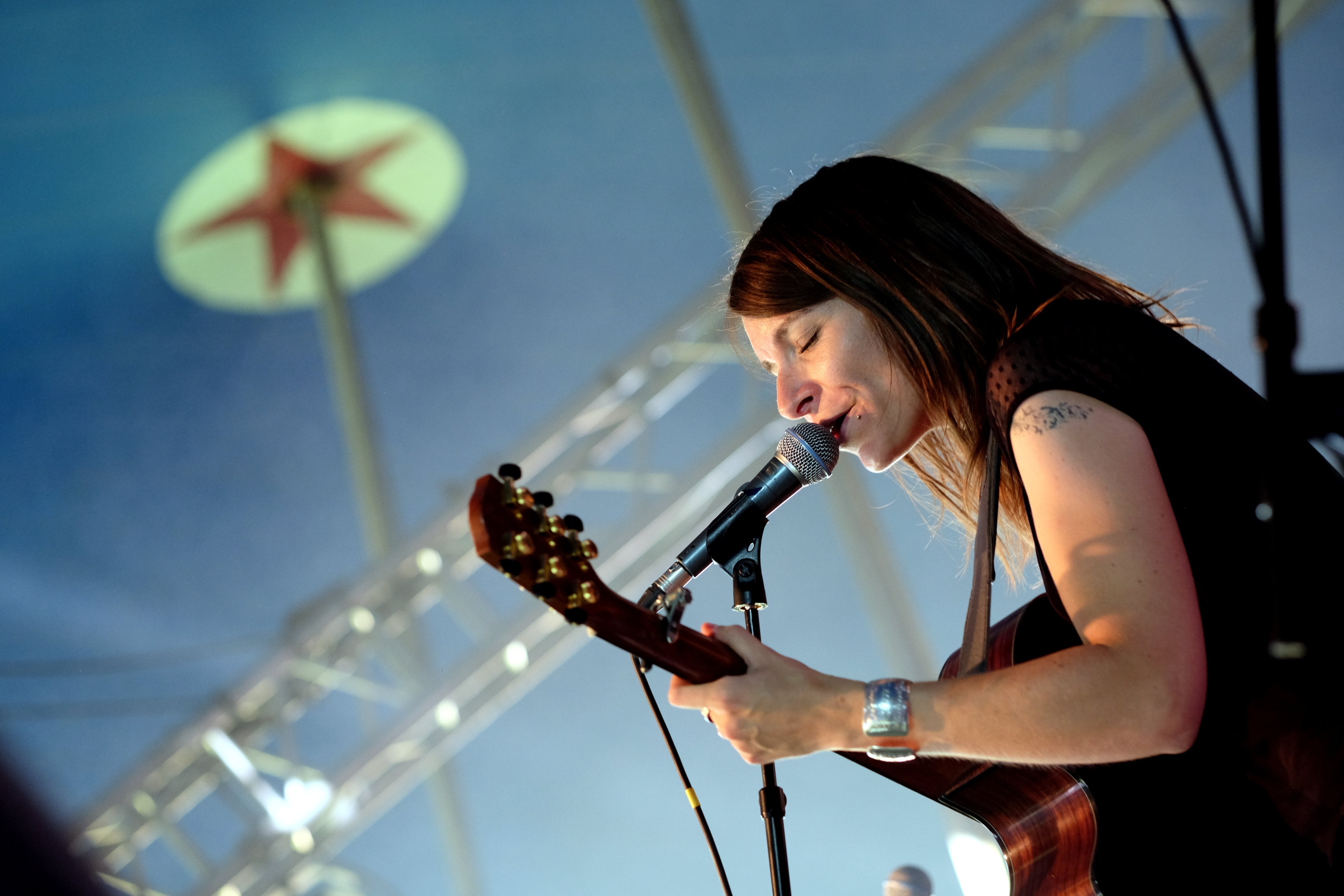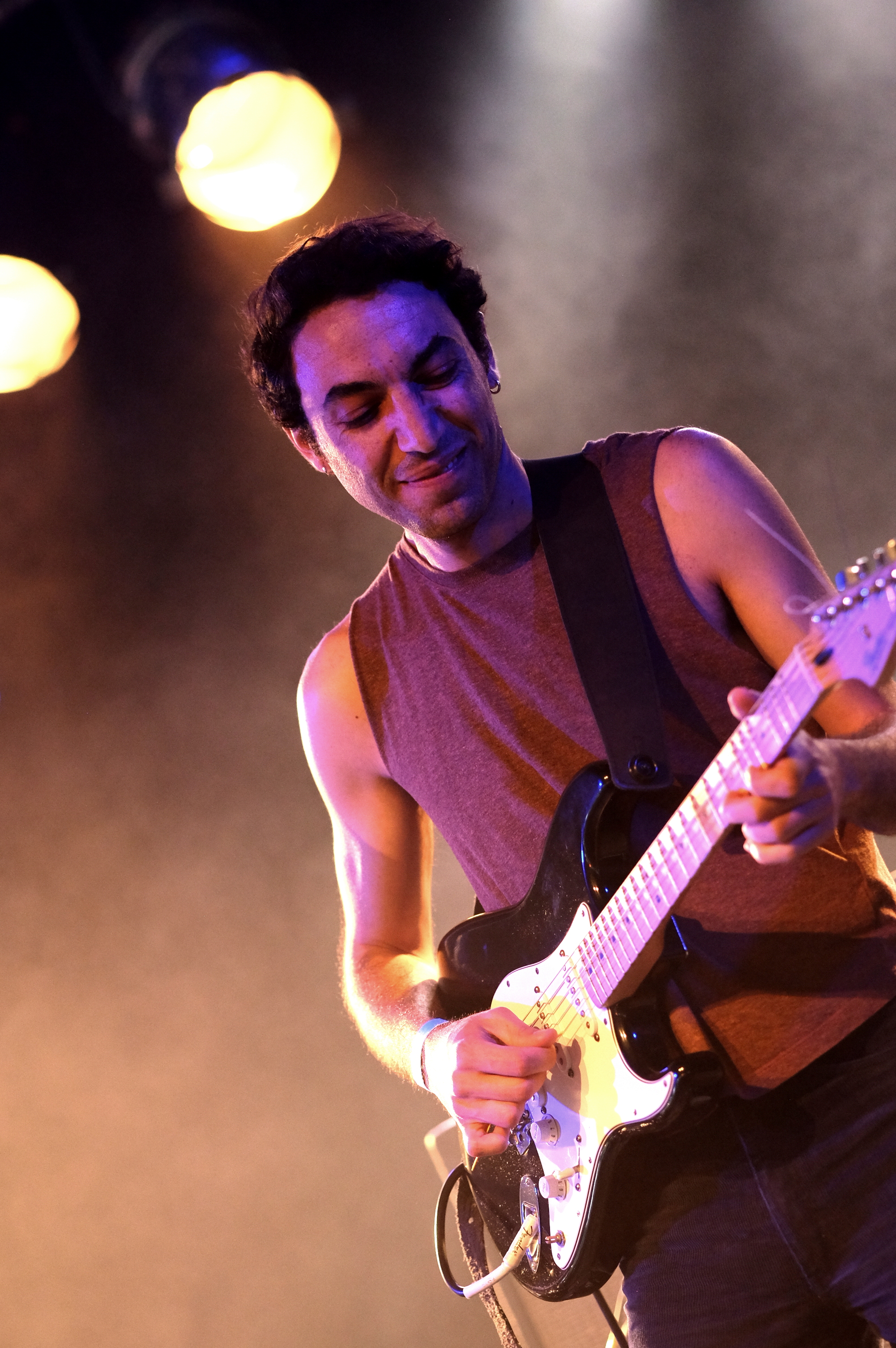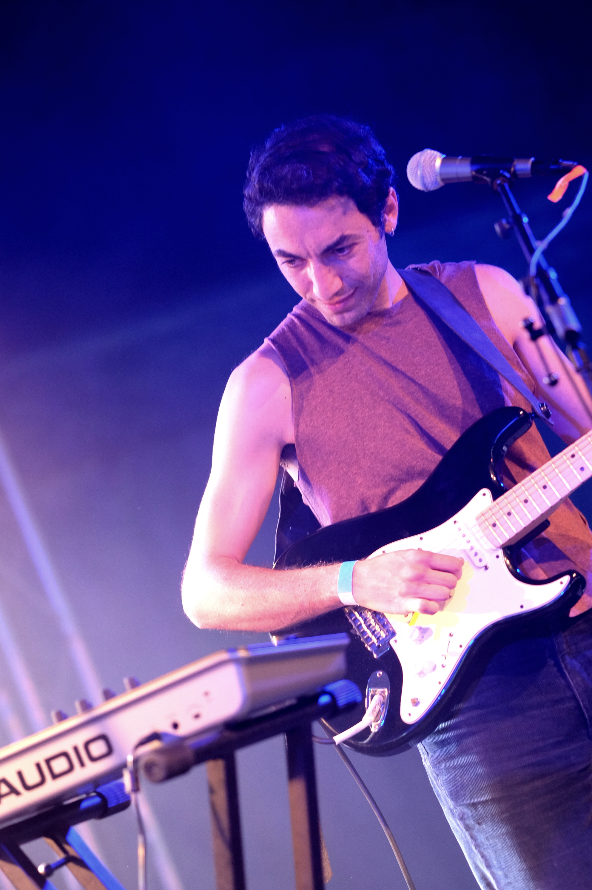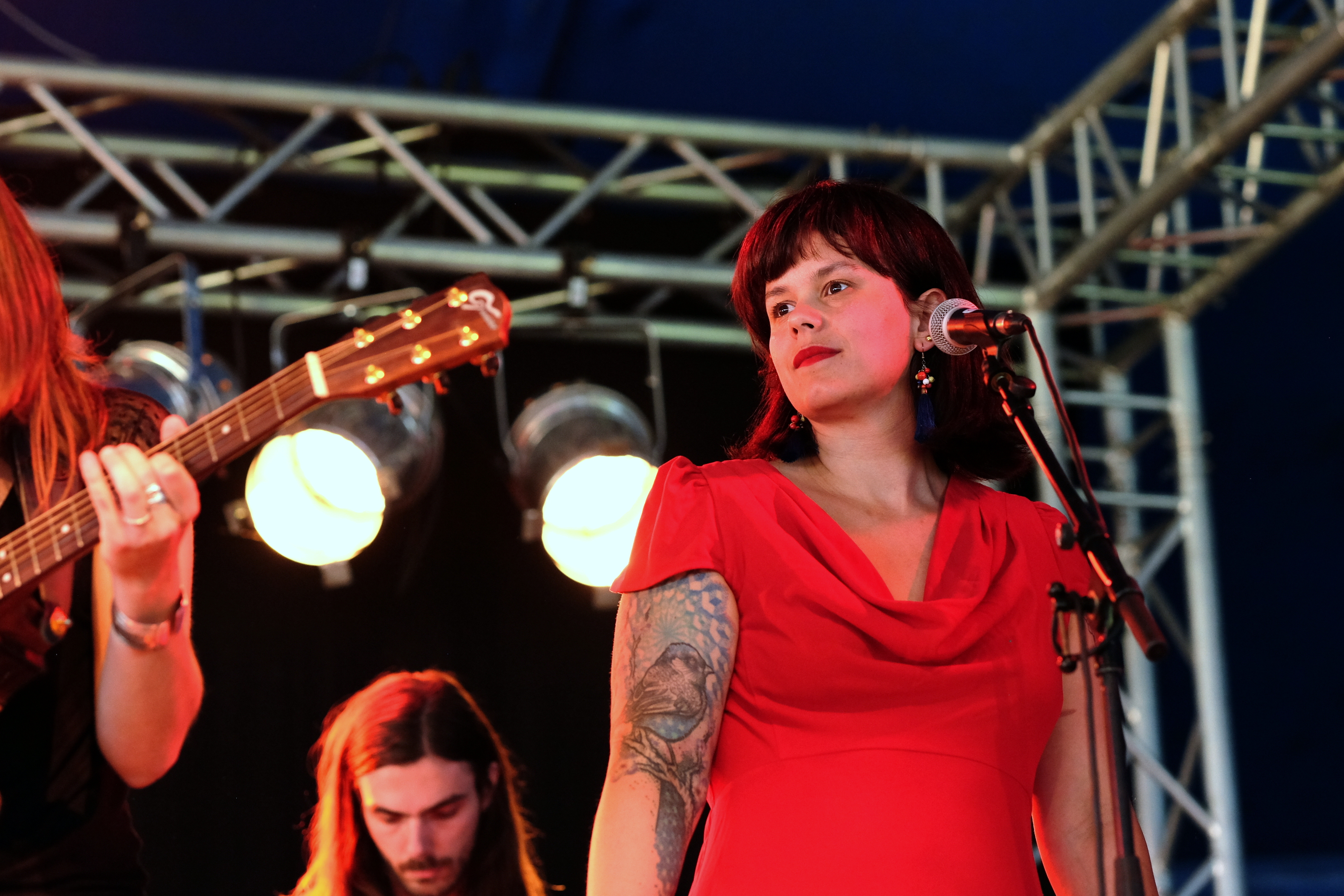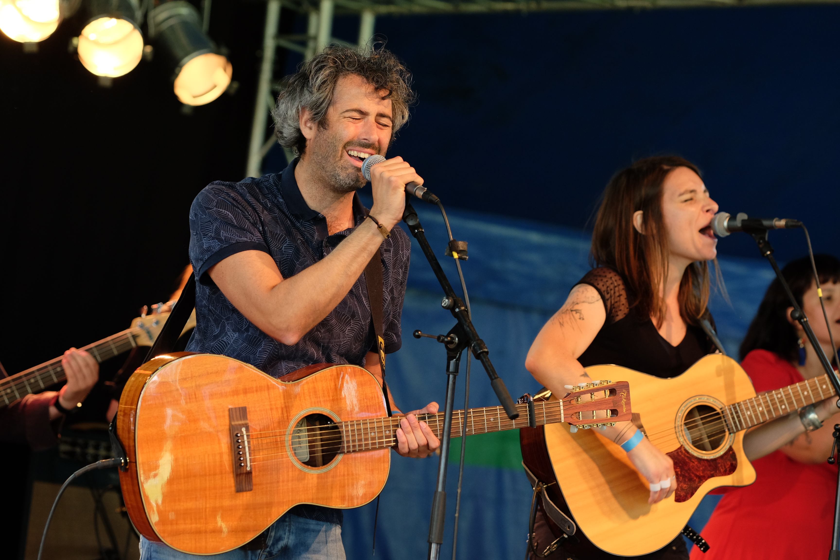 Après le local, place à un groupe originaire du plateau du Golan avec TootArd. D’habitude à 4, ils sont ce soir en duo batterie/guitare. Ils nous expliquent être sans nationalité et donc sans passeport, avec seulement un “laissez passer” pour guise de document de voyage. Et c’est ce “laissez passer” qui est aussi le nom de leur second album. Musicalement, les styles se croisent. Entre blues touareg, reggae et musique arabe, le groupe parvient à faire régner la bonne humeur sous le petit chapiteau et à faire onduler l’ensemble du public.