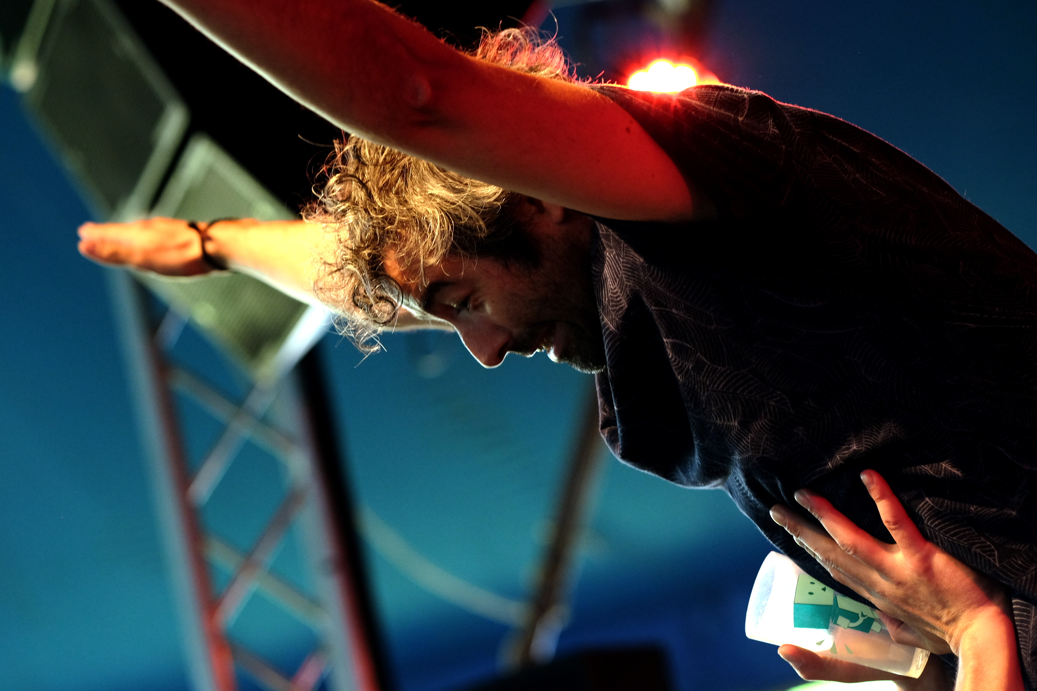 On prend une petite pause pendant Cannibale, pour revenir d’attaque pour Molécule. De Romain Delahaye, je ne sais qu’une chose : il a enregistré son dernier album – 22.7° au Groenland pendant l’hiver polaire. Je suis donc très curieuse de savoir ce que ce set peut donner. Et je prends une claque très très vite. Le mec débarque avec l’air de celui que rien ne touche. Visage fermé, casquette vissée sur la tête, il ne décroche aucun sourire et interagit finalement très peu avec son public. Molécule, c’est le genre d’artiste qui laisse sa musique faire tout le travail. Et sa musique, tu la prends en pleine face, dès les premiers instants. Pas de montée en puissance ici. C’est direct. De la techno pure, beaucoup moins planante que ce que j’imaginais en écoutant l’album. Mais tellement, tellement efficace pour faire danser les foules.