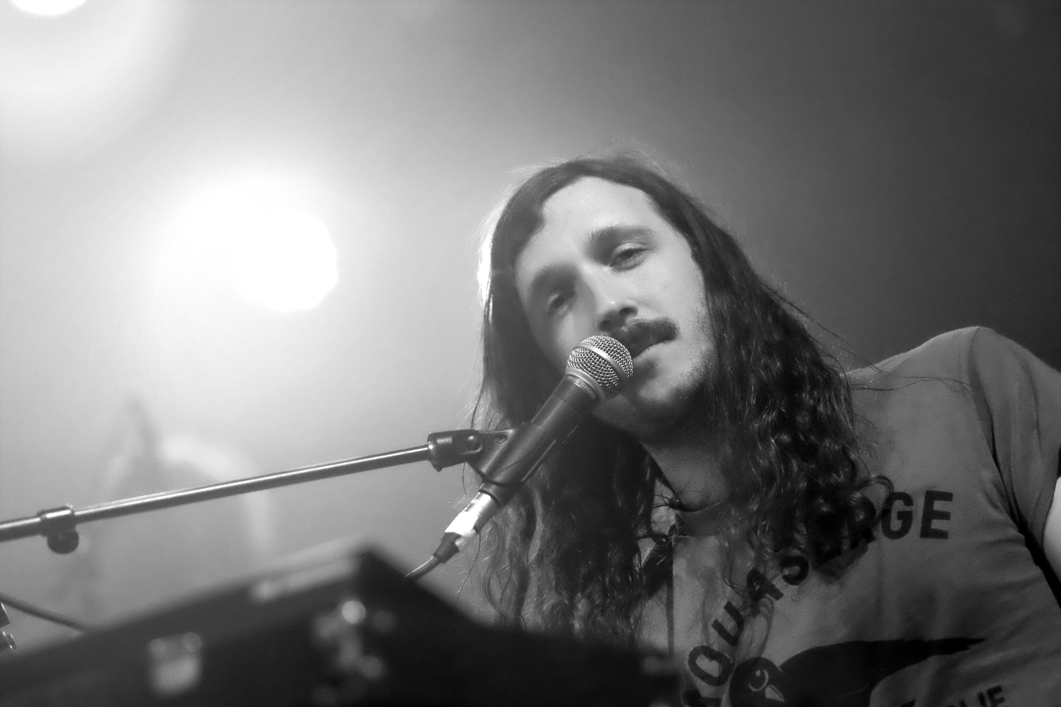 On enchaîne ensuite avec Forever Pavot. Le groupe d’Émile Sorin installe en quelques minutes sur la grosse scène l’ambiance de Pantoufle, son dernier album. Tout à droite à son clavier et entouré de tous ses musiciens, les accords de cordes et de flûtes tissent la bande son d’un film des années 70. Ce genre de film un peu polar, un peu fantastique et un peu érotique, aussi. Les lumières rougeâtres et le déferlement de fumée finissent de mettre la foule dans l’ambiance. Je doutais de pouvoir retrouver la richesse des arrangements du disque sur scène. Forever Pavot m’a prouvé le contraire.