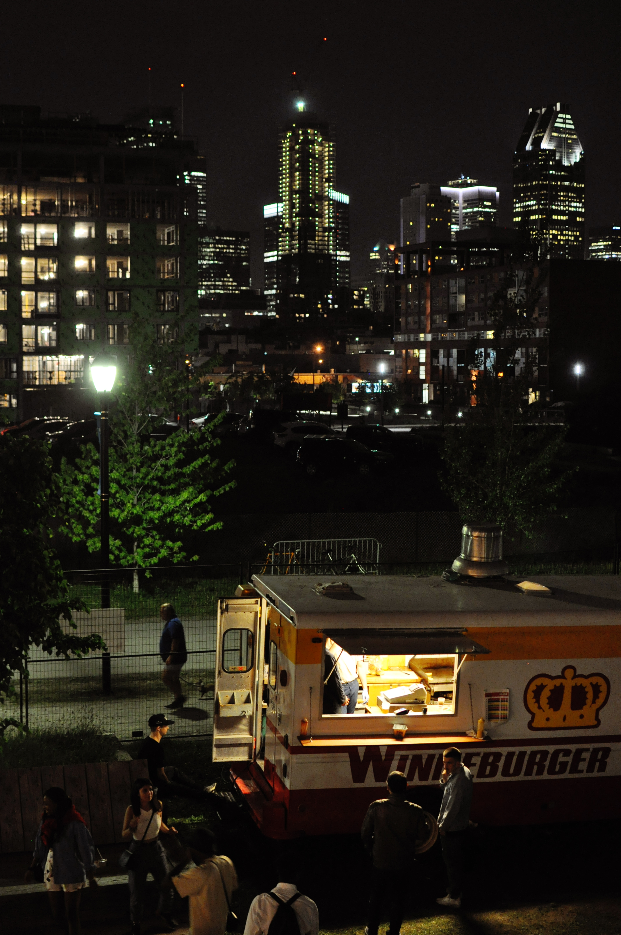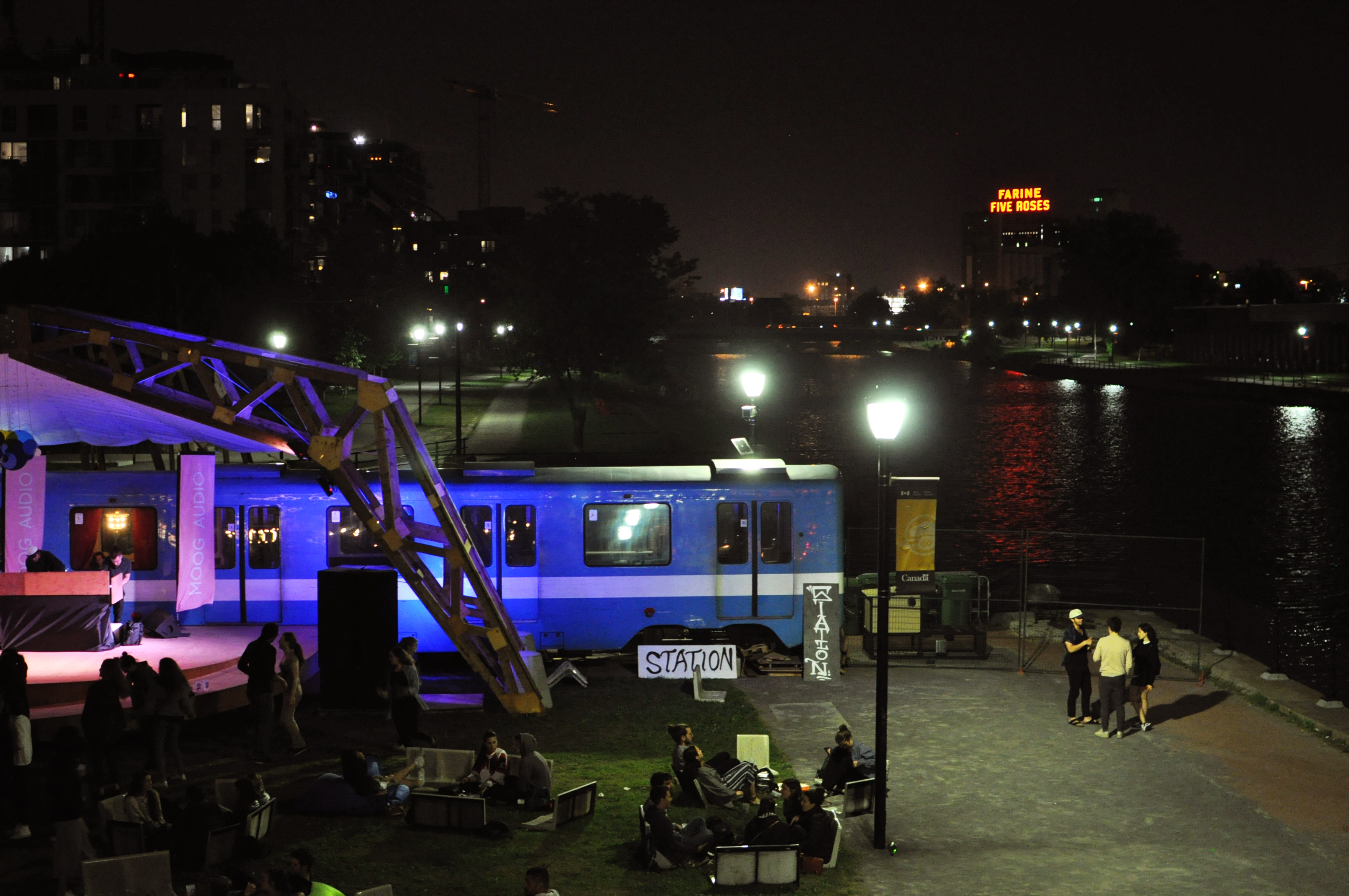“Pour assurer son attractivité, MR-63 se dote d’un bâtiment hybride qui offrira une seconde vie aux anciens wagons du métro de Montréal et qui relèvera les normes de développement durable” détalle MR-63 à propos de la Station F-MR. Hamacs, chaises longues en palettes, sièges de métro posés à même le sol, scène, food truck, guirlandes d’ampoules, babyfoot, stand de bière et cocktails de kombucha… la Station F-MR est un petit lieu plutôt paradisiaque pour chiller avec ses potes, avec vue sur le fameux Farine Five Roses de Montréal d’un côté et les buildings du centre-ville de l’autre bord.