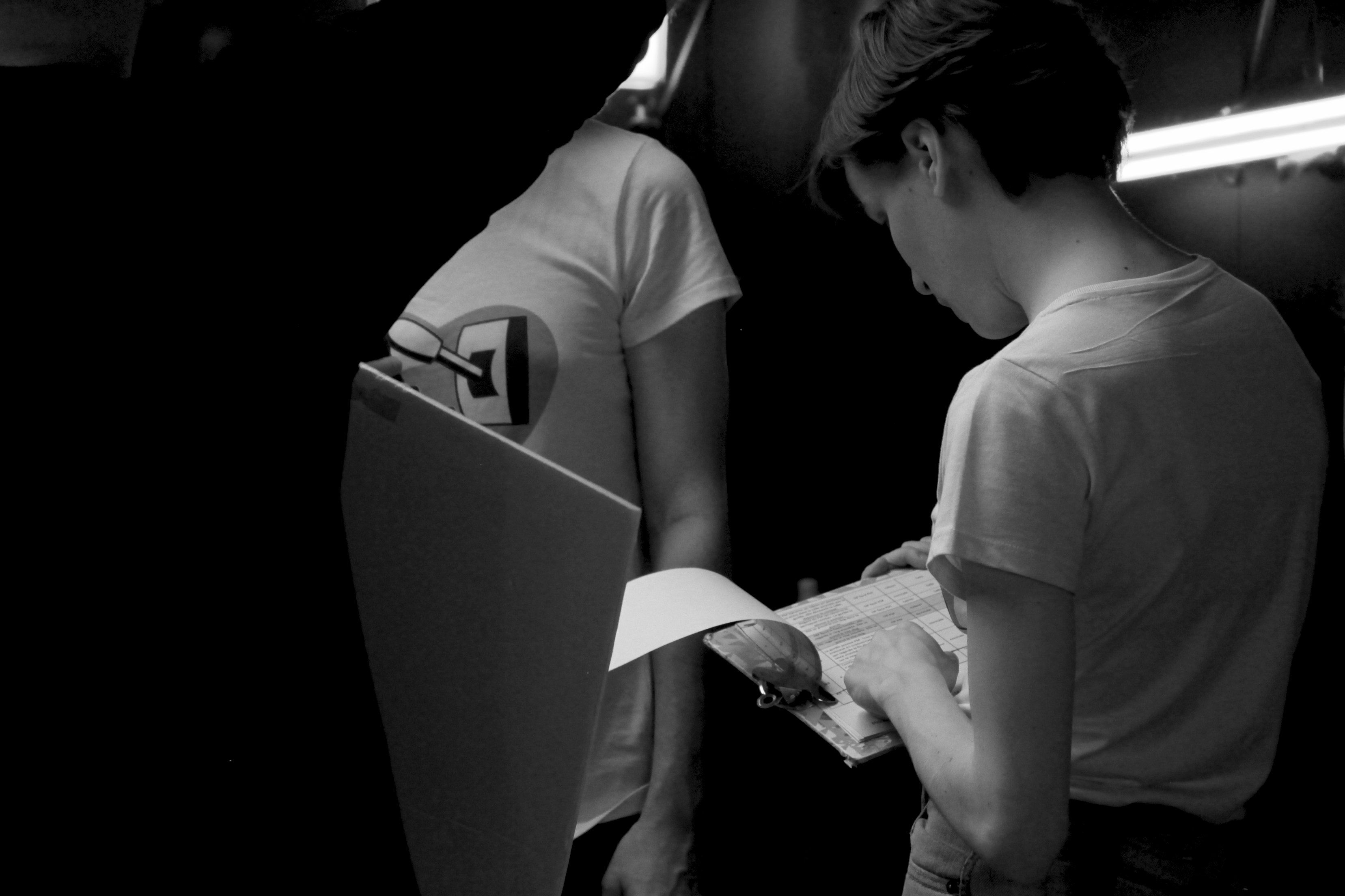 D’une prise à l’autre et d’une scène à l’autre, l’équipe technique est là pour veiller à ce que l’image reste harmonieuse et logique lors du montage. Il faut veiller à ce que la lumière éclaire bien toujours de même et que la fumée donne toujours bien la même ambiance. C’est le rôle des éclairagistes. L’assistant caméra prend les réglages et fait le point avant chaque “moteur, ça tourne, action !” grâce à une petite molette manuelle.