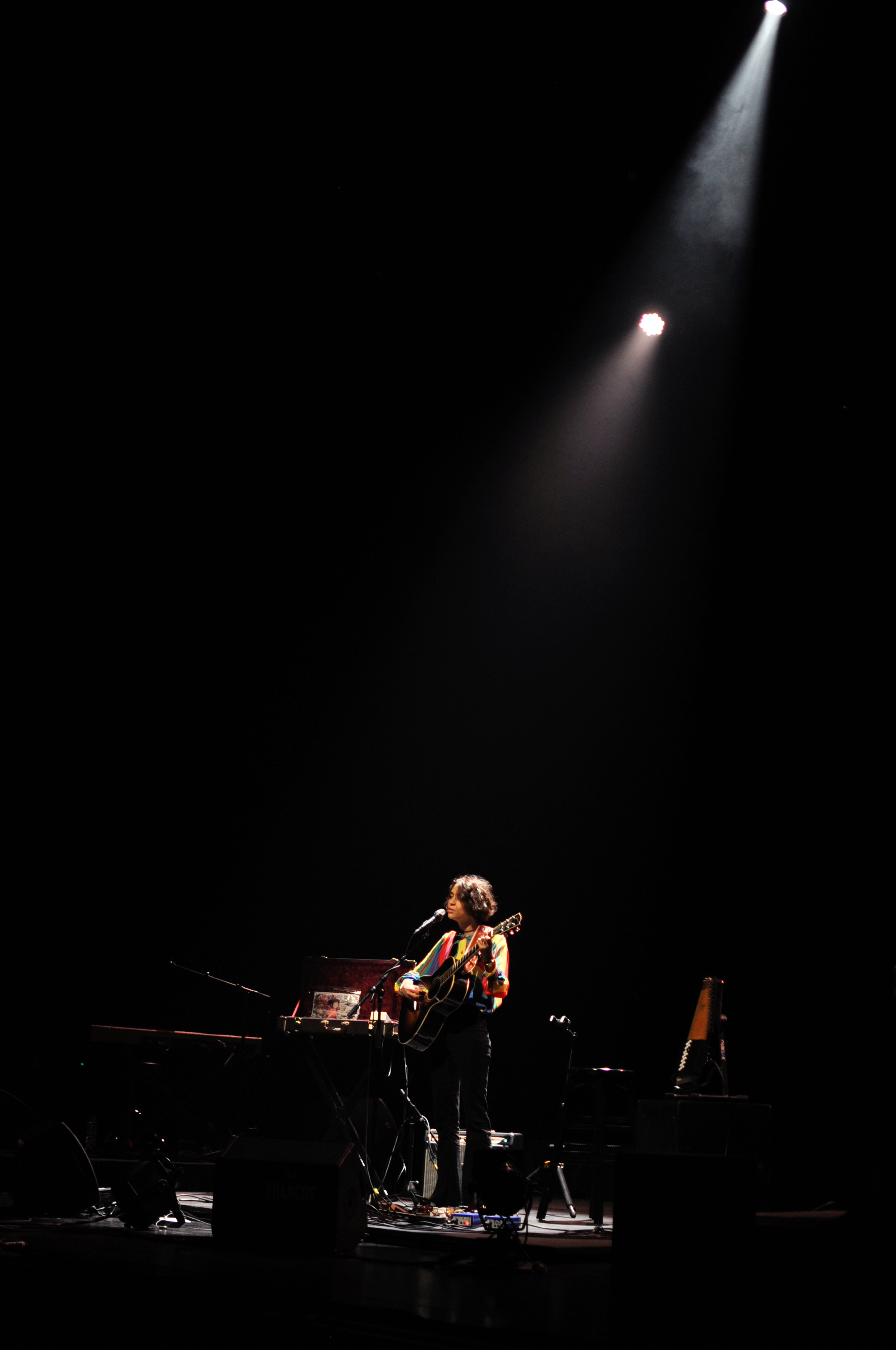 Pomme ouvrait la soirée pour Camille dans le très beau, et très impressionnant Théâtre Maisonneuve. Seule, au milieu d’une grande scène avec sa guitare, son auto-harpe et sa malle, la Française nous envoûte. Comme elle le fait toujours. Son timbre de voix est magnifié dans cet immense espace ou le silence est roi et le public très attentif. En plus des “Adieu mon homme”, “On brûlera” et “Ceux qui rêvent”, Pomme nous joue une nouvelle belle chanson, intitulée “Les Séquoias”. Elle sera de retour à Montréal le 22 juillet au Jardin botanique.