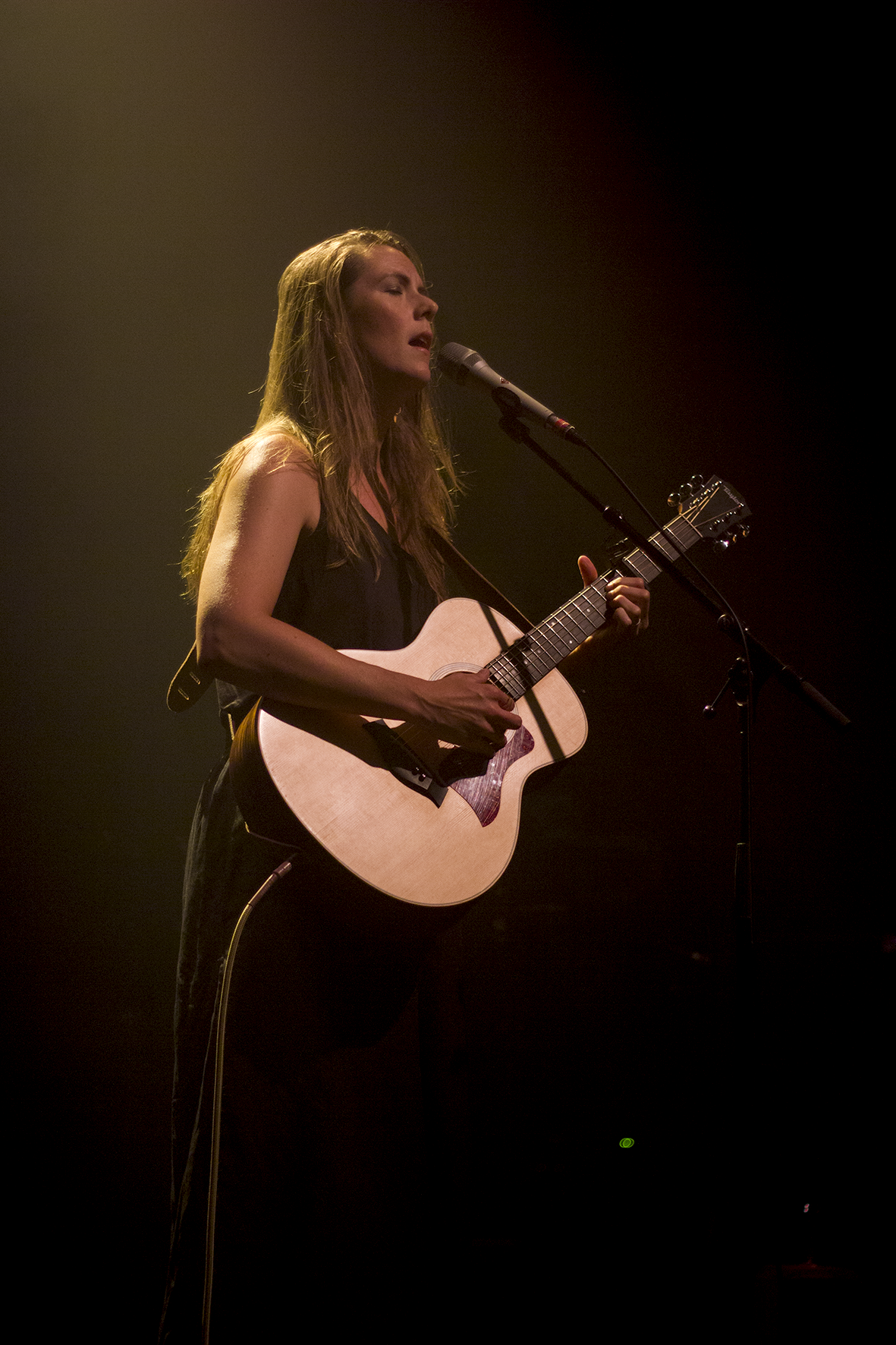 C’est Beyries, tout droit arrivée de Montréal, qui ouvre la soirée. Seule à la guitare ou au piano, elle interprète avec émotion les titres de son ernier album Landing. C’est surtout en anglais qu’elle chante, mais s’autorise une petite incartade à la règle avec “J’aurai 100 ans”, enregistré sur l’album avec le grand Louis-Jean Cormier.