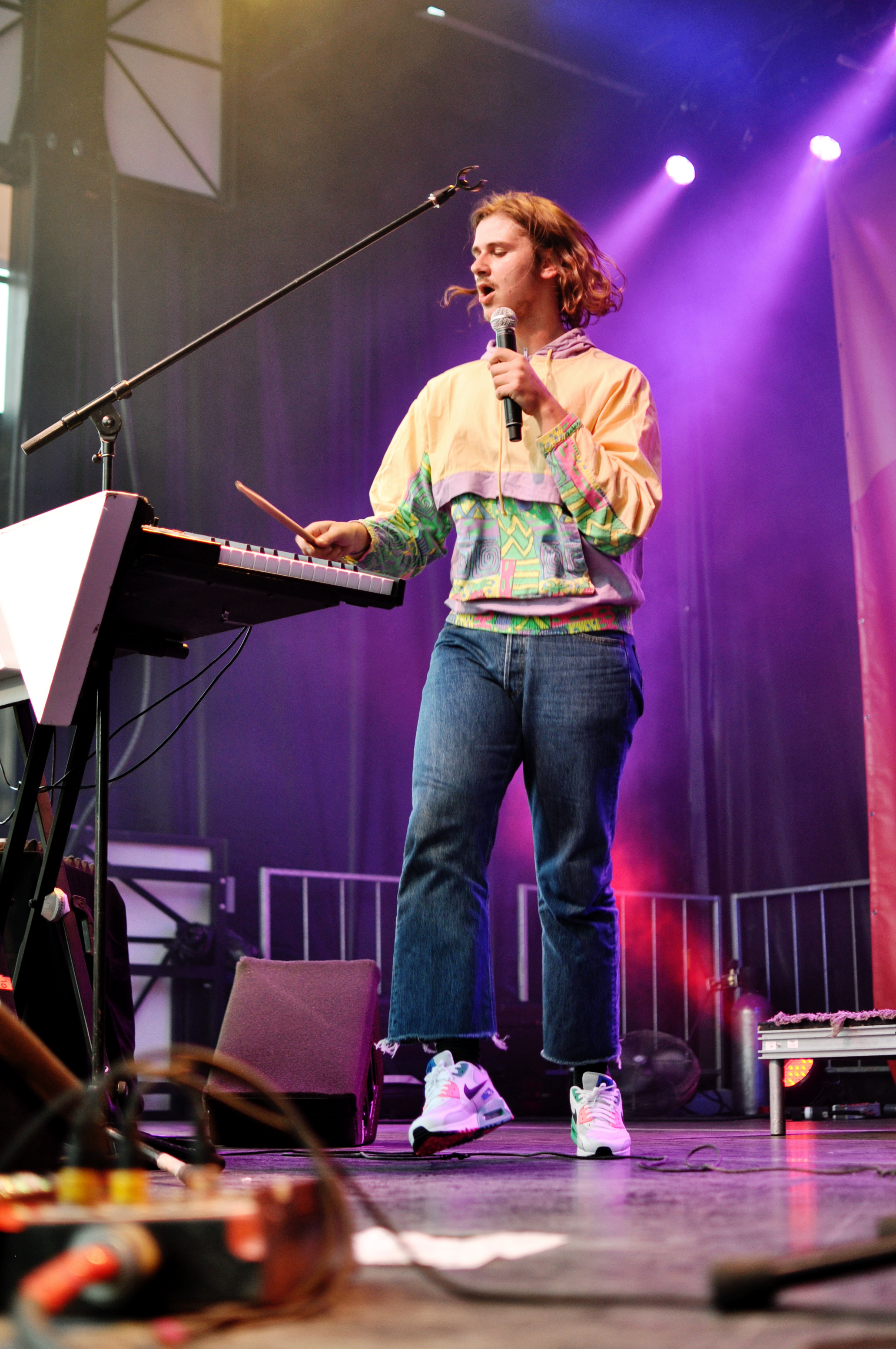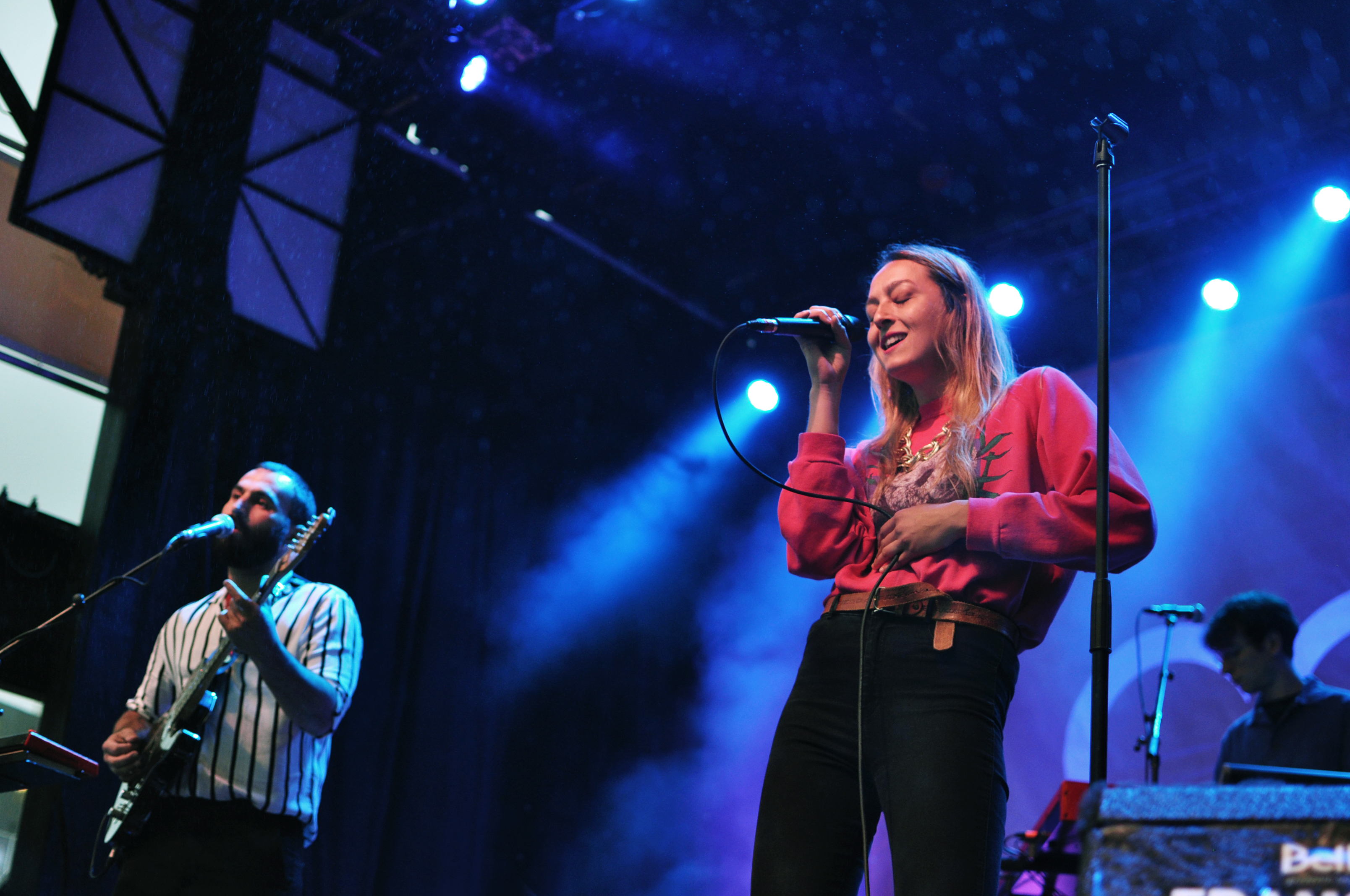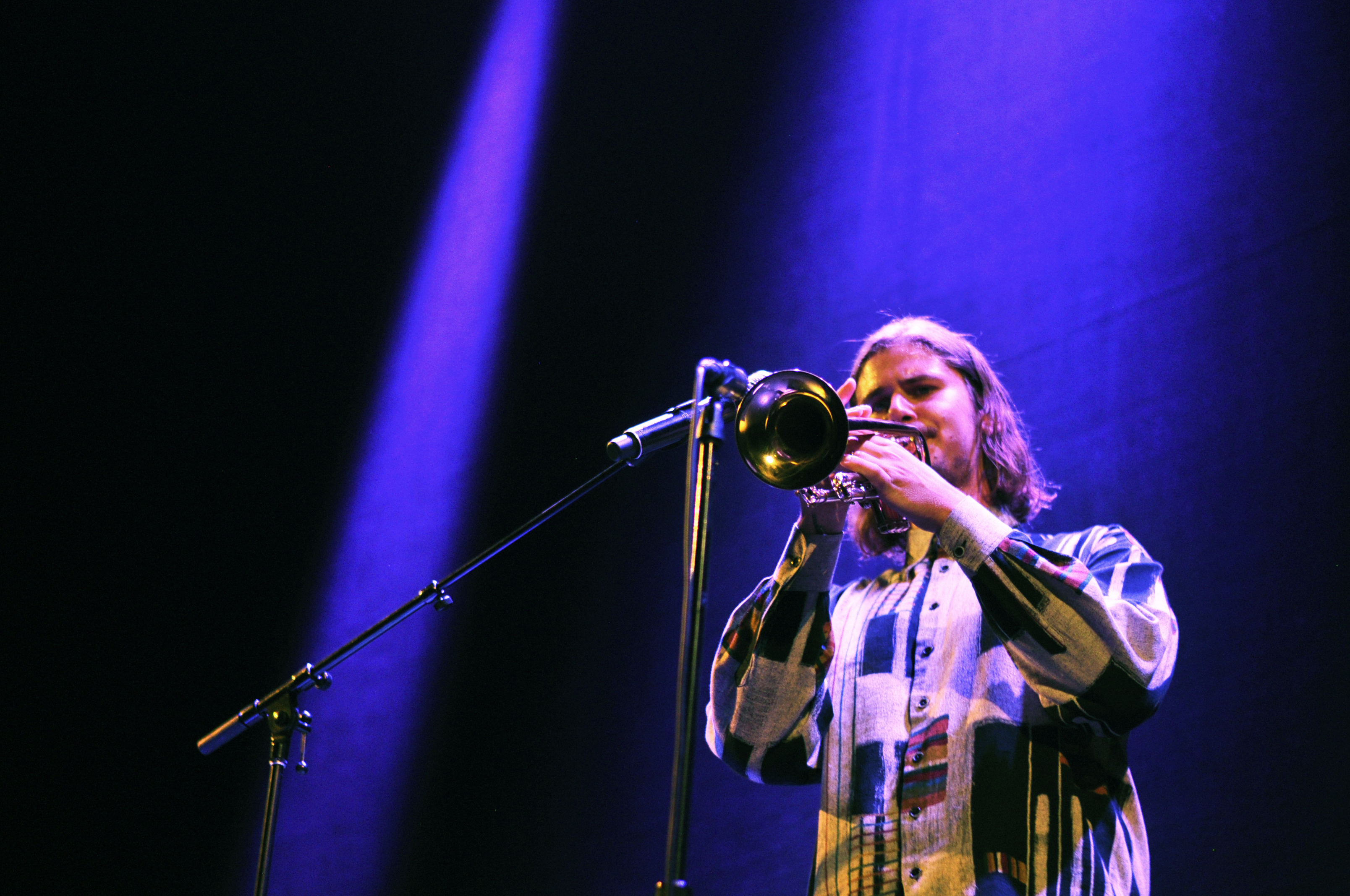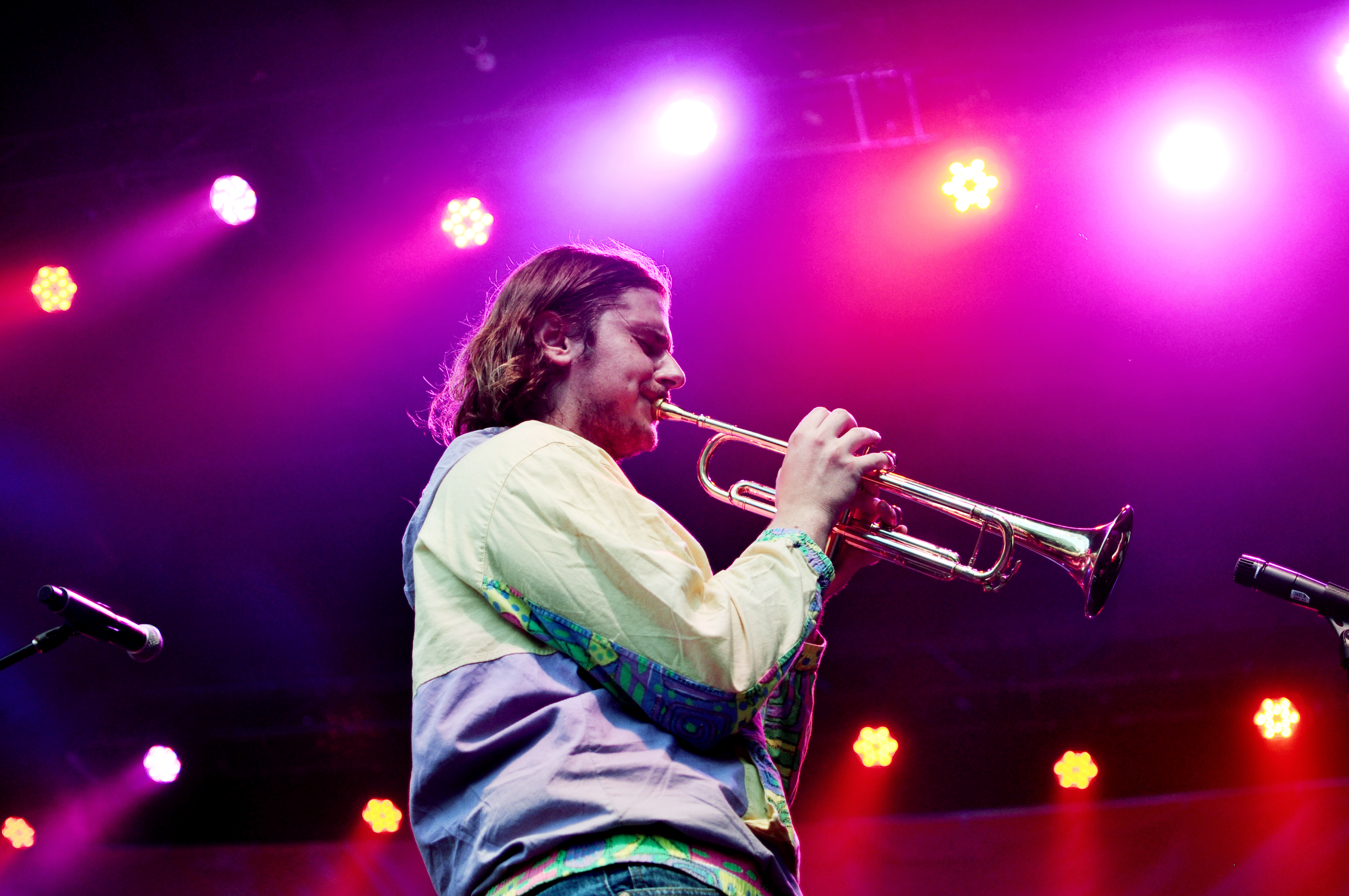 On finit la journée avec Voyou, seul sur son tandem sur scène. Une console customisée, une guitare, et une trompette. C’est suffisant pour cet homme-orchestre bondissant qui fait son premier concert à Montréal, une ville qu’il connaît bien pour y être venu en quête d’inspiration l’année passée. Entre temps son EP est sorti et il nous confiait le lendemain que son premier album ne saurait tarder. Le Nantais (ex Rhum for Pauline et Pégaze) est désormais le capitaine de son bateau de pop festive qui fait chalouper, entre “Les soirées”, “Papillon” et bien sûr “Seul sur ton tandem” cette fausse chanson joyeuse qui raconte en fait une séparation. On adore les solos de trompette qui apportent une aura particulièrement réjouissante à ses compositions.
