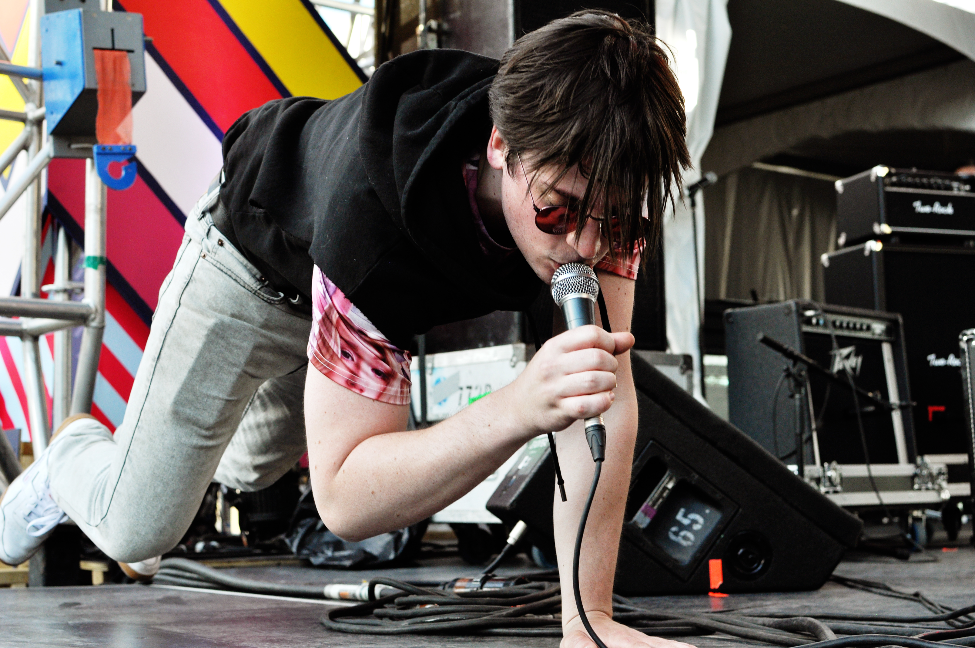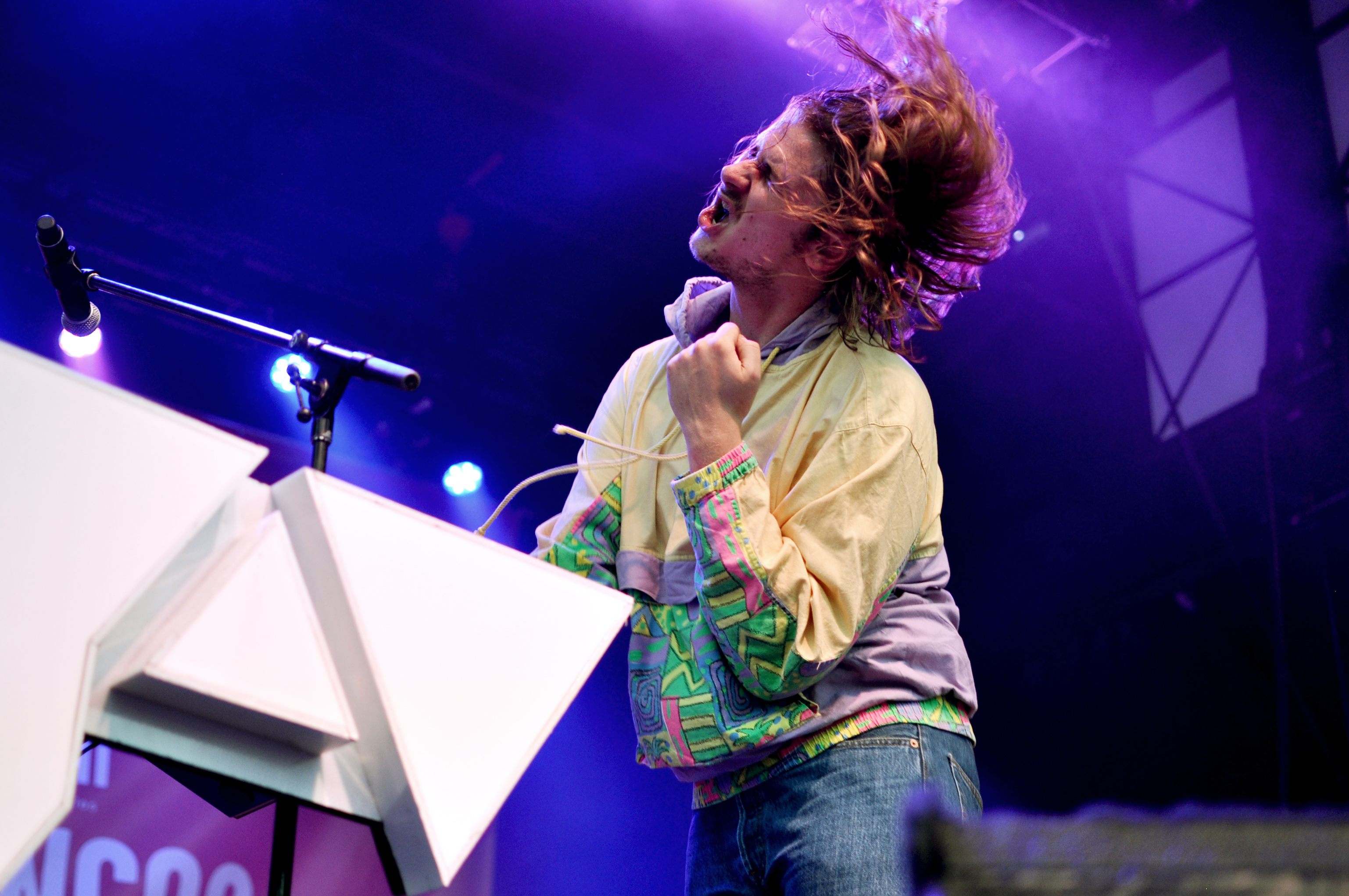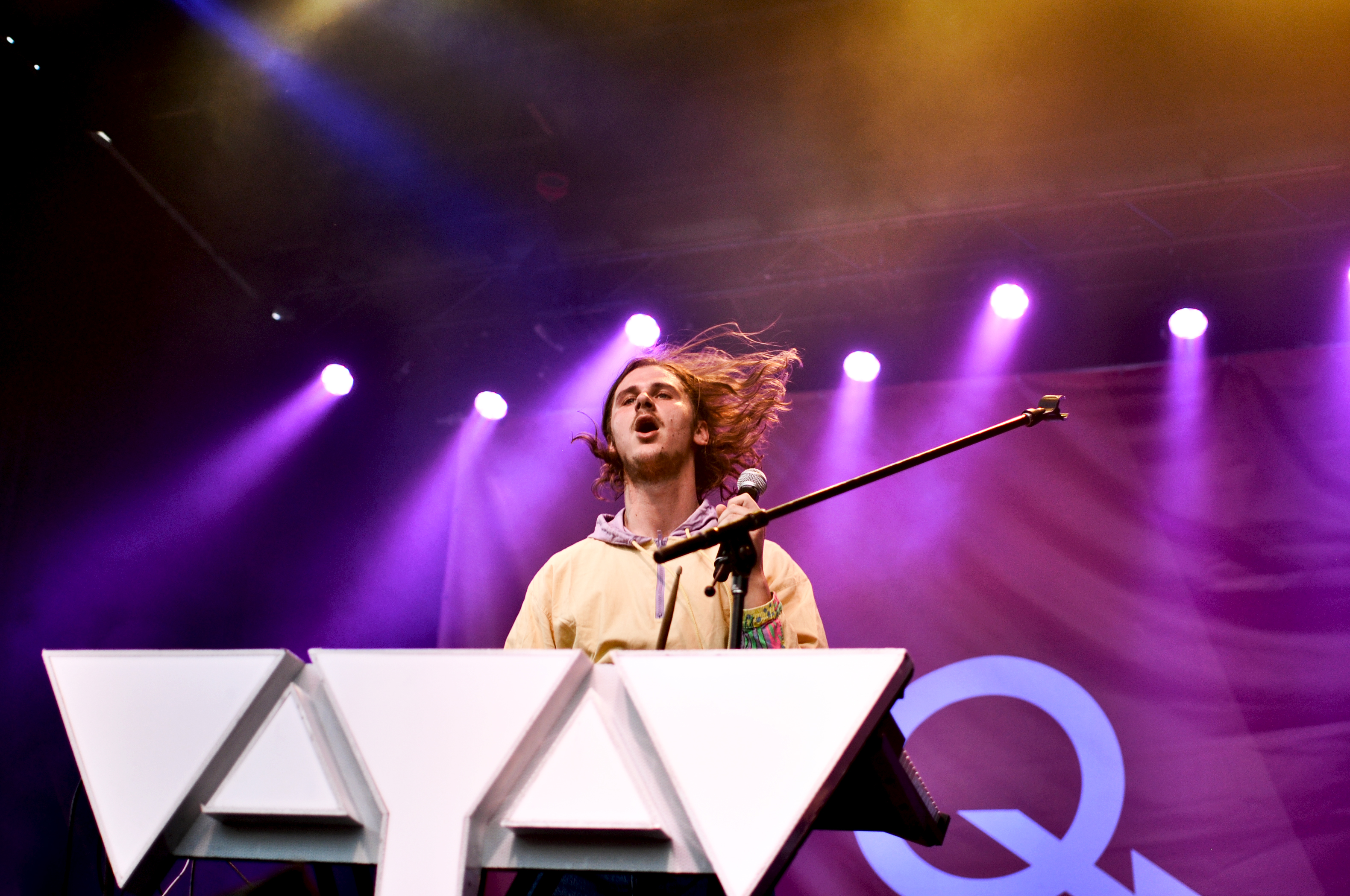 On s’échappe du côté de la scène Hydro-Québec, sous une fine pluie qui n’a pas réussie à décourager plusieurs dizaines de courageux festivaliers. Hollydays monte sur scène pour leur première montréalaise, et rien qu’à voir leurs visages, on les sent ravis. Le duo parisien a sorti il y a quelques mois un nouvel EP très mélancolique, qu’ils n’ont pas de peine à retranscrire dans un live captivant et magnétique.