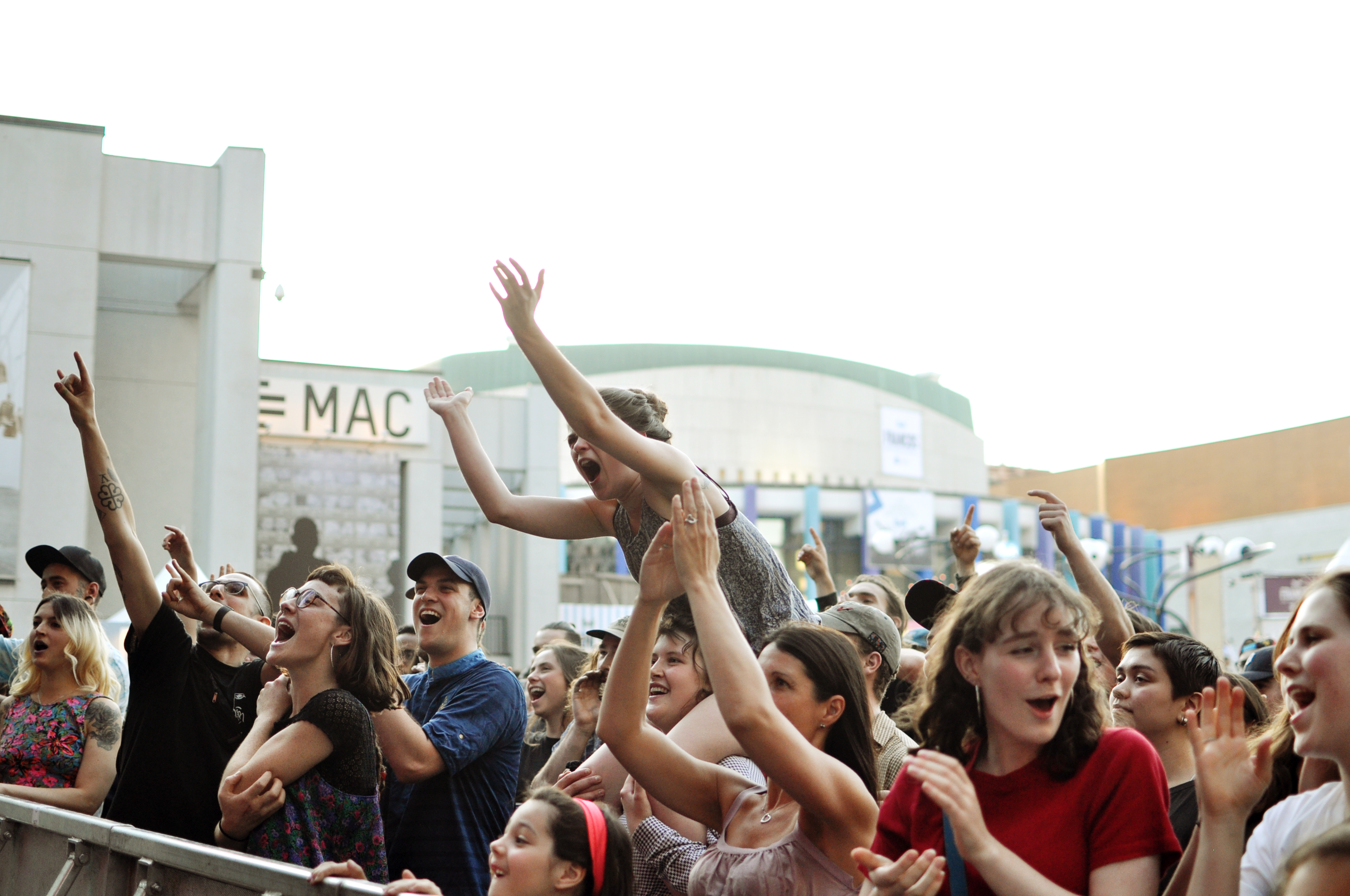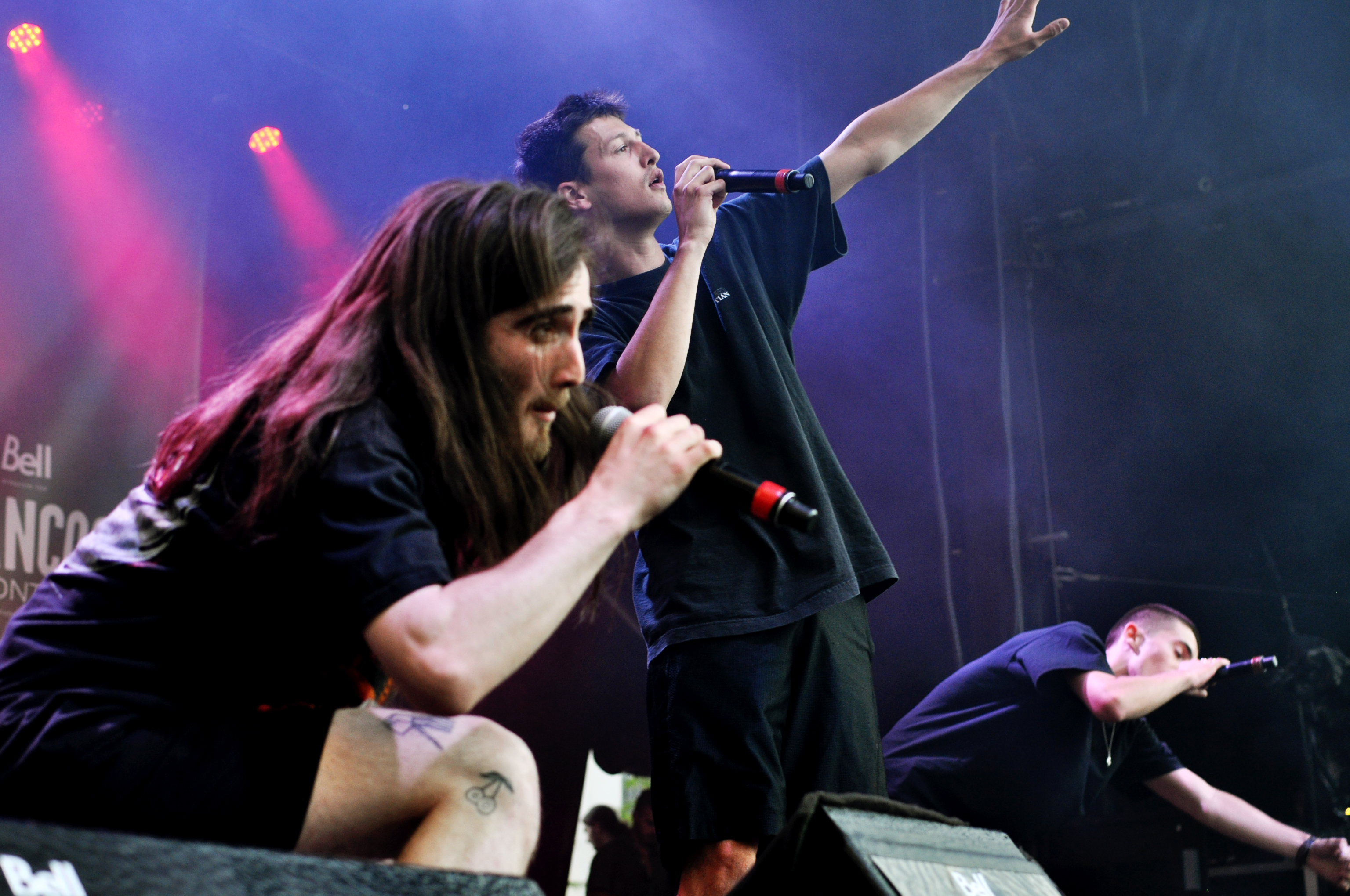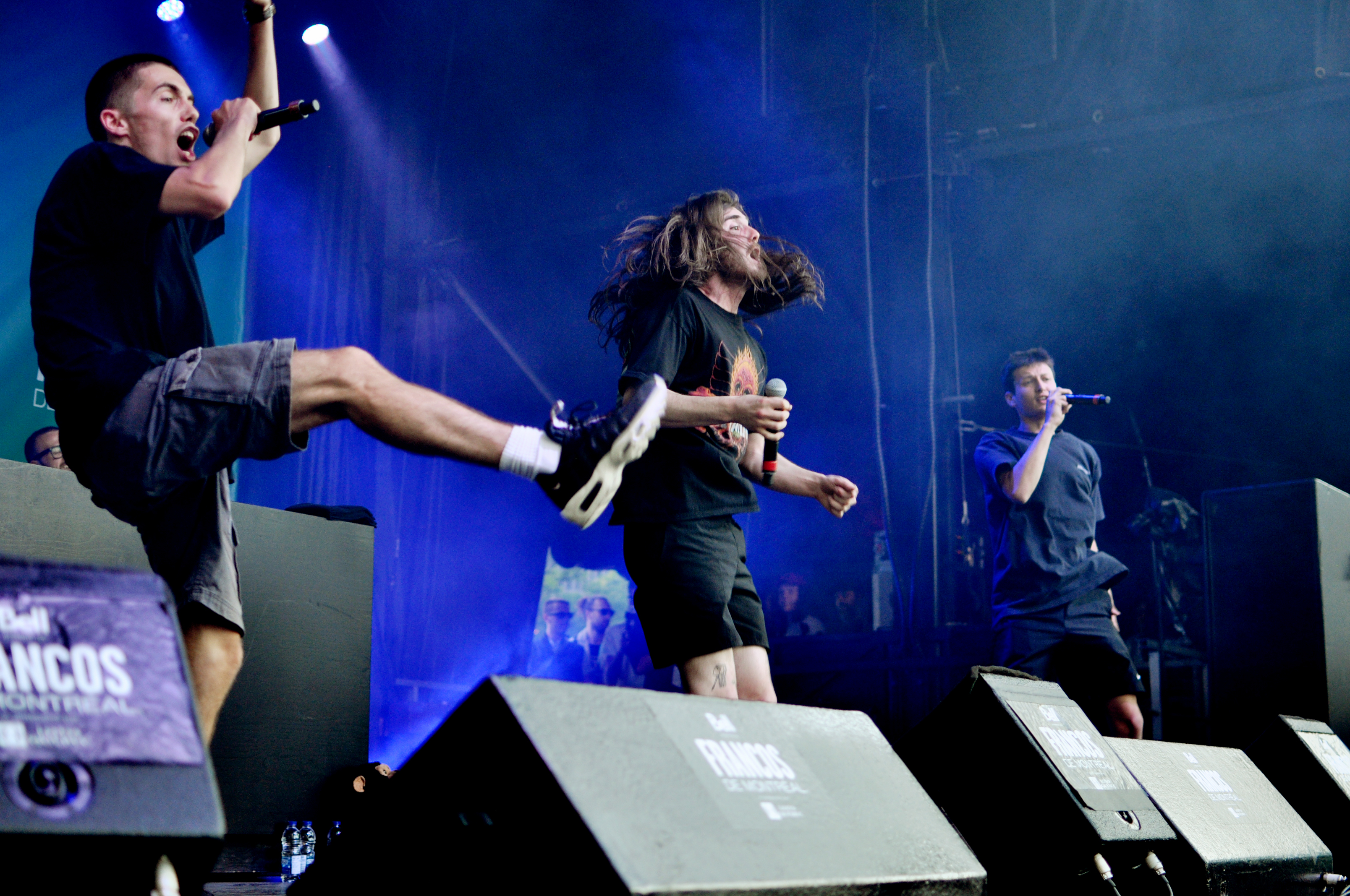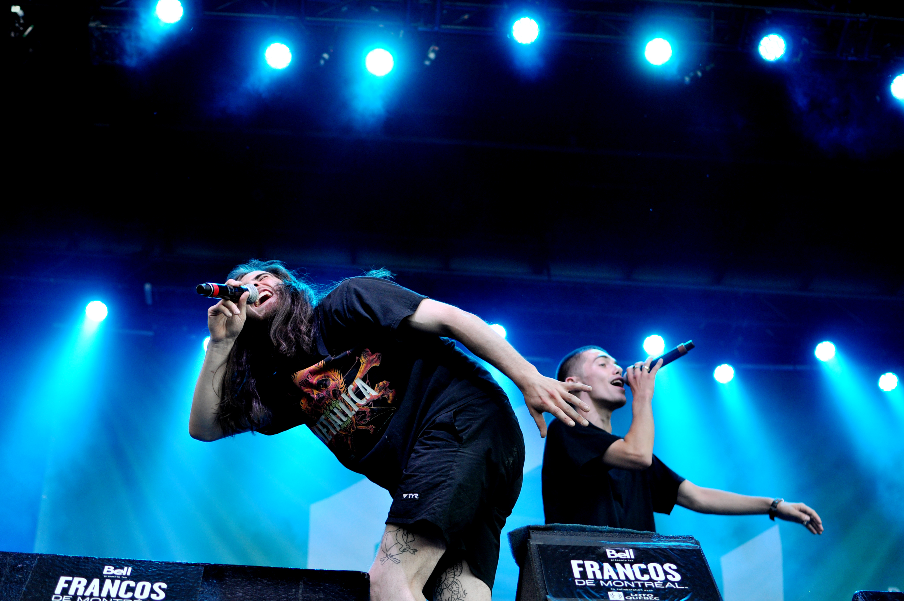 Tout comme LaF quelques minutes plus tard : les grands gagnants des Francouvertes 2018 foutent le dawa sur la scène Desjardins. Les premiers rangs du public sont visiblement de fins connaisseurs et le collectif de rap montréalais se déchaîne à cœur joie.