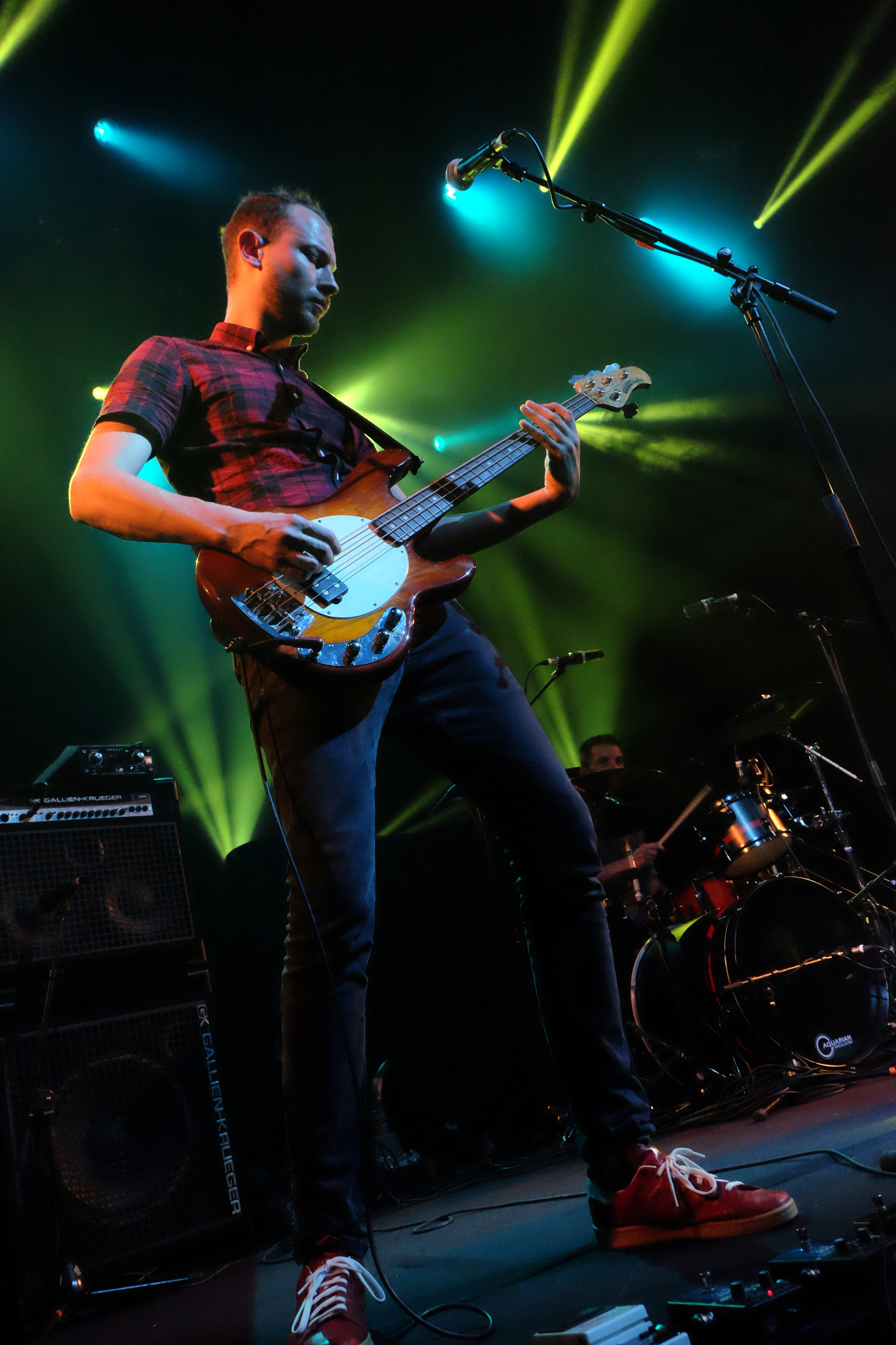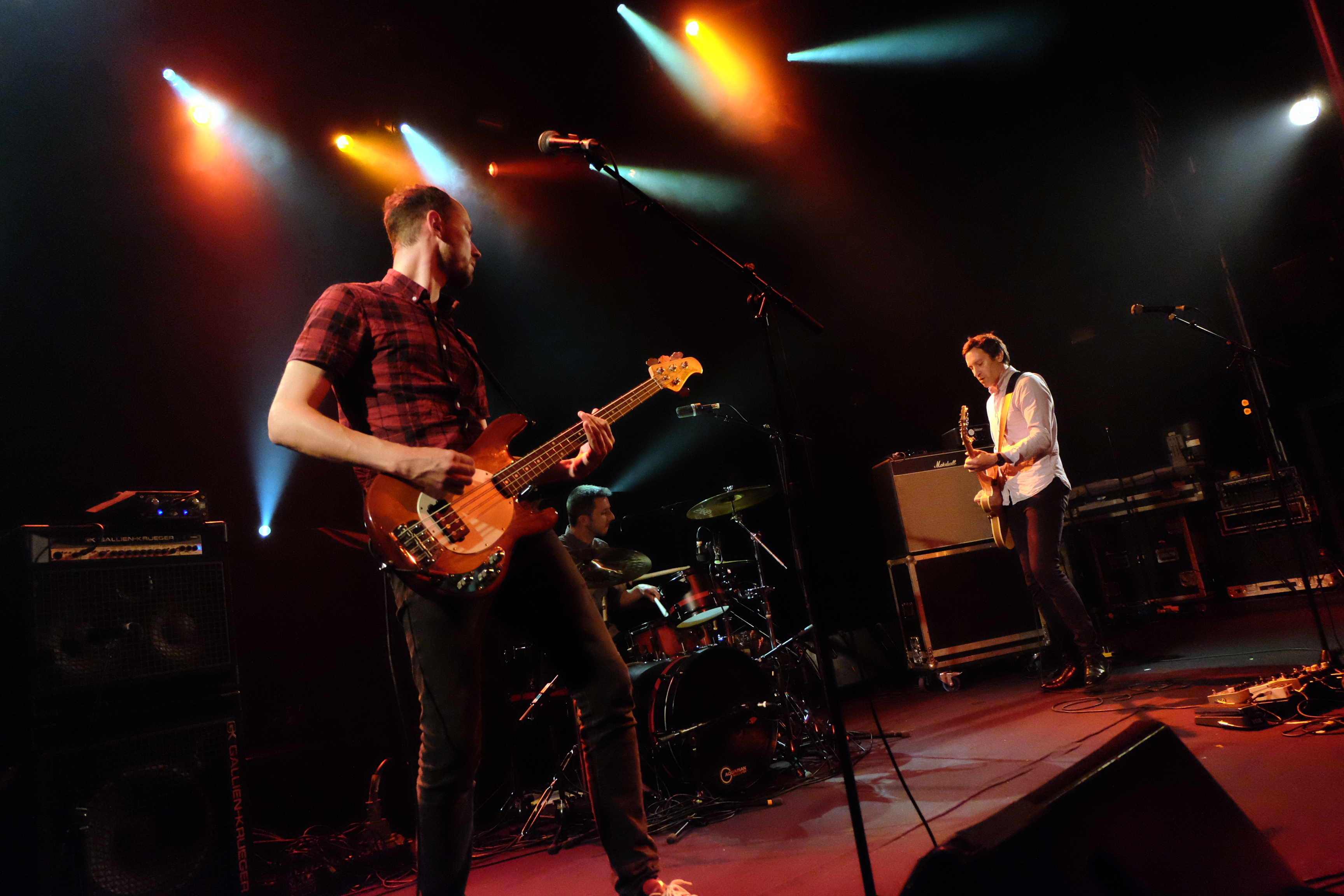 Le premier “mais”, il est arrivé à l’entrée, quand on m’annonce que je ne dois surtout pas prendre de photo de Jim Reid de face. J’avoue que je ne suis pas particulièrement fan de ce genre de consigne, surtout quand tu n’as pas la latitude de bouger comme tu le veux pour les prendre, tes photos. Heureusement, j’arrive tôt et trouve une place sur le côté. Snaabbacash, le trio de Belfort déjà vu il y a quelques mois, me fait aussi un peu oublier tout cela. Bien que le line-up ait totalement changé, à l’exception du chanteur-guitariste, leur musique qui rappelle à la fois la brit-pop et les grosses cylindrées américaines comme BRMC est une bonne entrée en matière. Snaabbacash fait clairement partie des groupes qui n’auraient pas ce son si The Jesus And Mary Chain n’avait pas existé. Alors les mettre en première partie, ça se tenait. Basse lourde, batterie puissante… Même si un peu plus de guitare aurait été la bienvenue, le public apprécie.
