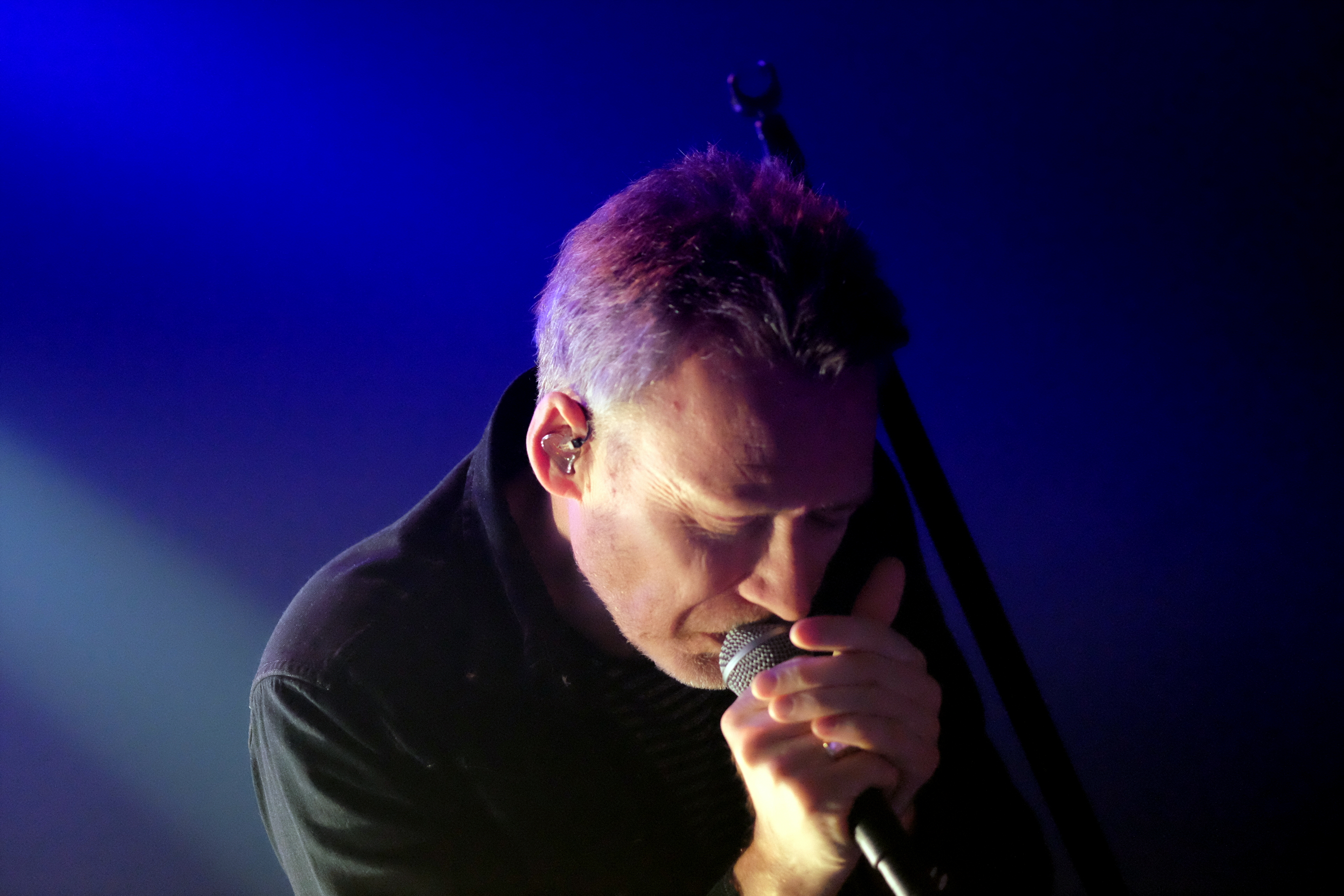 Mais voilà, il y a un autre “mais” qui m’empêche de rester totalement emballée par ce concert. Cette scénographie. Bien sûr, on ne s’attend pas à ce qu’un concert de TJAMC de 2018 ressemble à ce qu’il se passait il y a 30 ans. Les émeutes, les bastons, ça va aller, merci bien. Mais tout de même, je ne m’attendais pas à ce Jim Reid seul à l’avant, pendant que les autres resteront toujours dans le fond, en ligne. Alors oui, on parle du groupe à l’origine du “shoegaze”. Ok, Jim les regarde, ses chaussures. Il ne parle pas beaucoup, Jim. Tout juste un ou deux mercis entre les chansons. C’est peu. Peut-être peu important, aussi. Mais ça contraste tellement avec la tonne de lumières aveuglantes et épileptiques qui écrase le tout… Cela peine à embarquer le public (public bien décevant par ailleurs par son côté statique), qui aurait sûrement apprécié de voir un peu mieux ce qu’il se passait à l’arrière. Un public qui aurait aussi voulu avoir droit aux setlists (parcours du combattant pour avoir une photo des titres en fin de concert !). Un public qui aurait peut-être apprécié de ne pas débourser 30 balles dans un t-shirt… Allez, on dira qu’en cela, peut-être, on retrouve le côté “on vous emmerde, on fait ce qu’on veut” du groupe. Et que la fin de set sur “I Hate Rock’n’roll” ne fait qu’enfoncer le clou : The Jesus And Mary Chain n’a pas beaucoup changé.