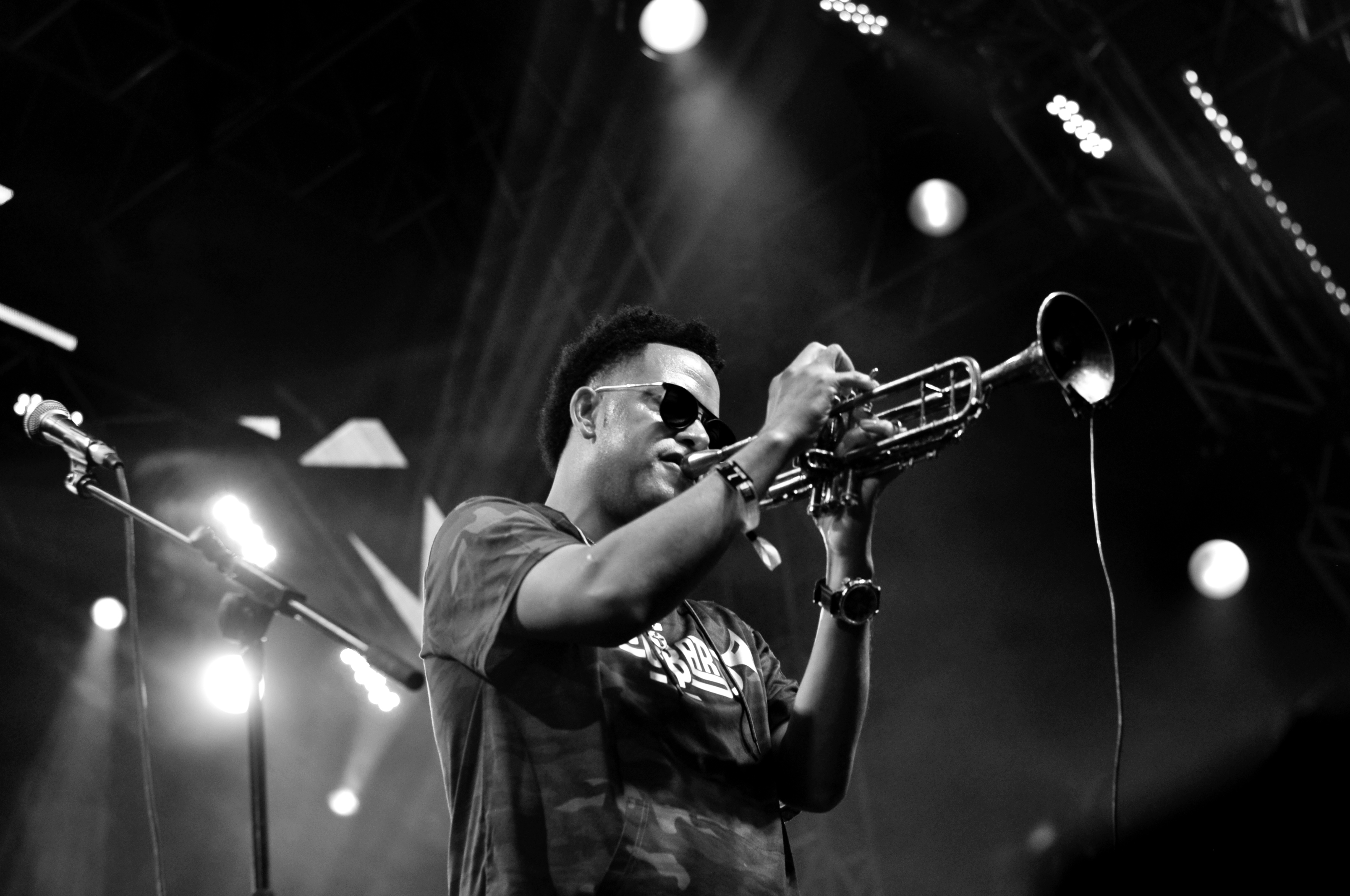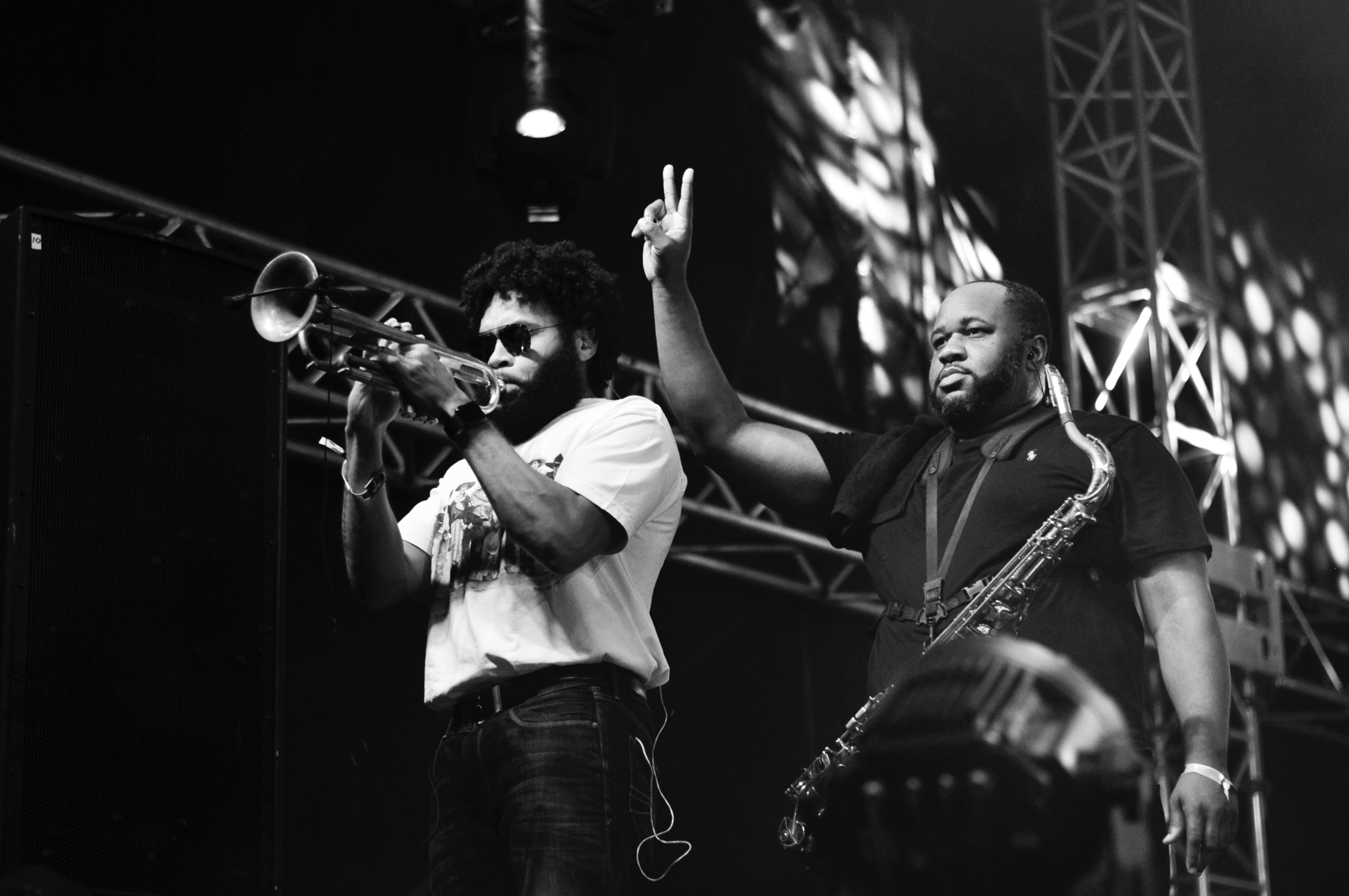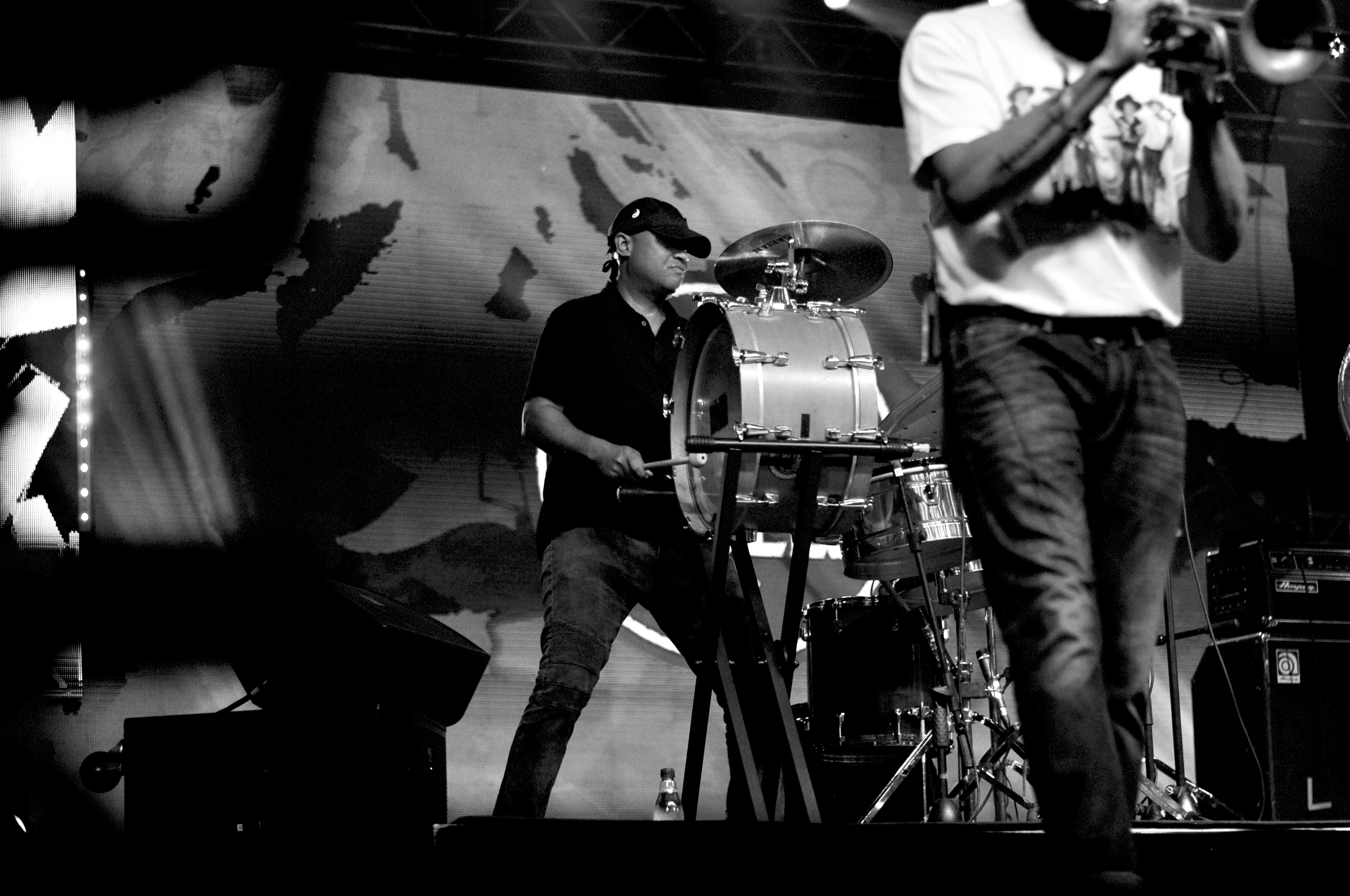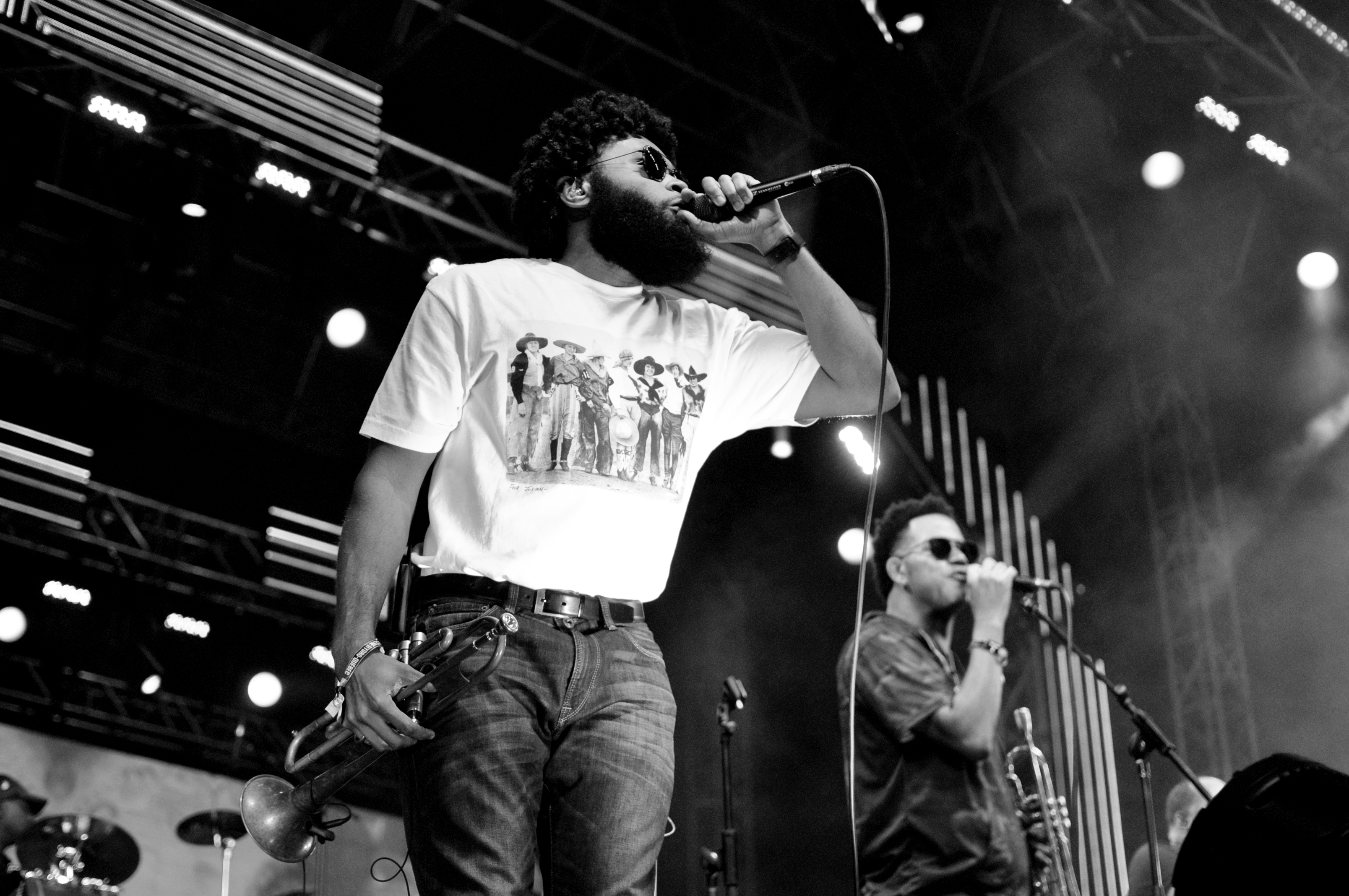 Fin de soirée avec une jolie découverte bien festive : The Soul Rebels. Neuf Noirs-américains de la Nouvelle-Orléans qui maîtrisent leur instrument comme personne. Un quintet de cuivre qui joue en harmonie au quart de soupir près. Pour la section rythmique très fanfare : deux percus et un soubassophone en arrière. Quelques passages chantés et voilà la place d’Youville qui fête l’été et la musique. Très bon !