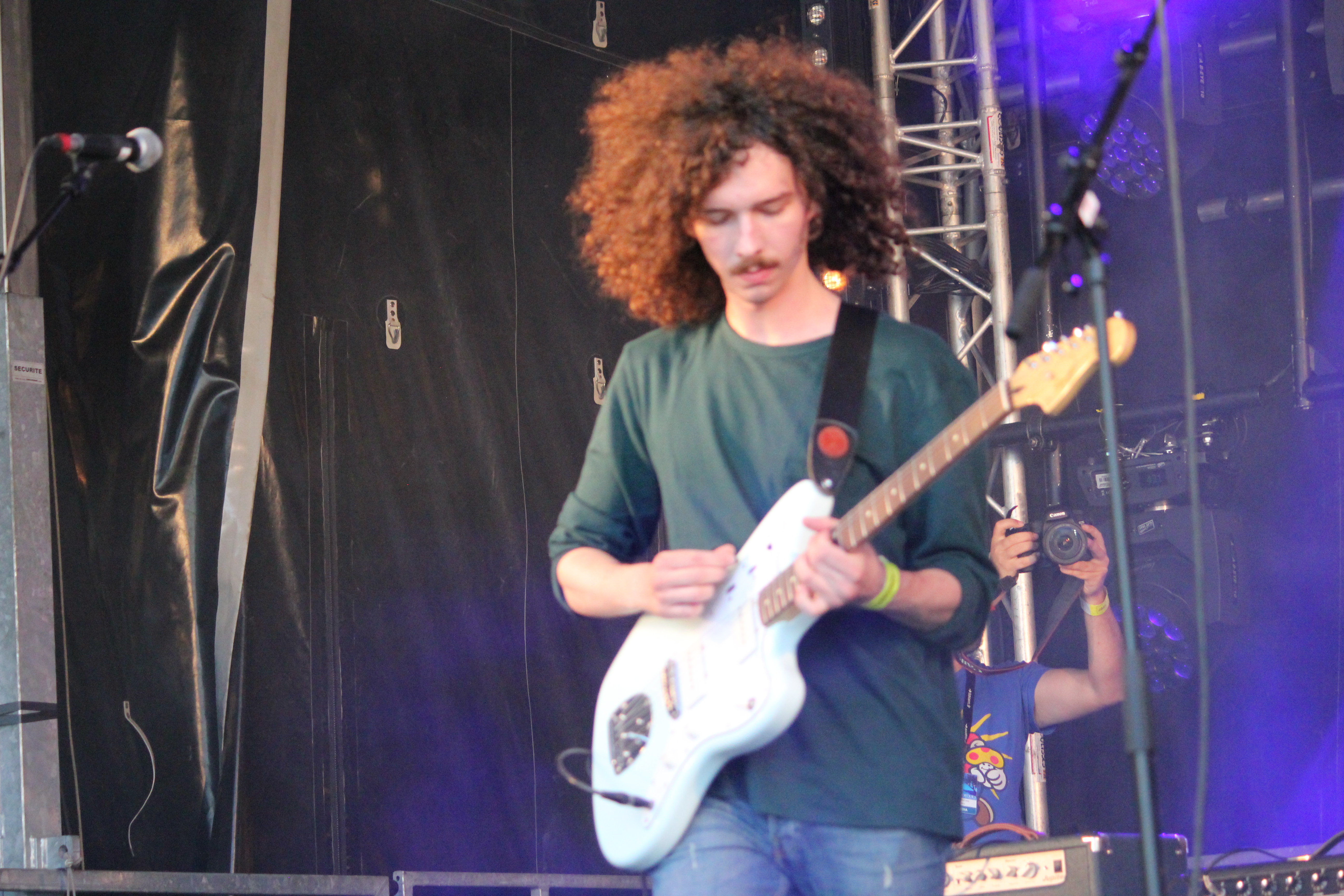 Le groupe qui m’intéressait le plus ce 11 juillet, aux Francofolies, c’était MNNQNS. Avec eux, c’était une suite de rendez-vous manqués. Je les ai ratés plusieurs fois alors que leur EP tourne en boucle dans mes oreilles depuis quelques temps déjà. C’est un peu la bouffée d’oxygène, la bulle de punk rock dans une époque qui ne jure que par le rap. Énergiques, charismatiques, nonchalants, magnétiques, les quatre garçons aux cheveux longs maîtrisent la scène. Leurs titres sont intelligemment construits, à l’anglaise. On pourrait jurer d’ailleurs qu’ils sont anglais quand on les écoute, et qu’ils viennent d’une autre époque, quelque part entre les années 1970 et 1980. Mais, ils viennent bien de chez nous. Et c’est sans doute l’un des meilleurs groupes actuels. S.S.B