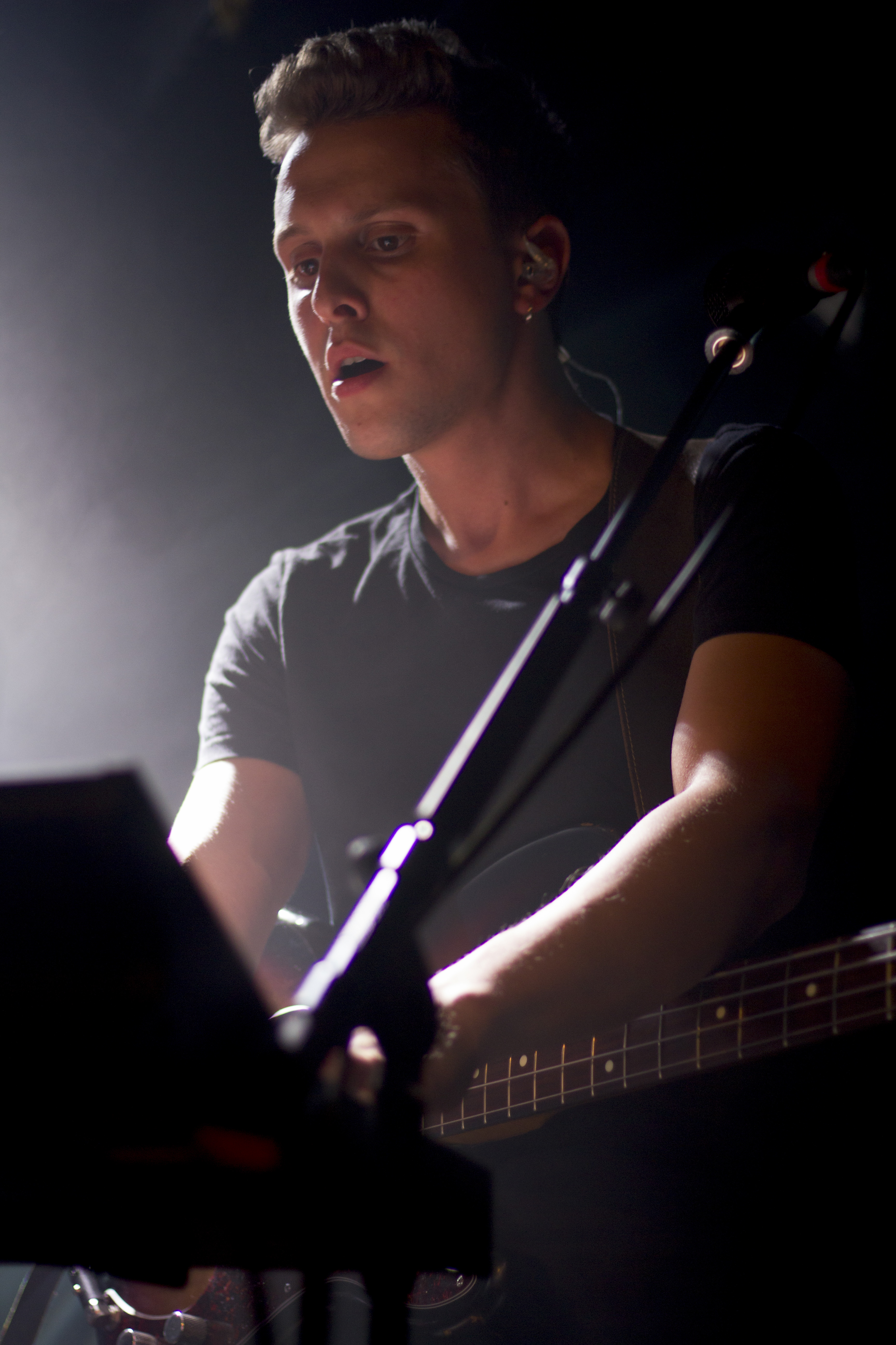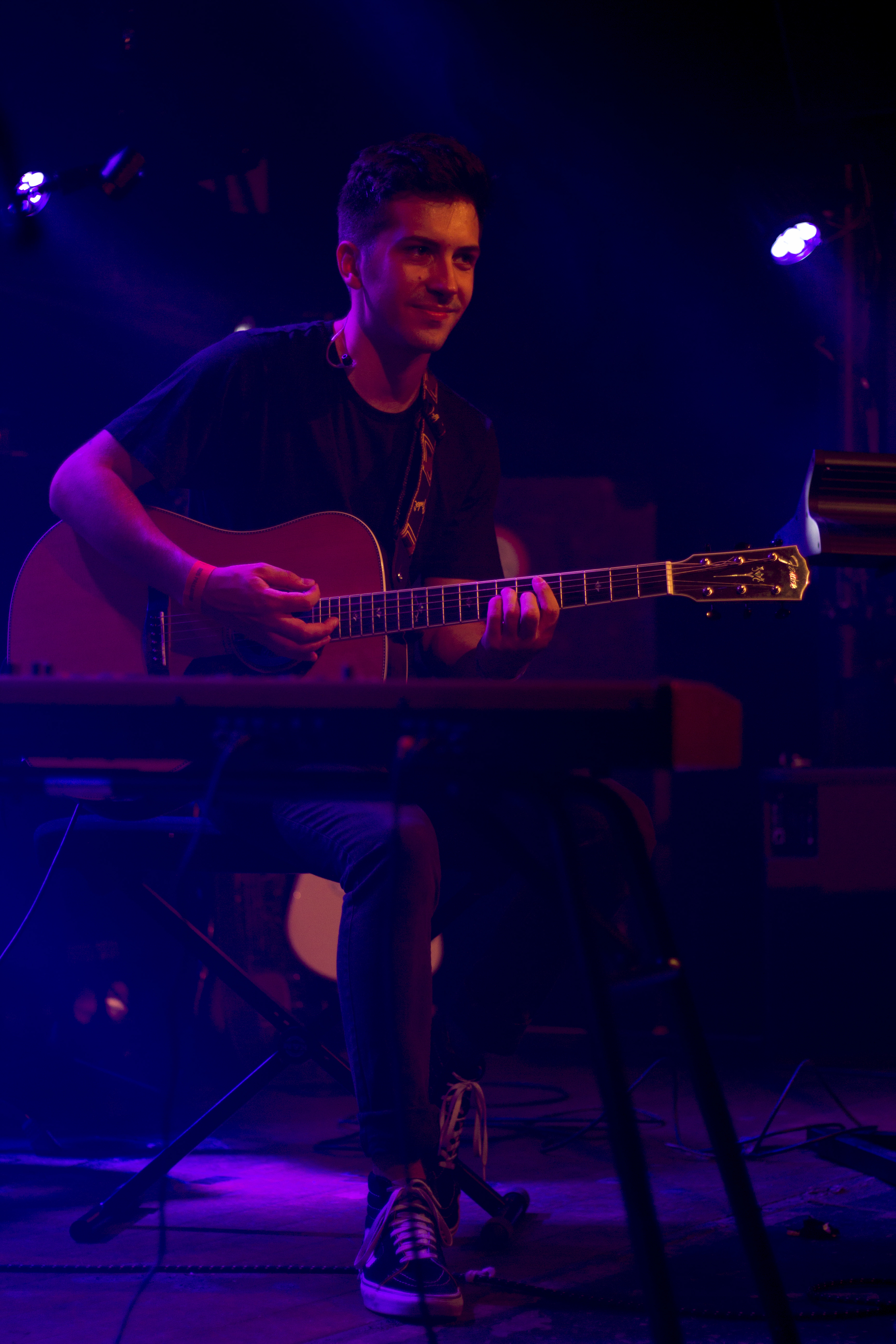 Après une petite demi-heure de changement de plateau et une présentation rock’n’roll du groupe par le chauffeur de salle (déguisé en Amy Winehouse, et tentant maladroitement de faire rire le public), les quatre garçons de Colours in The Street montent sur scène. Près de 5 ans après leur premier concert ensemble dans cette même salle, ils font ce soir leur grand retour au Bus Palladium. Au chant, Alex survole la salle de sa longue carrure et surtout de sa voix aérienne. Maîtrisant à merveille les suraiguës, il ne se lasse pas des longues notes tenues. Et nous non plus. Le set enchaîne avec subtilité les titres soul “Tell the World”, pop “Paper child” et acoustique “Triangle”. En anglais, les garçons chantent les titres de leur album Royaume et avec des touches de français (“Just Go!”, “Lions”), ceux de leur dernier EP Tell the World sorti le 1er juin 2018 chez Velvet Coliseum.