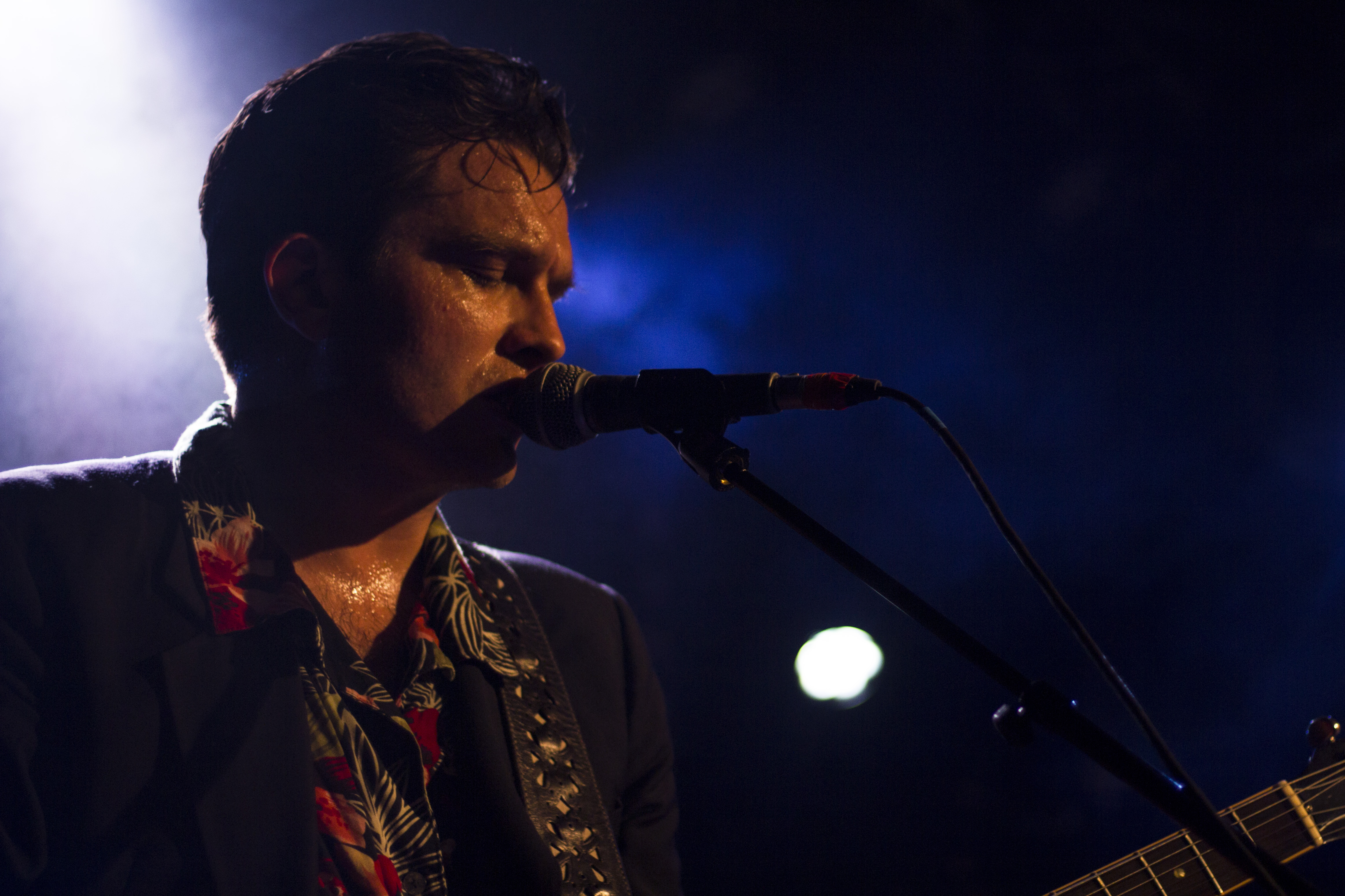 C’est le duo franco-suèdois qu’on aime tant qui entame la soirée. Avec “Le jeu”, Jo Wedin & Jean Felzine lancent leurs premieres notes. Les deux voix s’accordent à la perfection, guitare jazz et clavier-orgue donnant une touche colorée et dansante. Leurs regards amusés et leurs pas de danse finissent de conquérir le public. Le duo est accompagné d’un batteur ce soir. À trois ils jouent les titres de leur EP éponyme et de leur premier album, Pique-Nique (novembre 2017 chez At(h)ome). Dans le public on chantonne les titres phares qui accompagnent le groupe depuis un moment déjà, “Idiot” ou “Les hommes (ne sont plus des hommes)”. Mais Jo & Jean nous font aussi la surprise d’un nouveau titre chanté en français et en suédois, festif avec ses accents pop-disco, “Je ne veux plus entendre (Jag vill inte höra)”. Après une heure de set, et trempés, ils quittent la scène sur leur fidèle “La Canopée”.