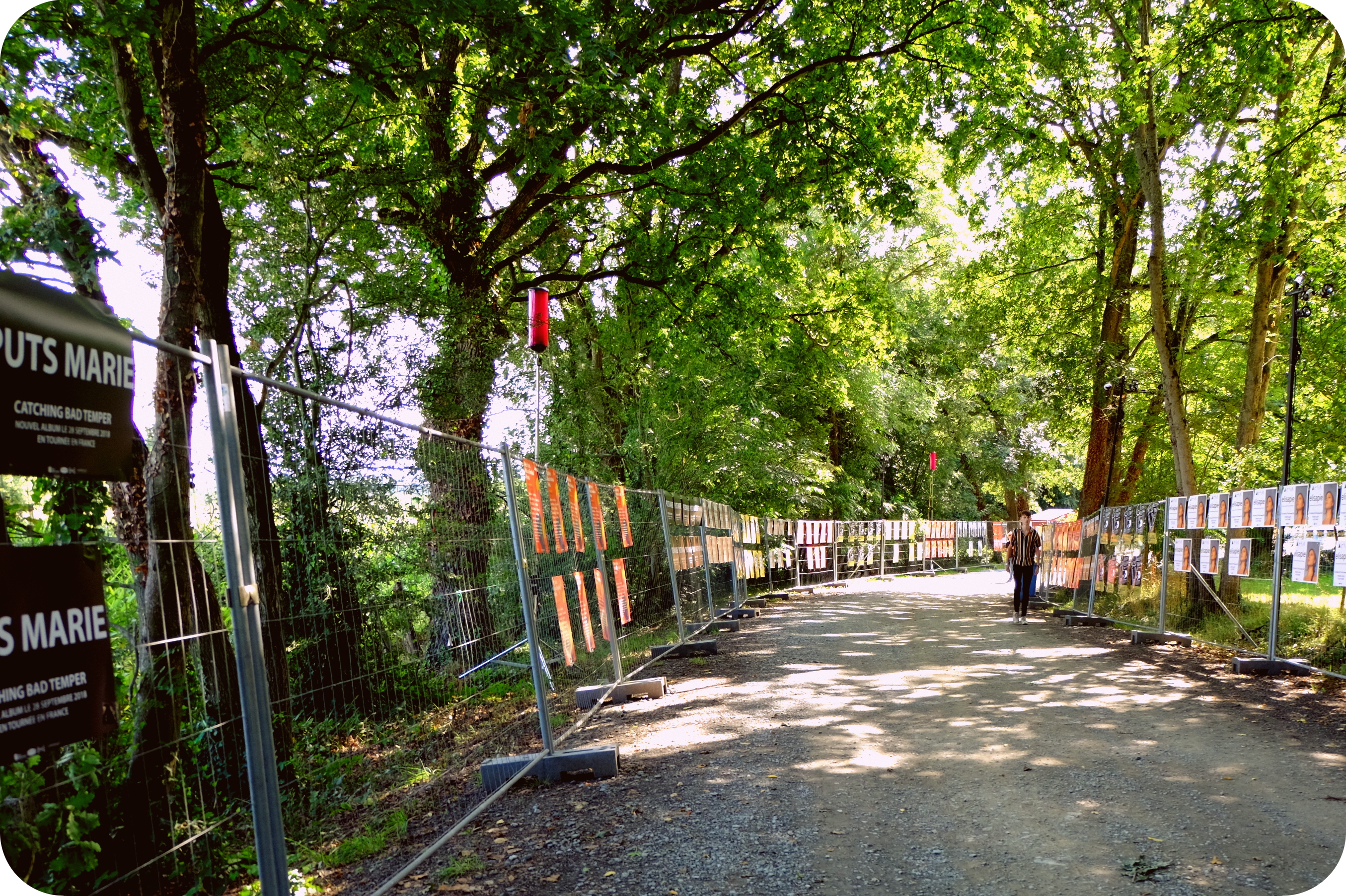 Forcément, parlons taille. Deux scènes seulement quasi face à face, avec des groupes qui jouent en alternance. Pas de dilemme dans les groupes à voir, tout le monde peut écouter l’ensemble de la programmation. Ça, pour les amoureux de musique, je peux te dire que c’est un sacré luxe. Mais c’est aussi la possibilité, quand tu fais les 3 jours, de vite te sentir « chez toi ». Parce que tu ne passes pas ton temps à chercher des toilettes proches de là où tu es, et puis parce que tu finis par croiser des têtes familières. 25 000 personnes de capacité, quand Rock en Seine lorgne sur les 120 000 et Les Eurockéennes sur les 130 000. Presque familial donc. De quoi te laisser une chance d’apprendre à connaître certains : coucou les très sympathiques irréductibles des premiers rangs de La Scène du Fort !