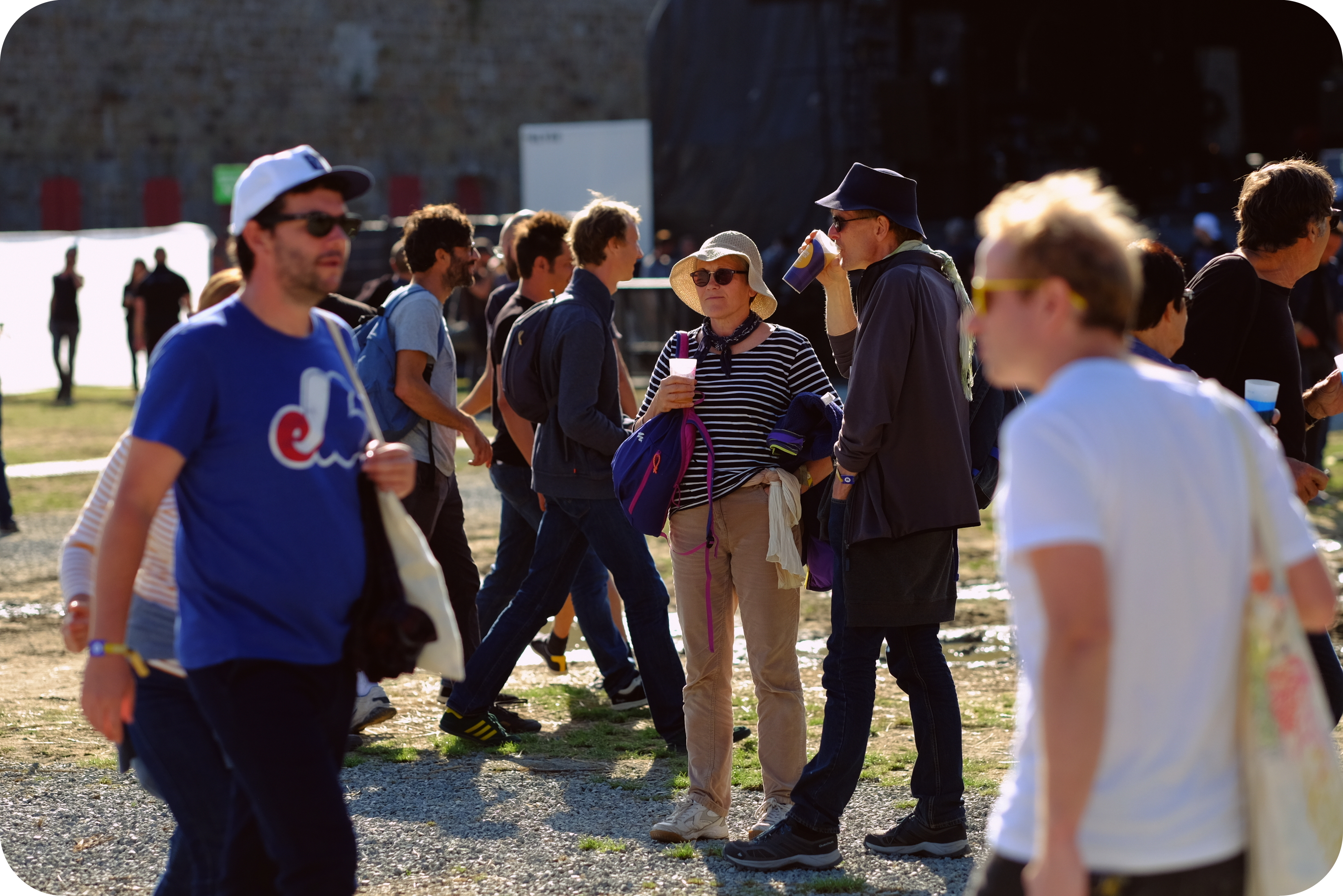 Pas de gros prétentieux en mode Coachella qui serait là pour la hype (tu me diras, le temps breton aide peut-être), ou qui sont là juste pour le camping (ça existe). Des gens toujours prêts à discuter, prêts à rigoler, prêts à danser. Des gens qui ne comprennent pas que tu n’as pas le bon objectif et pas de recul, et s’en foutent des photos floues pourvu que tout le monde se marre. Des gens que tu rencontres dans la navette et qui, même bourrés, ne dépassent pas les bornes (coucou Jean-Pierre !). Des gens qui n’hésitent pas non plus à faire respecter la politesse, les rares fois où c’est nécessaire (coucou la relou qui pousse et qui se montre désagréable pour piquer des places !). Des gens passionnés qui t’expliquent pourquoi Daho tue la variété française avec son dernier album (grand moment). Et puis La Route du Rock, c’est quand même un des seuls festoches où il est facile de tomber sur des gens que tu n’as pas vu depuis 10 ans dès le premier soir. Et ça, c’est assez énorme.