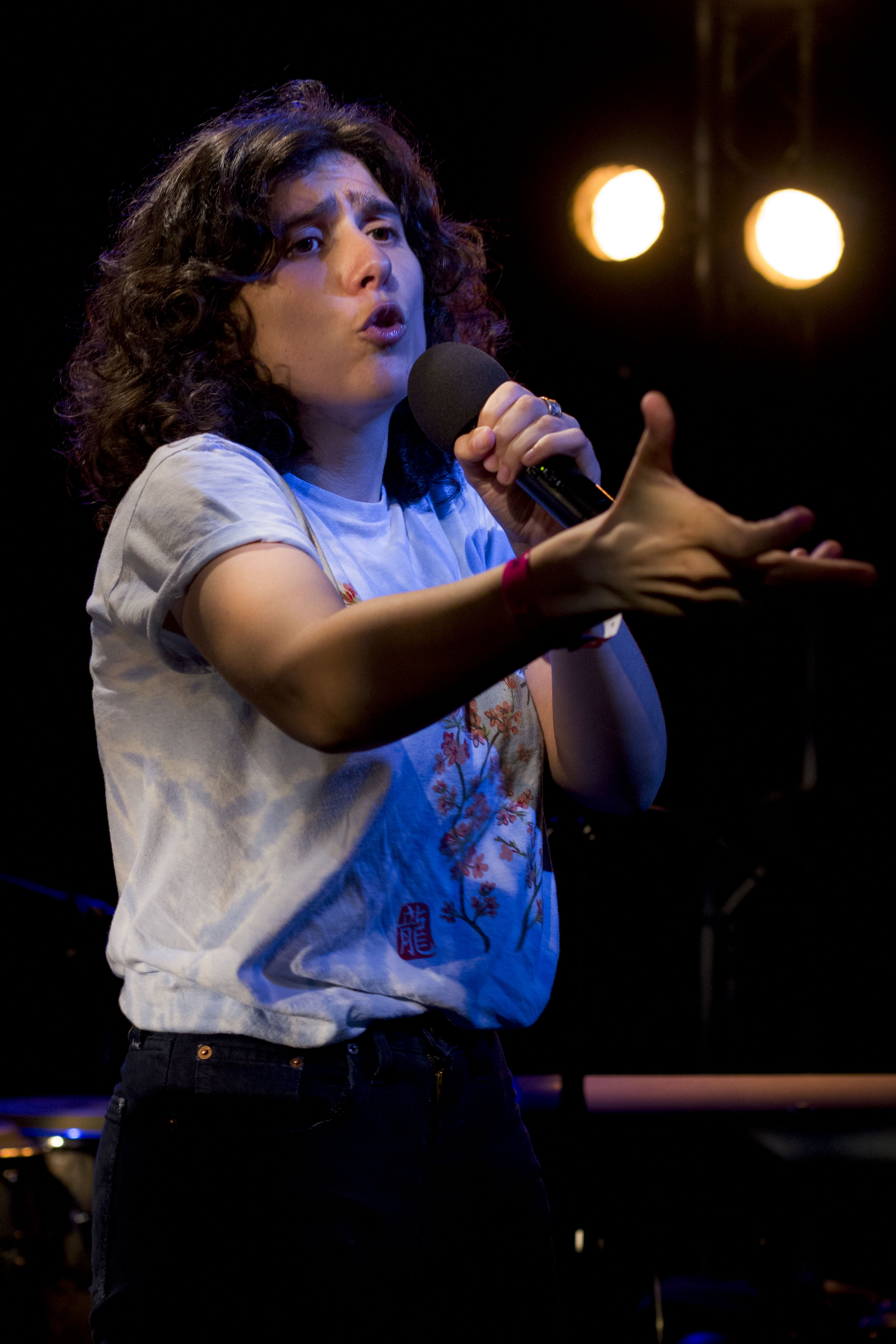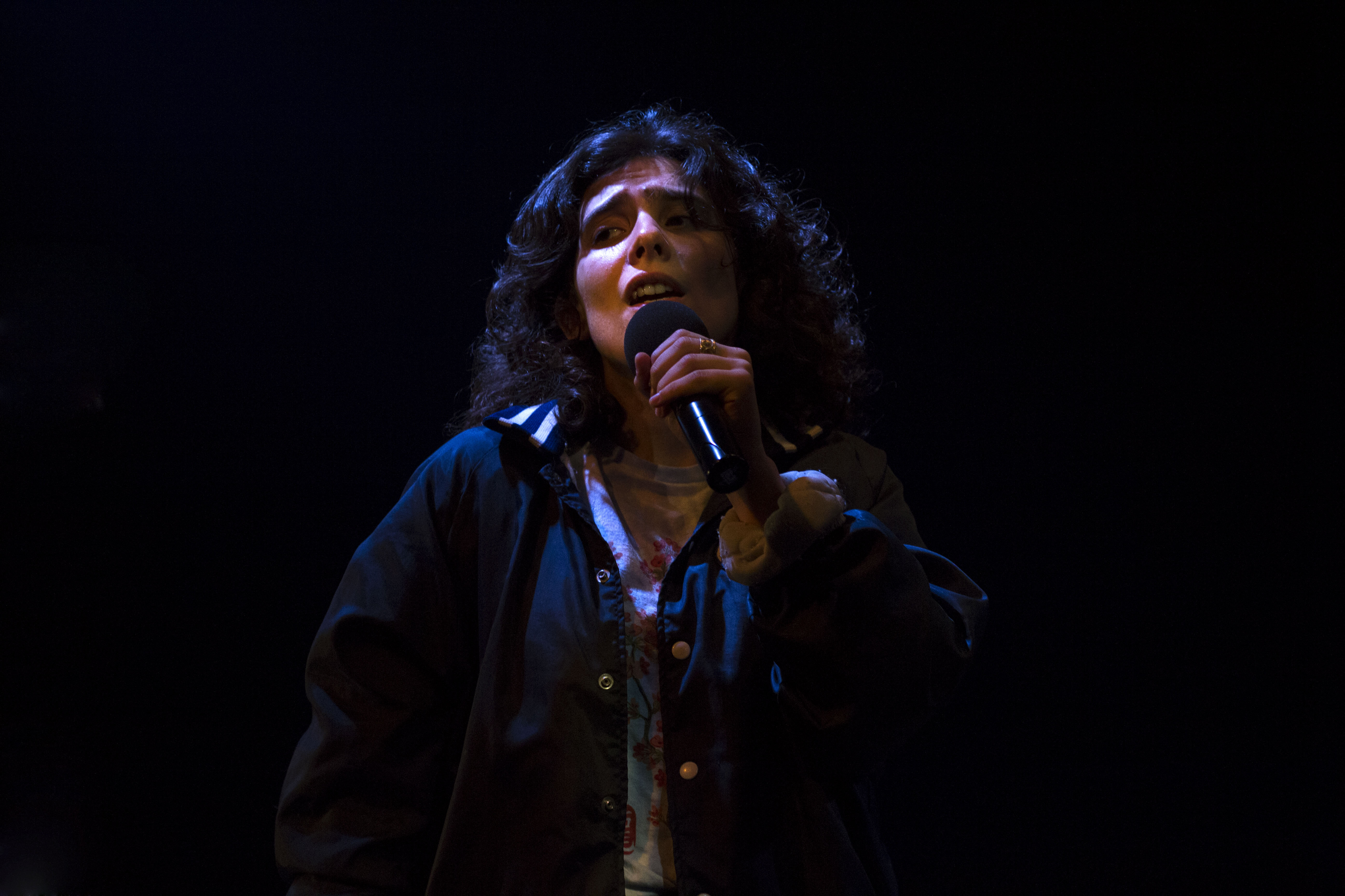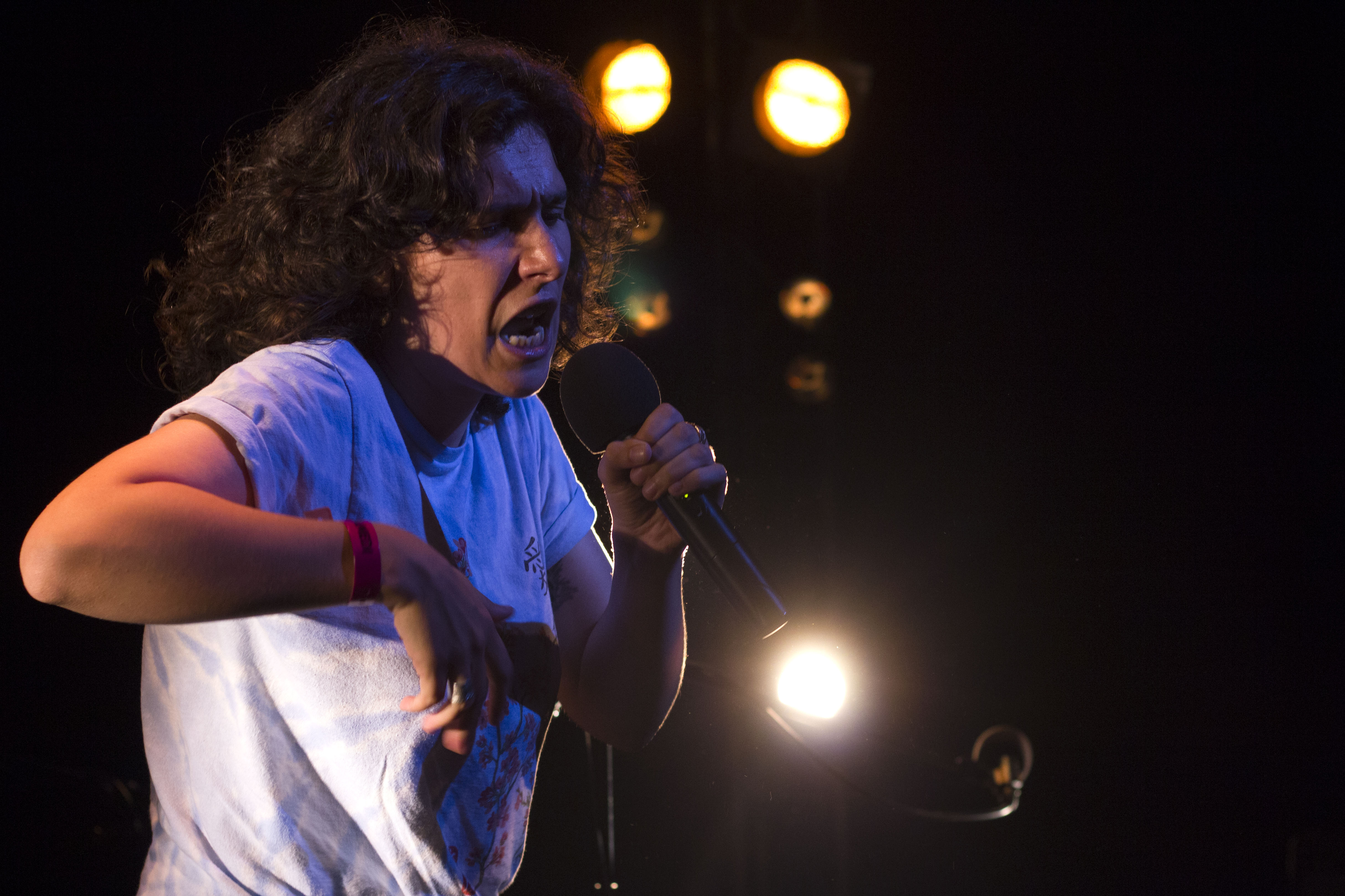 La salle n’est pas comble lorsque P.r2b monte sur scène, mais il ne faudra pas longtemps à la jeune femme pour attirer et captiver les foules. Le cheveu fou, P.r2b (correspondant aux initiales d’un nom à rallonge) enflamme de sa prestance électrisante la petite scène du théâtre.
