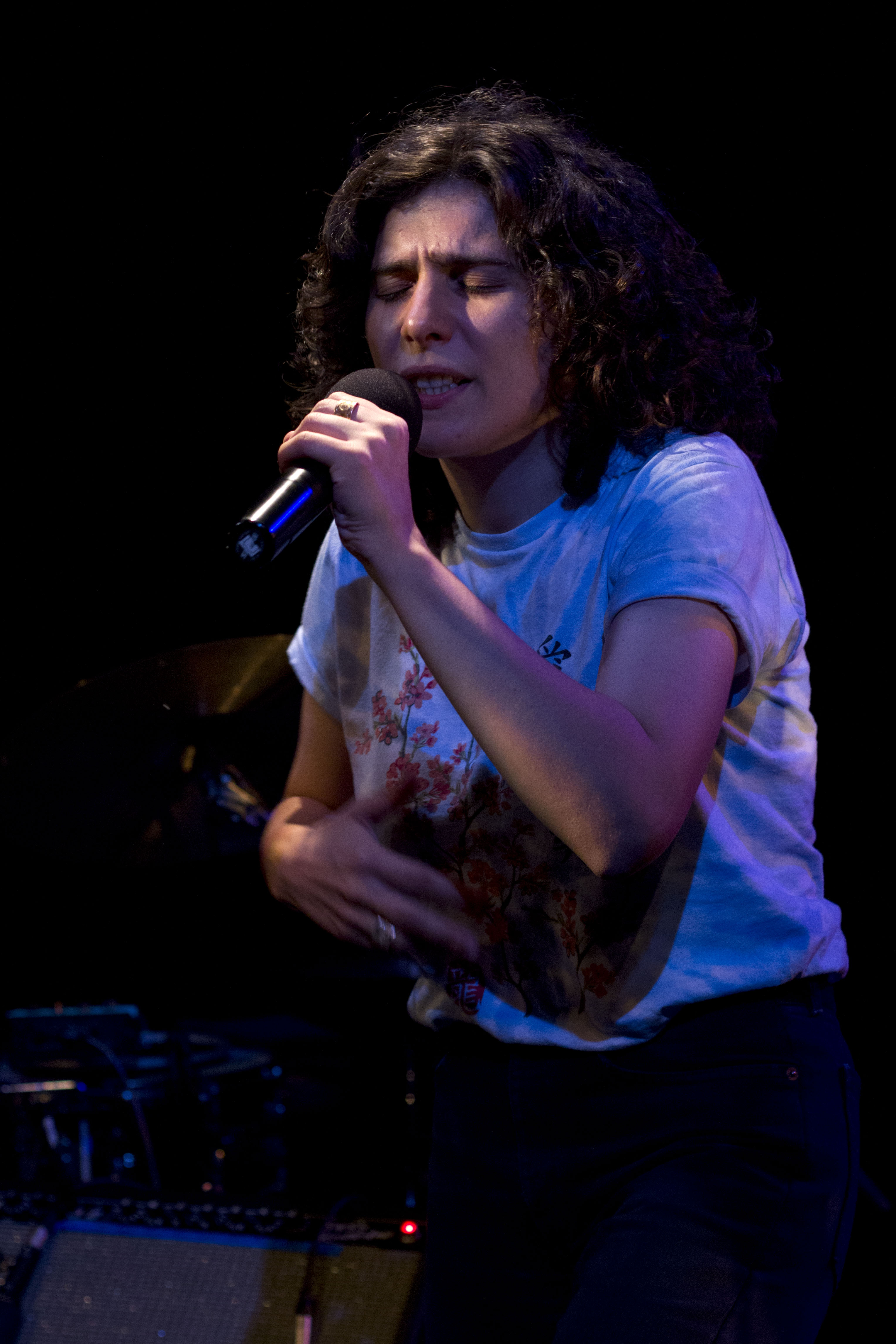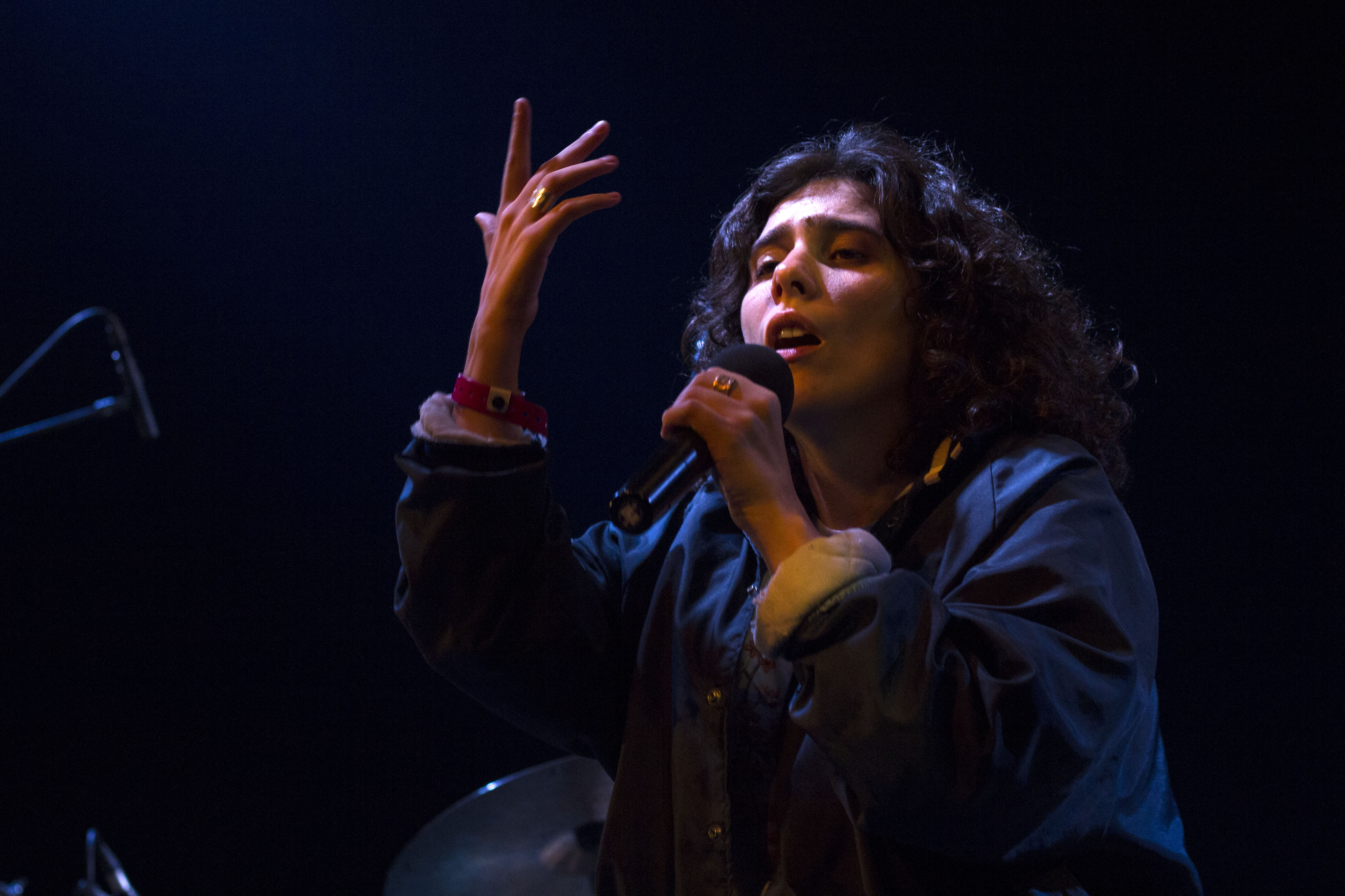 Dans le public on reconnaît quelques uns des titres parus sur les diverses plateformes “Des Rêves” ou “Ocean Forever”. Seule sur la scène, accompagnée uniquement de son pad numérique, P.r2b lance pistes et samples avant de se consacrer à son interprétation intense. En français, elle parle d’amour (“Lettre à P.”), de la jeunesse en péril (“Titanic”), de société (“Vie de chienne”), de l’insoutenable vie à Paris (“Ocean Forever”).