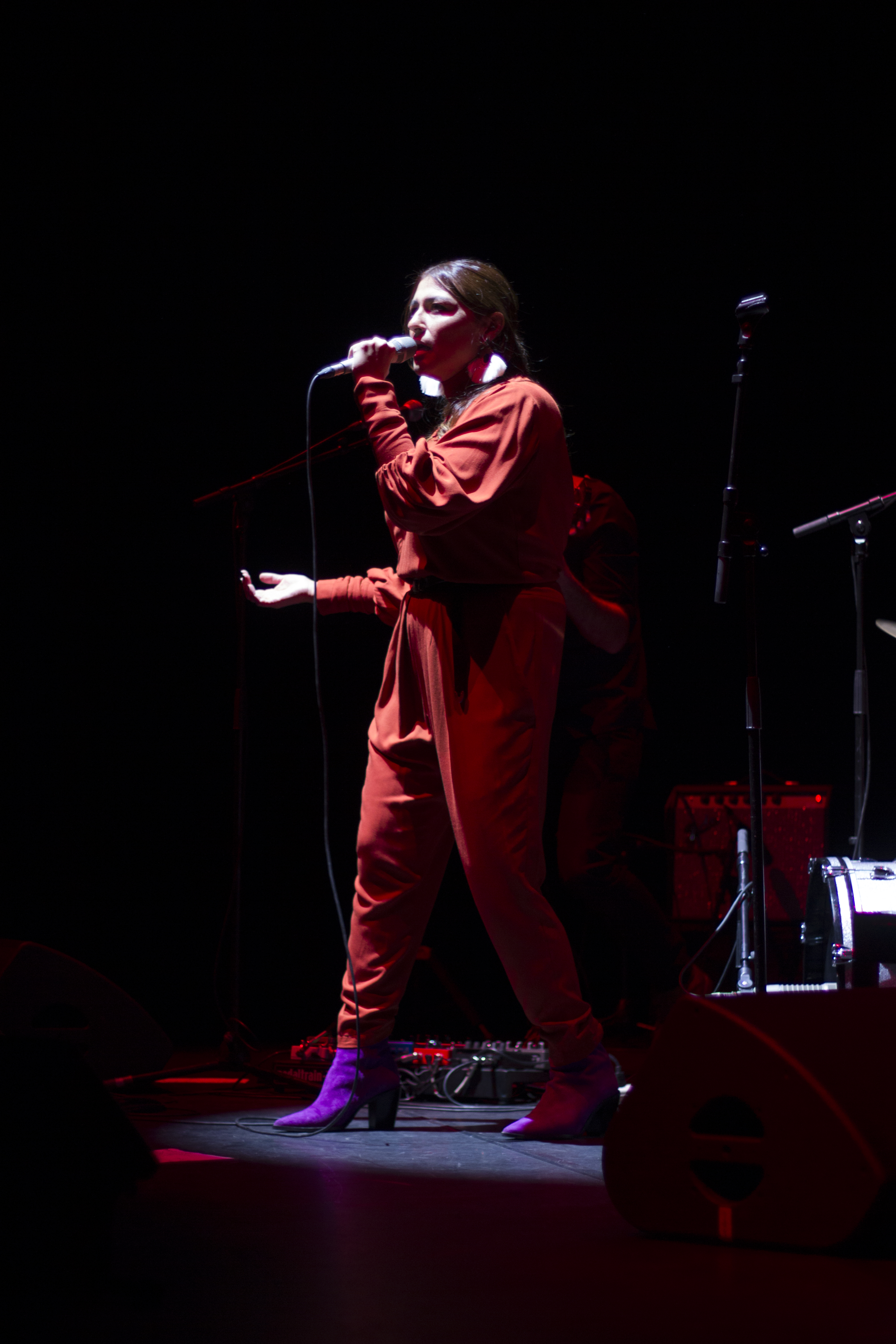 Pour entamer la soirée c’est Elisapie Isaac qui monte sur scène. Entourée d’un batteur et de deux guitaristes, l’artiste venue du Nunavut – province canadienne au nord du Québec – s’accapare la scène baignée d’une lueur rouge sombre. Le public se partage entre ceux qui découvrent l’artiste ce soir et ceux qui l’aiment depuis longtemps déjà.