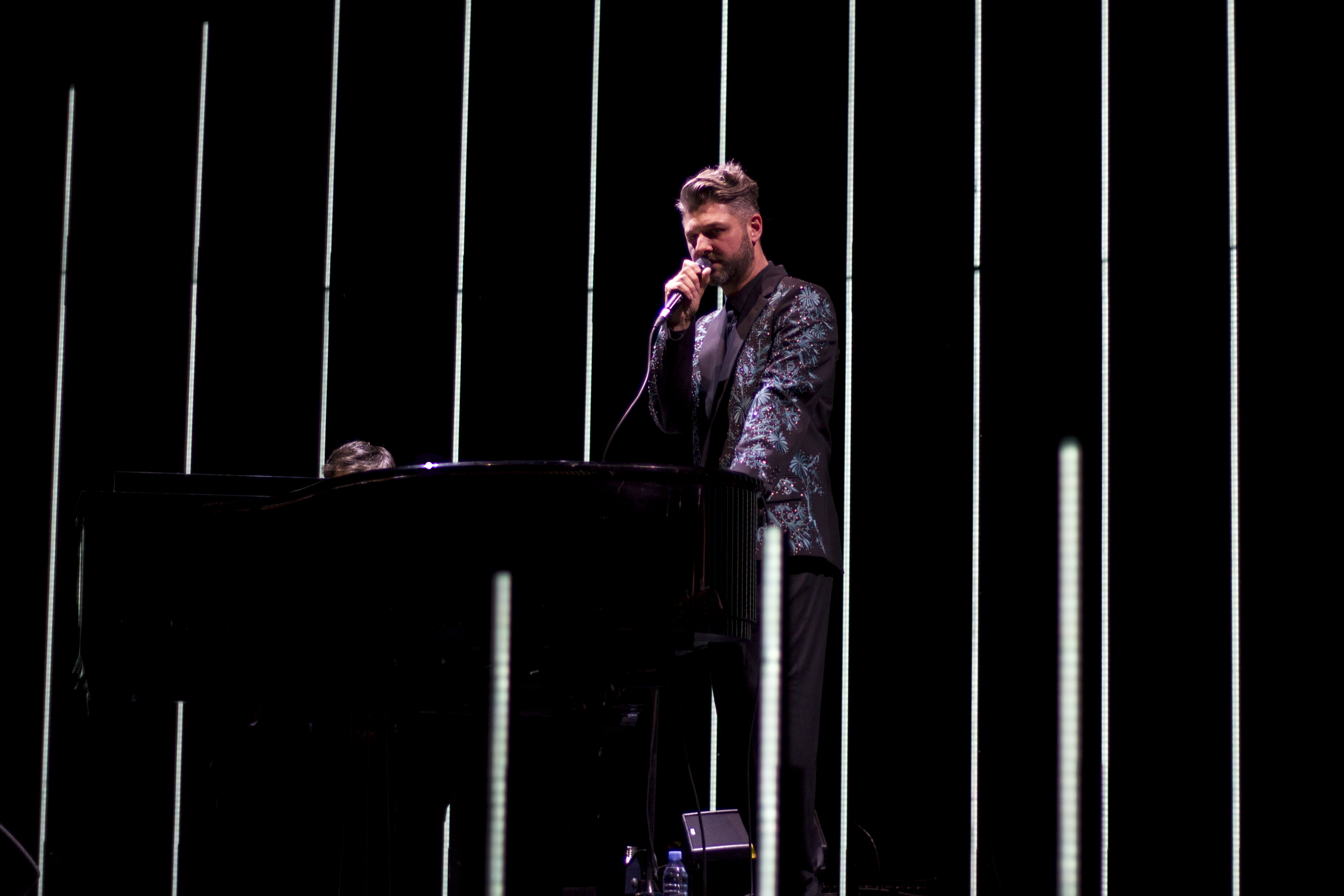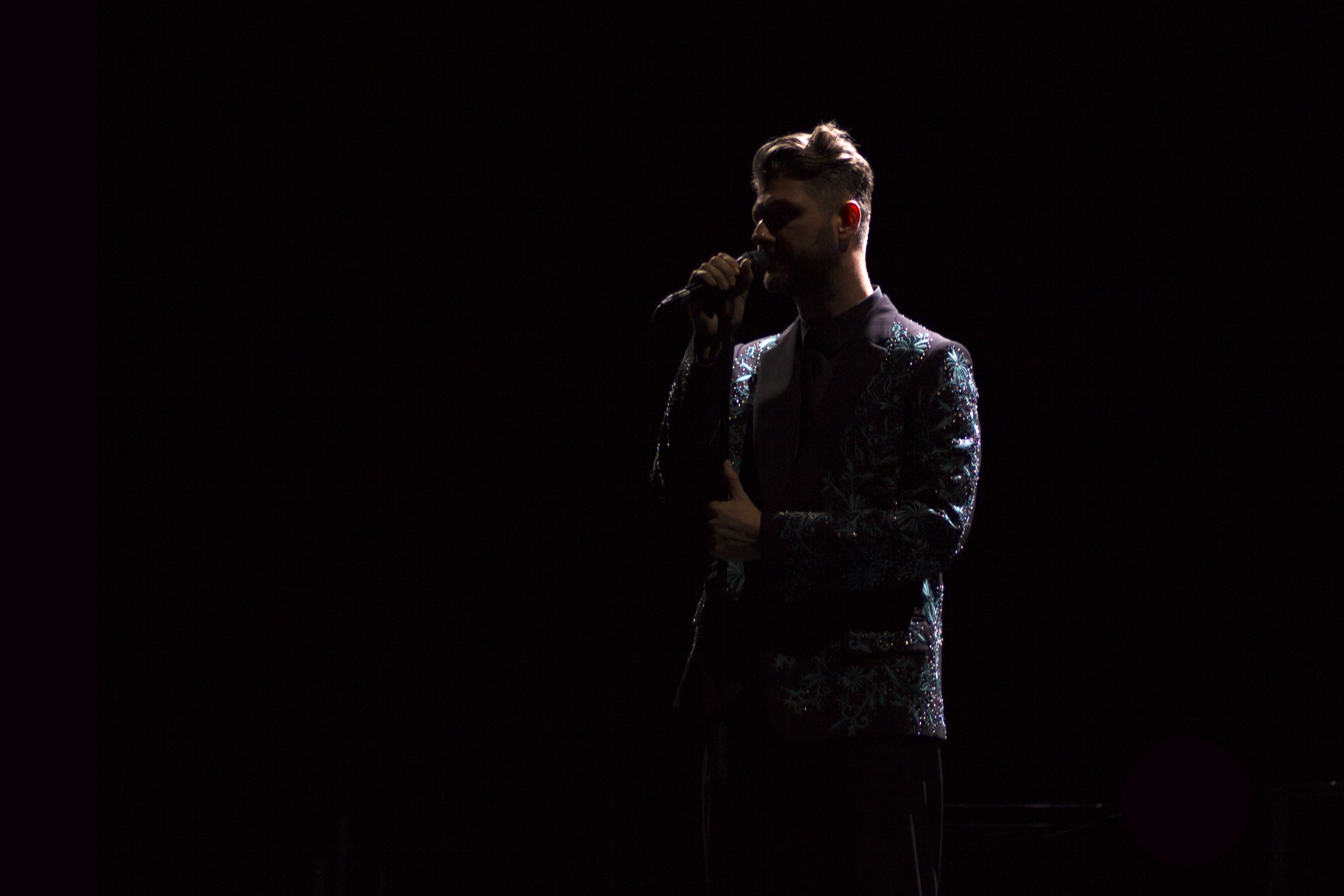 Pierre Lapointe commence fort, chantant dans un clair-obscur hypnotisant “Qu’il est honteux d’être humain”. Après cette première mise en bouche, le Québécois nous prévient, son spectacle n’est pas des plus enjoués. Et en effet, pendant plus d’une heure et demie, il va chanter ses peines d’amour, le désespoir de l’humain et la douleur des cœurs et des corps. Et pourtant l’artiste parvient avec l’aisance des meilleurs humoristes à faire rire la salle entière. L’ascenseur émotionnel est à son comble. Cœurs sensibles s’abstenir.