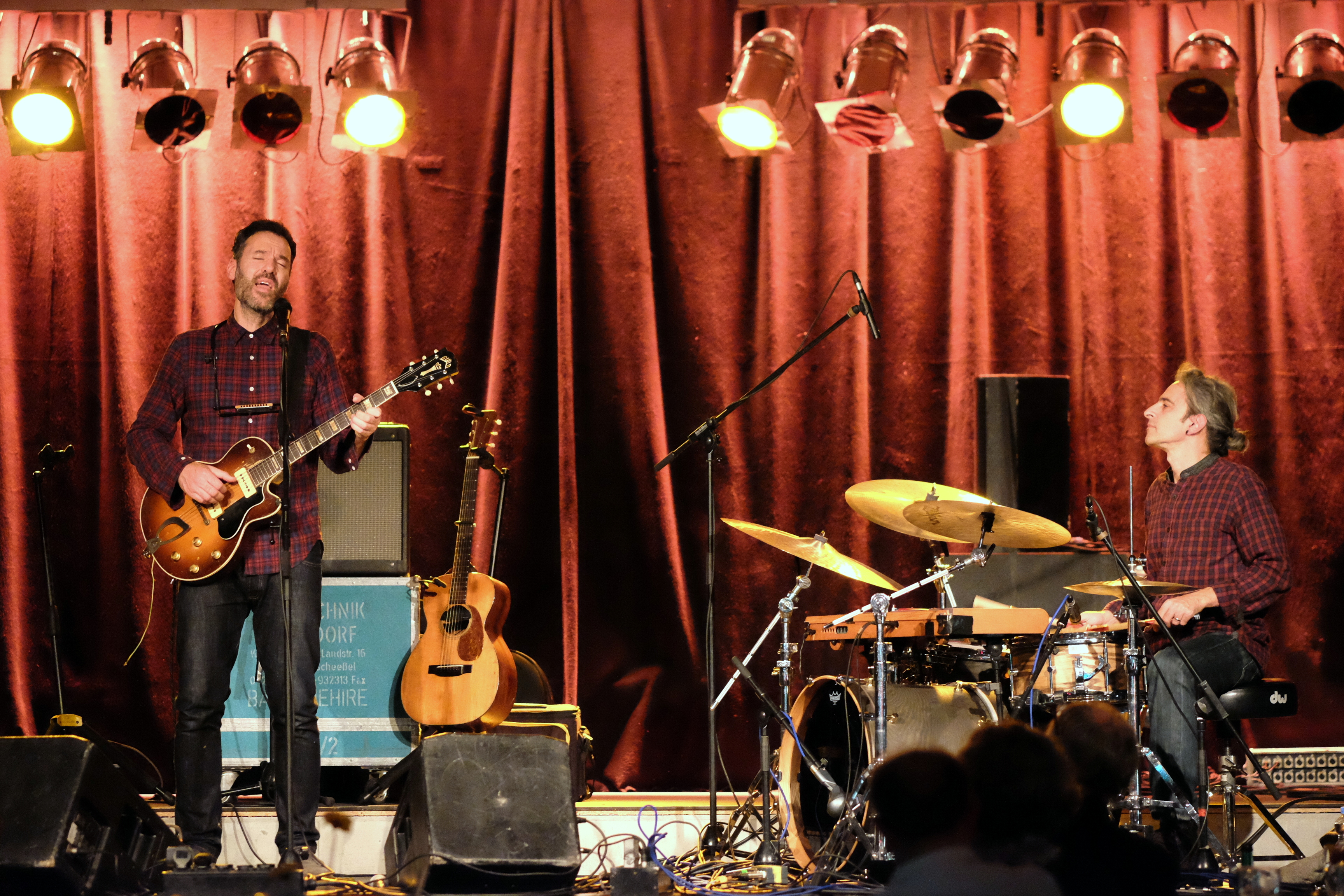 Le lieu avait de quoi surprendre. Le Substage, à Karlsruhe. Oui, l’Allemagne est un peu un eldorado pour les amateurs de belle musique folk, alors faire une heure de voiture n’est pas un problème, même un dimanche soir. Mais quand on arrive, la surprise est totale. Un escalier éclairé en néon bleu, un peu à la Hard Rock Café. Un intérieur de restaurant un peu industriel. Et puis une scène qu’on n’imagine pas vraiment dans un lieu pareil. Des tentures rouges au fond donnent le minimum requis pour ne pas se dire qu’on s’est trompé d’endroit. Et puis Piers Faccini et Simone Prattico sont en pleines balances. A priori, on est au bon endroit. Surprenant.