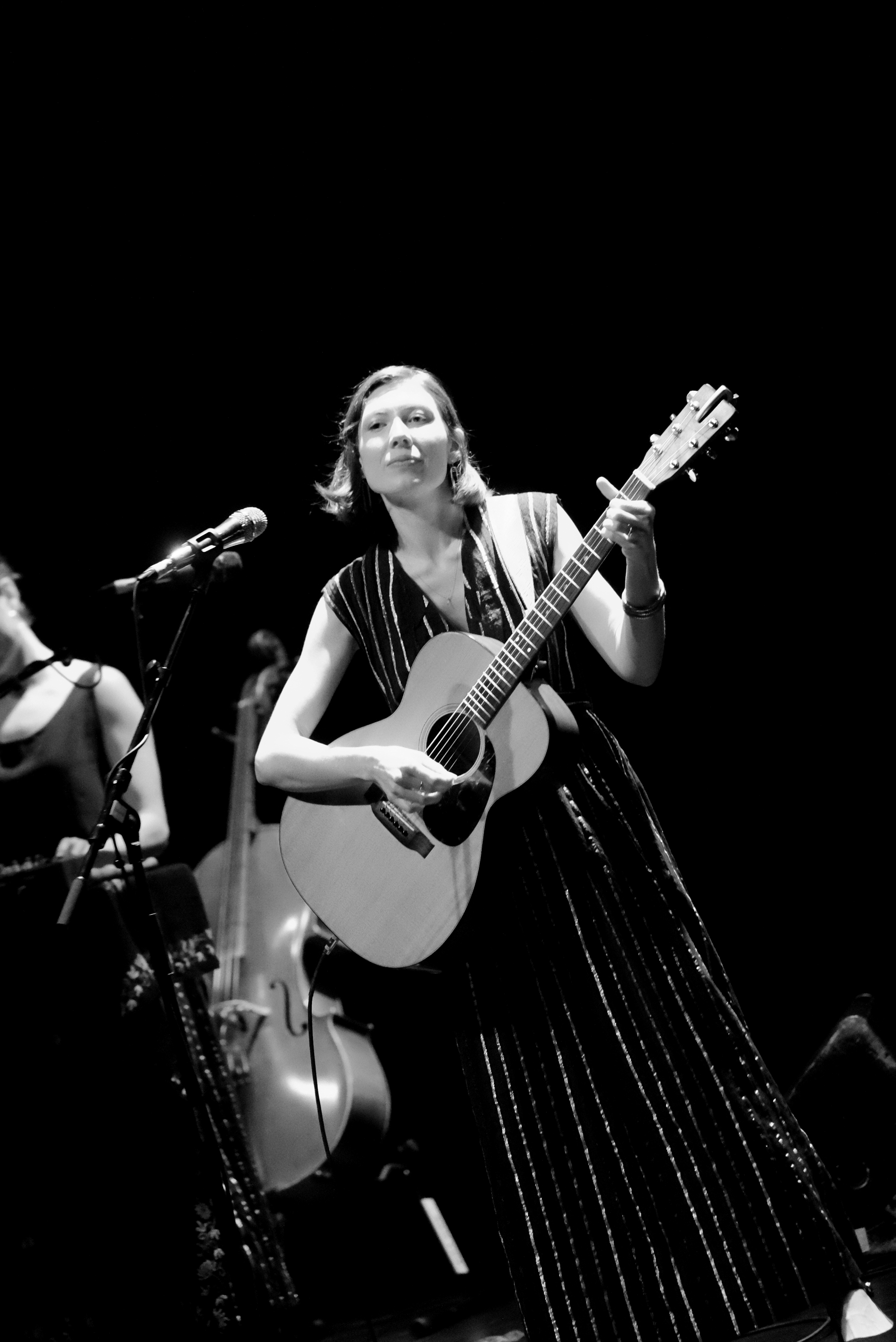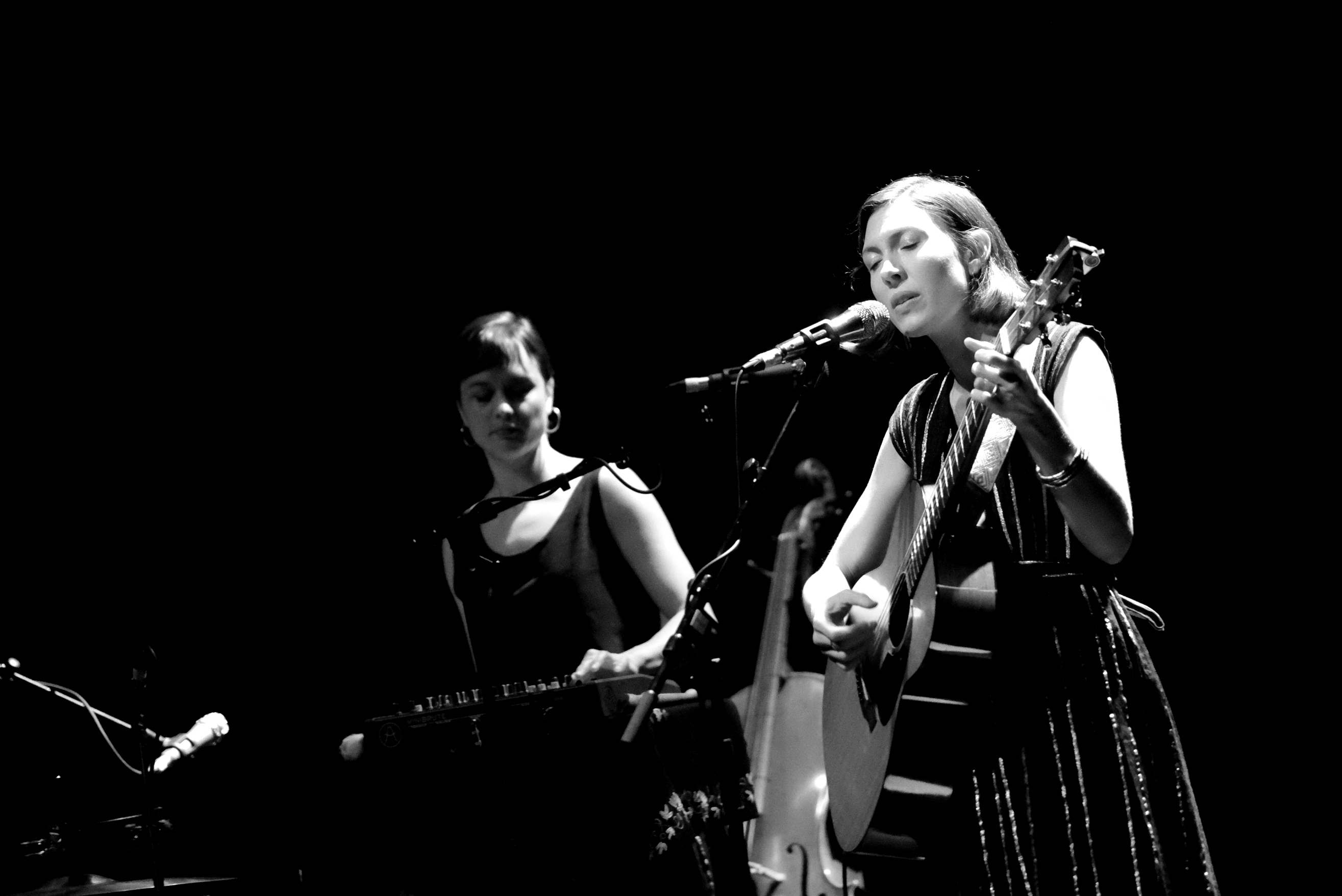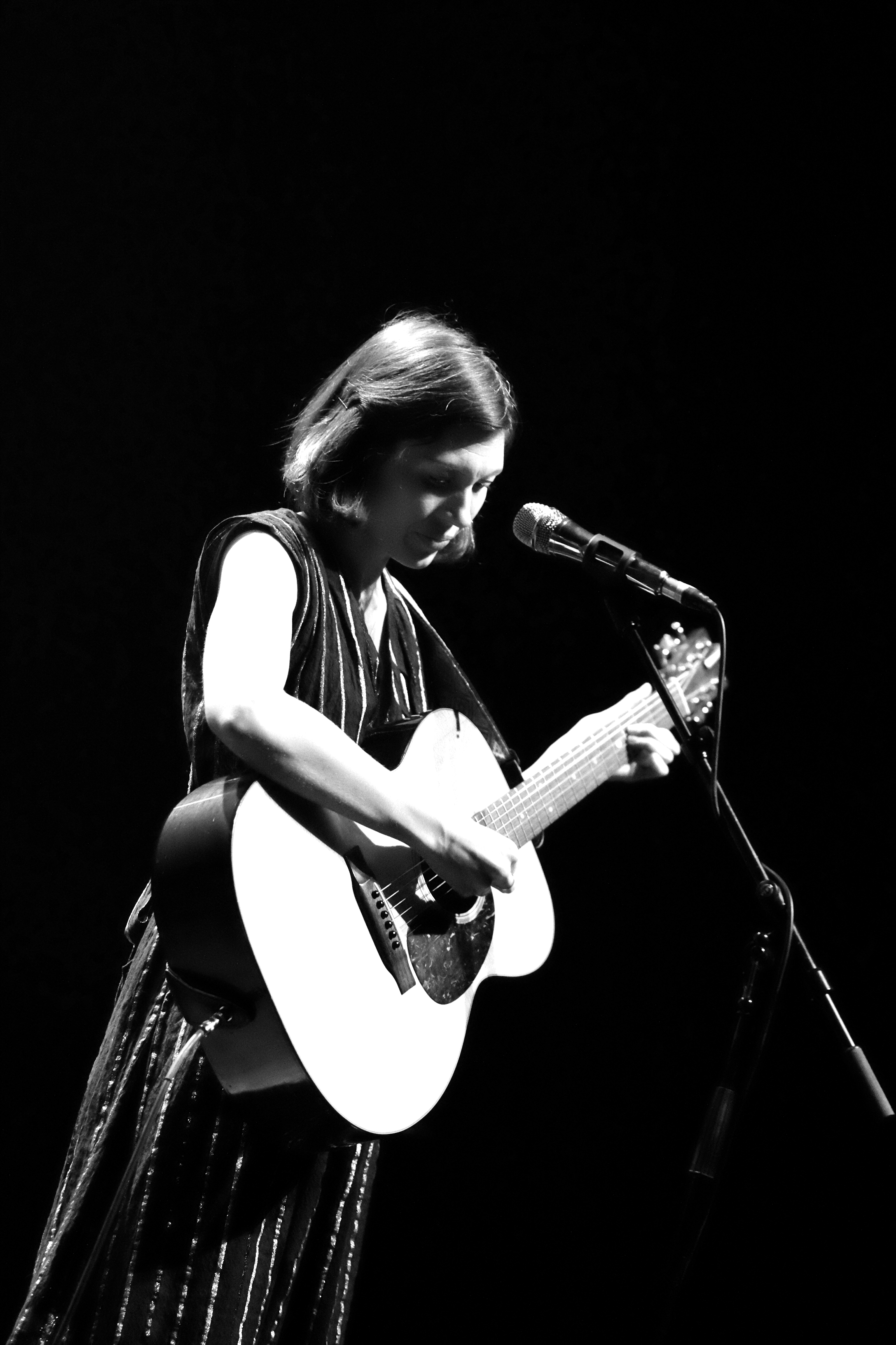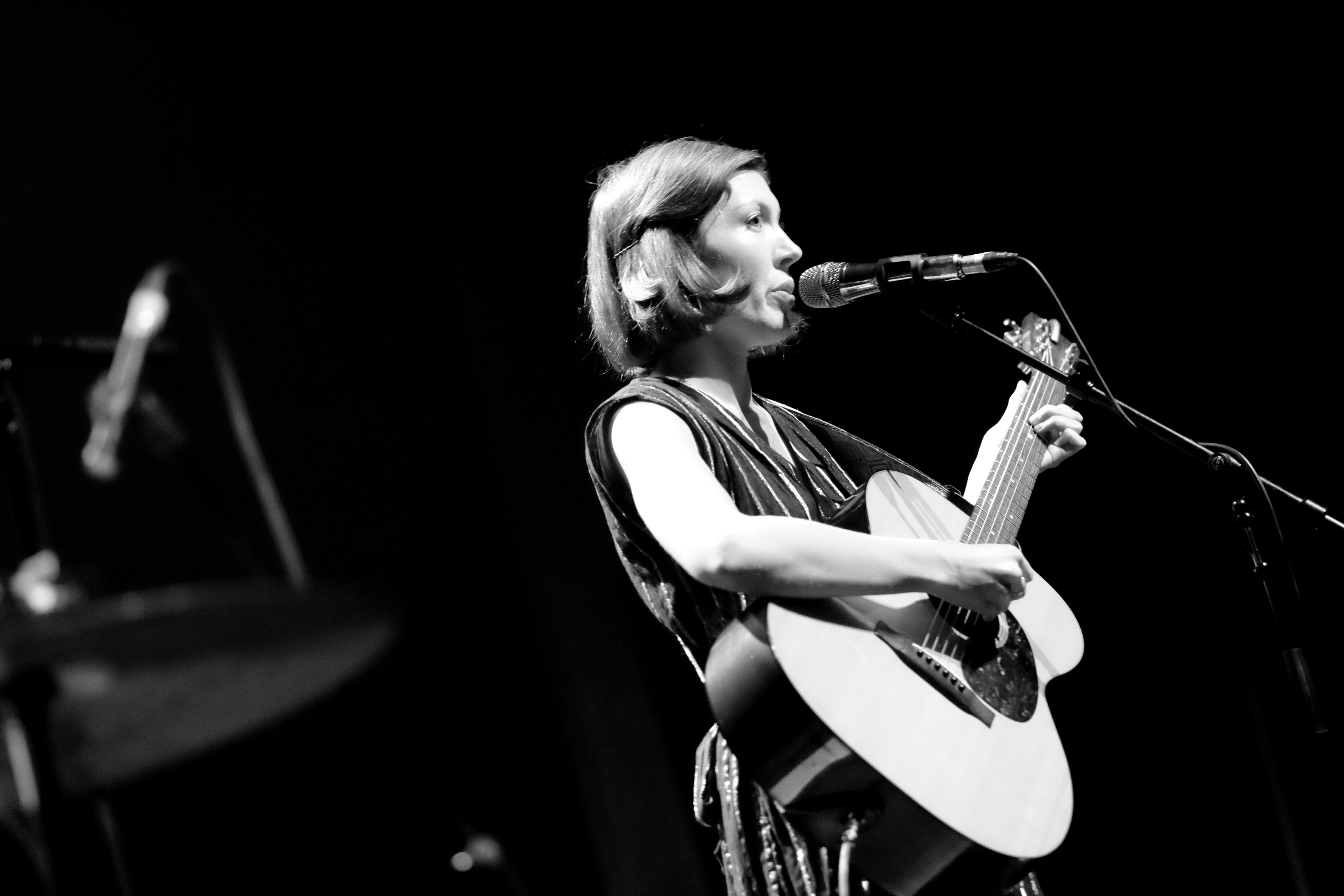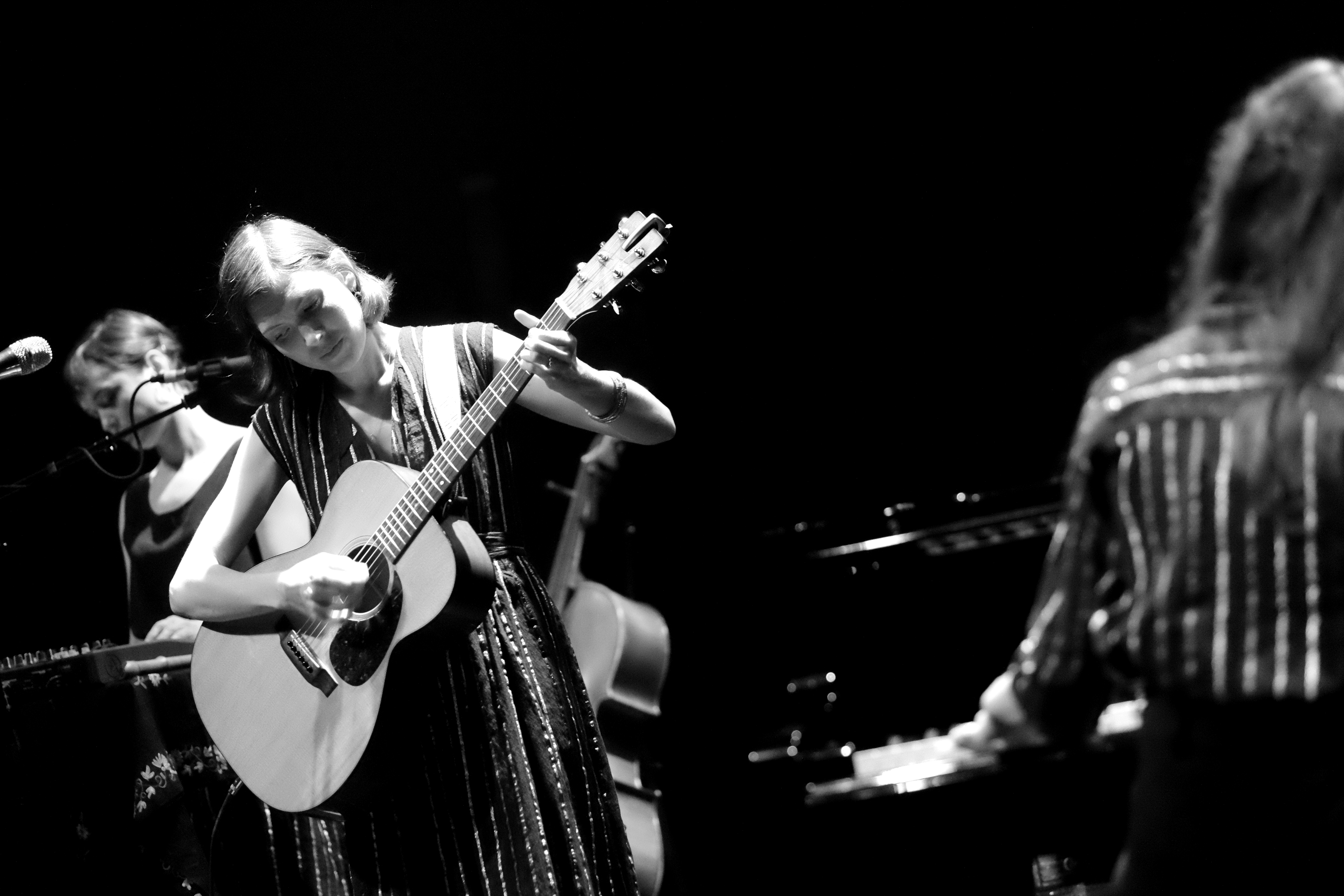 Quand La Laiterie faisait salle comble avec Eddy de Pretto, Alela Diane se produisait au PréO, une salle de spectacle occasionnellement salle de concert, à une dizaine de minutes de Strasbourg. Le choix de l’endroit est étonnant, pour celle qui peut rassembler des foules d’amoureux de folk avec sa seule guitare. Ce soir pourtant, elle n’était pas seule, accompagnée de deux musiciennes multi-instrumentistes venues habiller les titres de violoncelle, violon, flûte, batterie… Un girl band de haut vol.