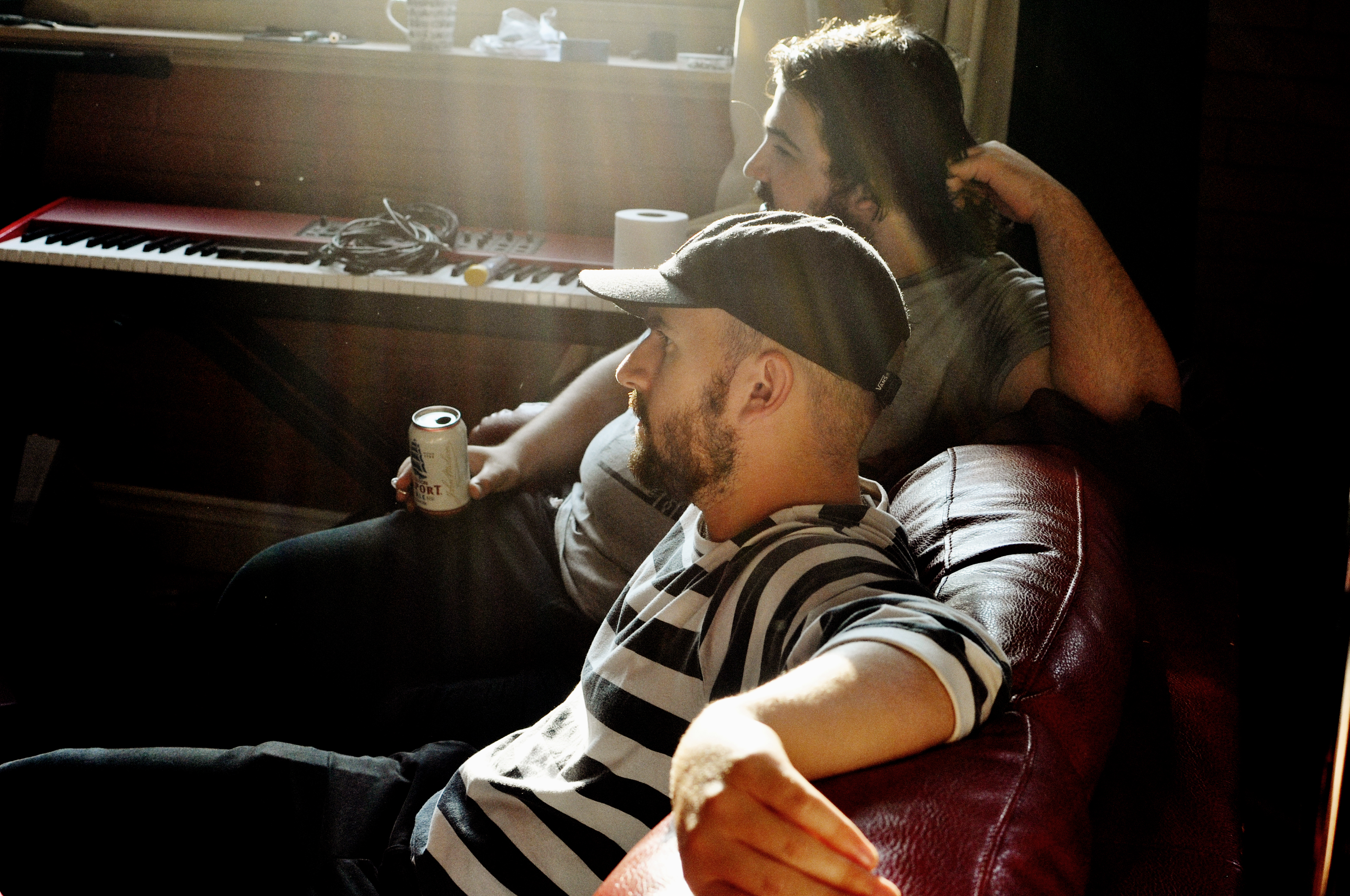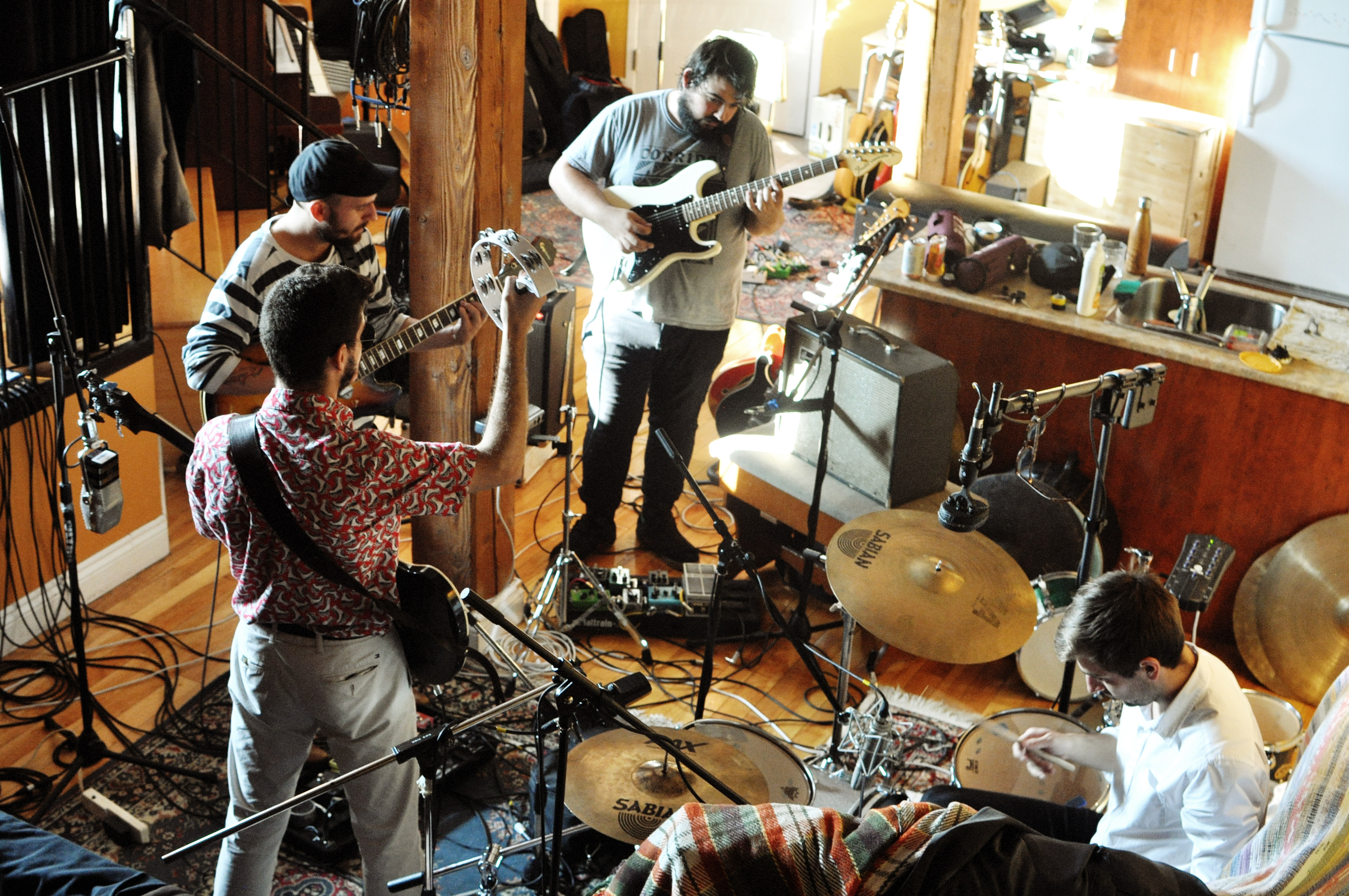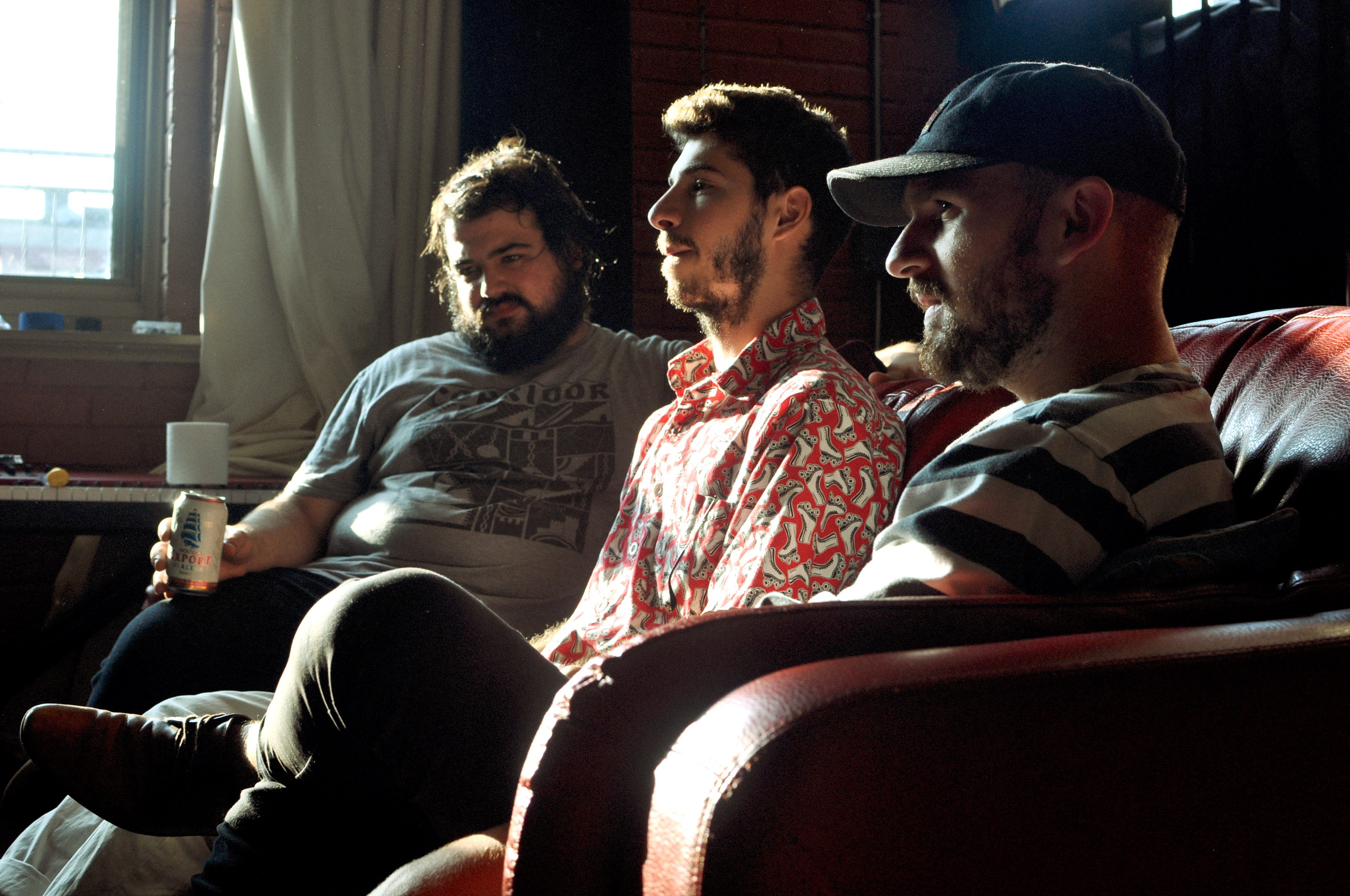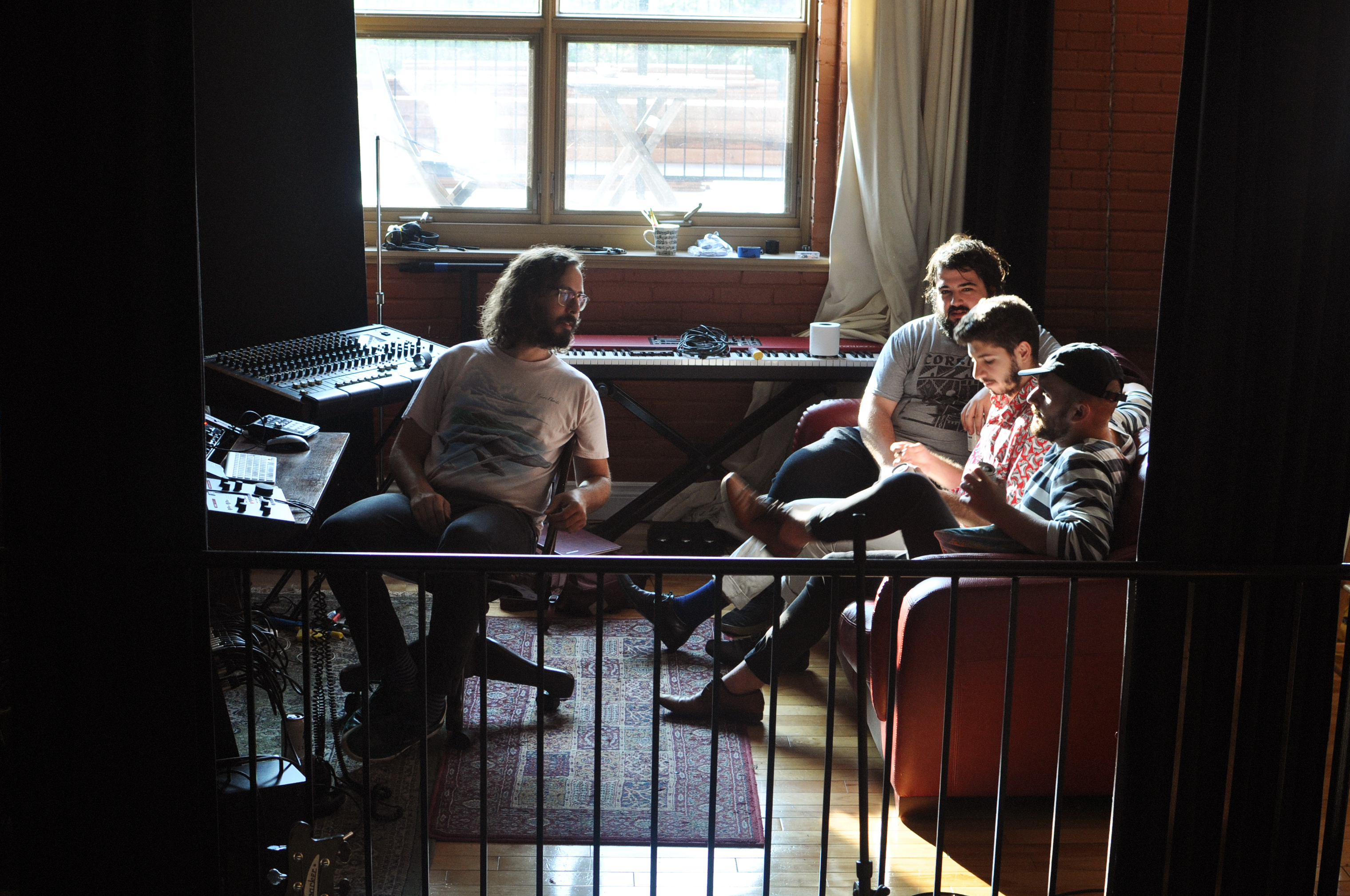 Rendez-vous est donné un samedi midi dans Hochelaga, le quartier de prédilection du groupe. Julien (guitare) vient nous ouvrir la porte blindée du lumineux et cosy Studio B. Il y a des instruments et des câbles partout. Des bières dans le frigidaire et du café à disposition. Les Velvet en fond sonore.