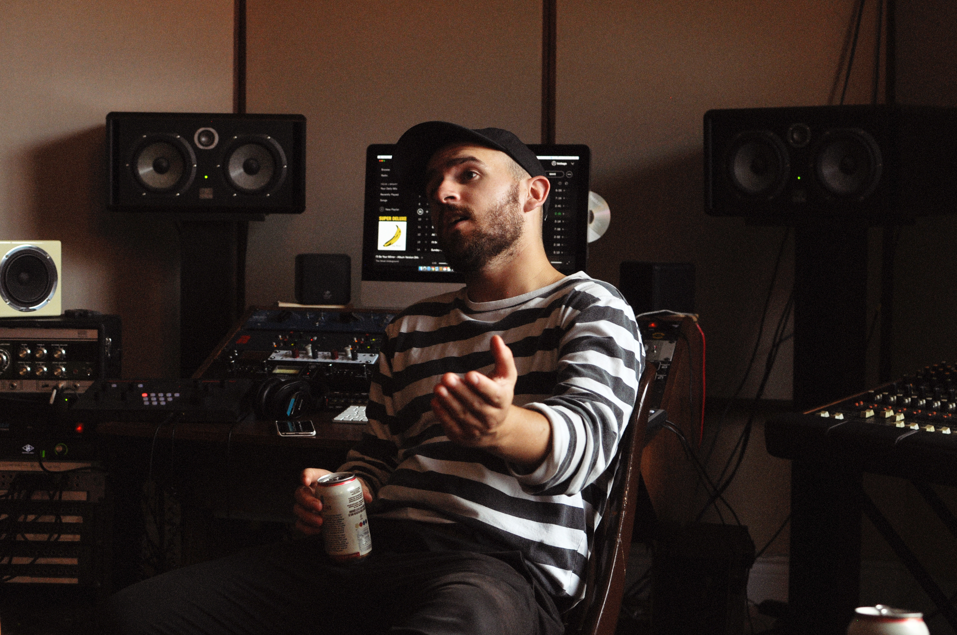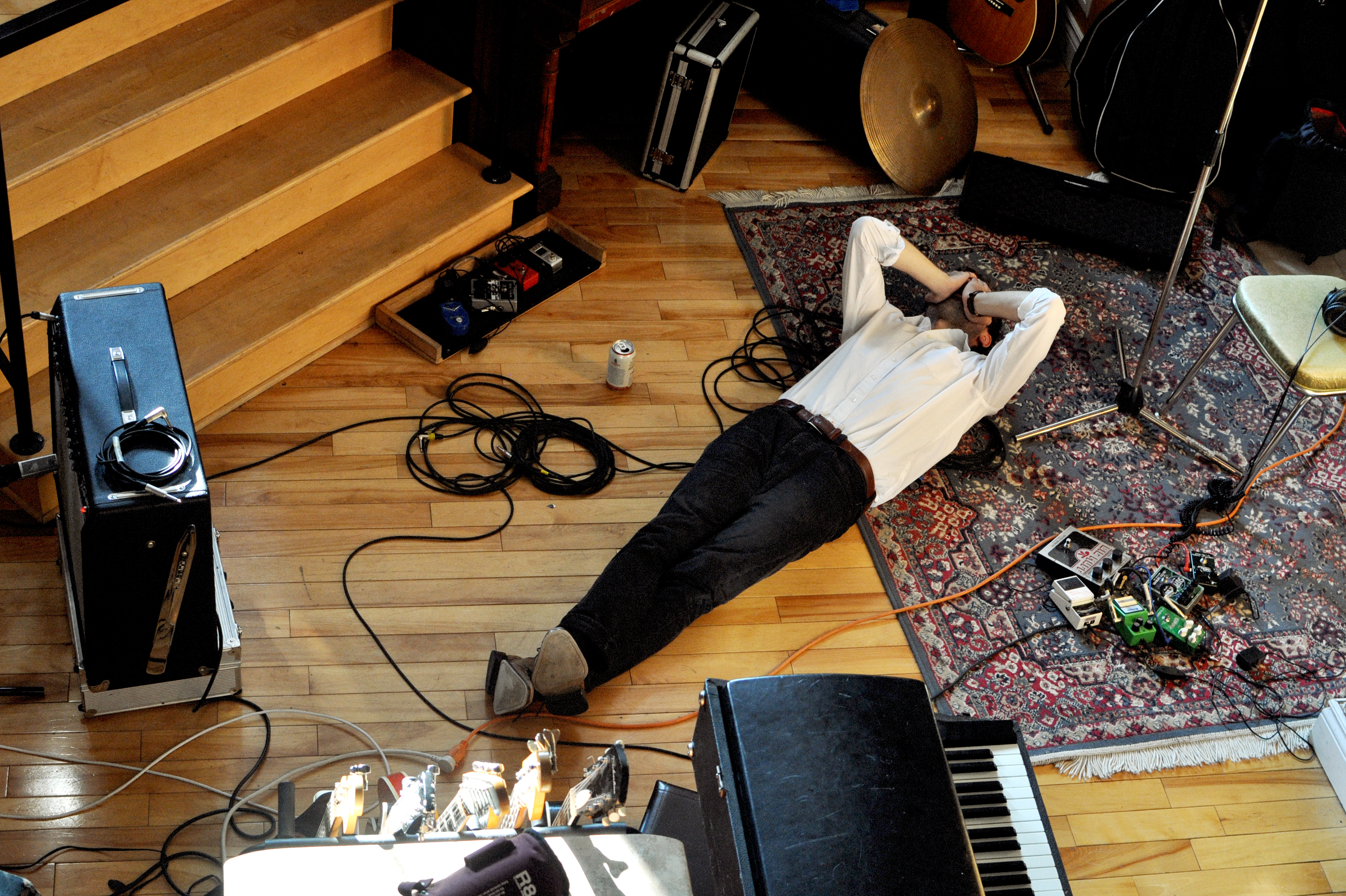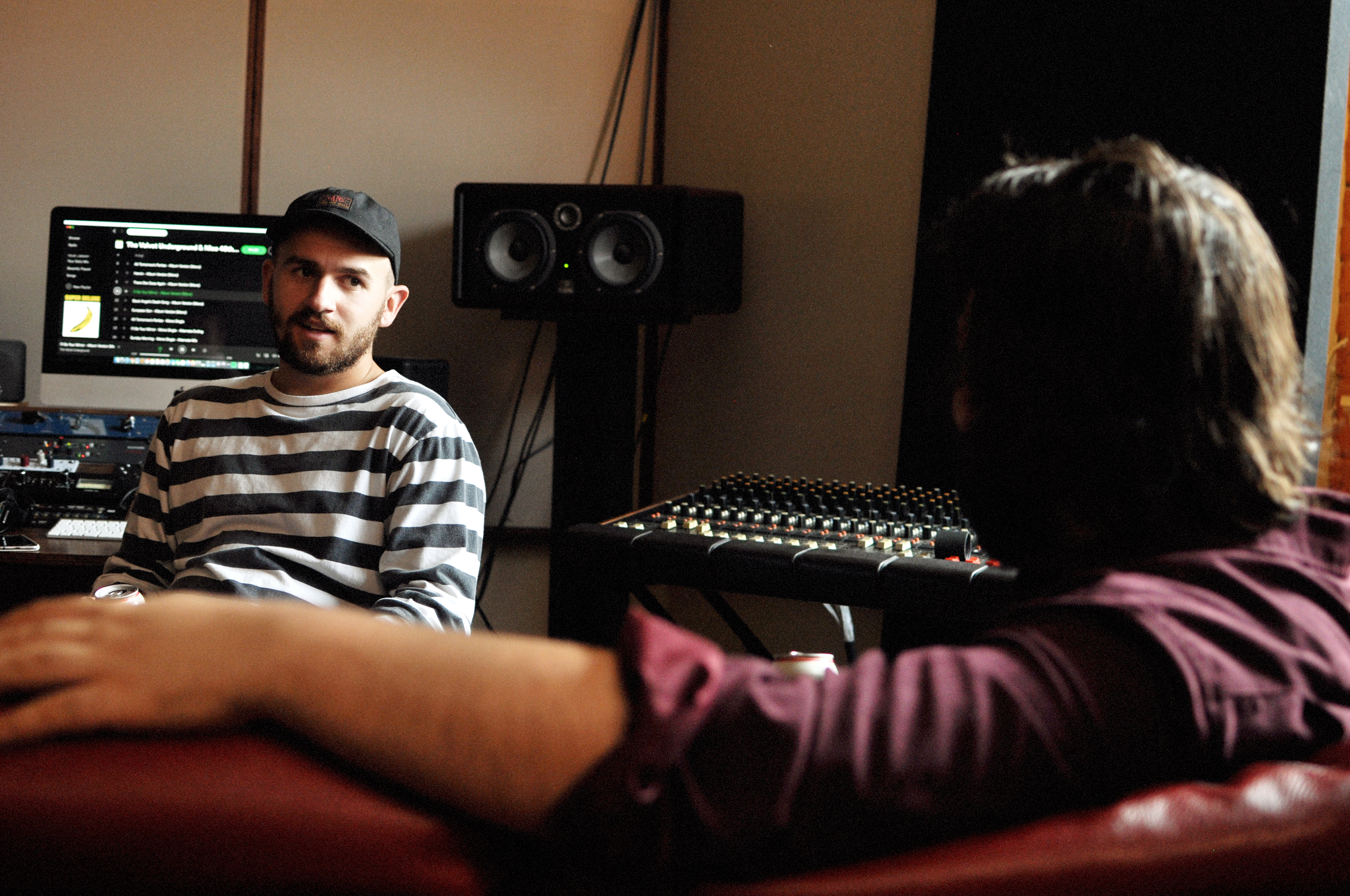 Rendez-vous est donné un samedi midi dans Hochelaga, le quartier de prédilection du groupe. Julien (guitare) vient nous ouvrir la porte blindée du lumineux et cosy Studio B. Il y a des instruments et des câbles partout. Des bières dans le frigidaire et du café à disposition. Les Velvet en fond sonore.