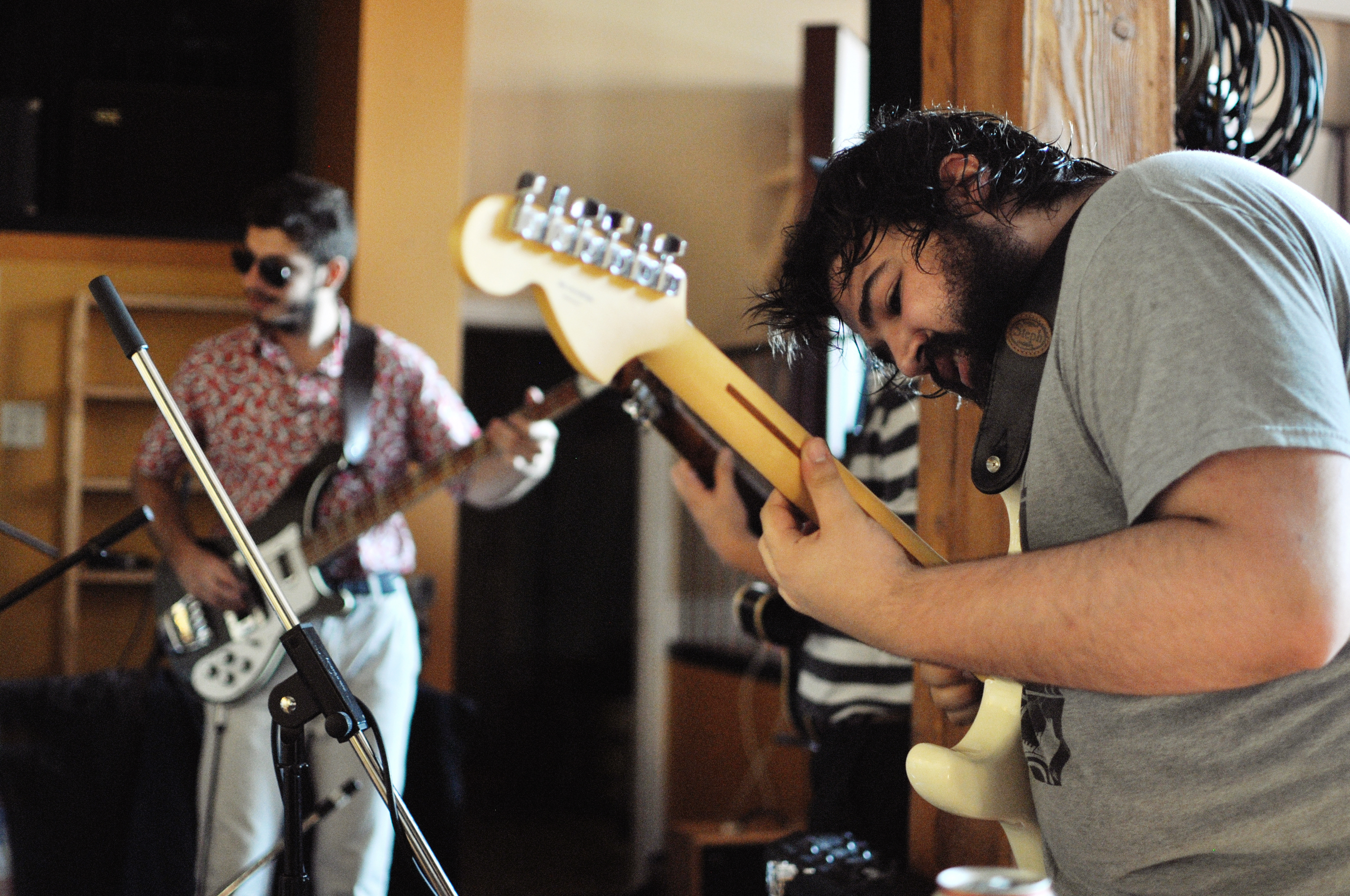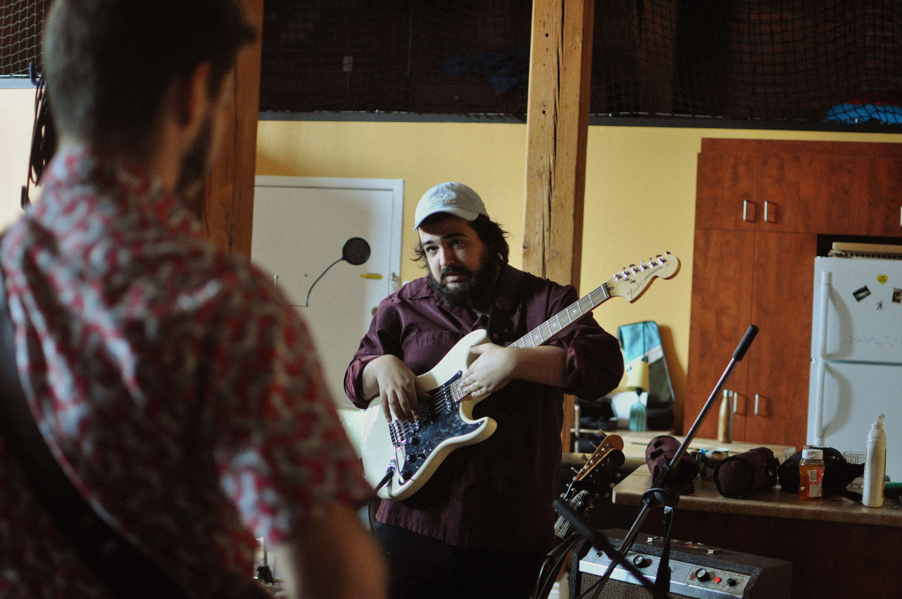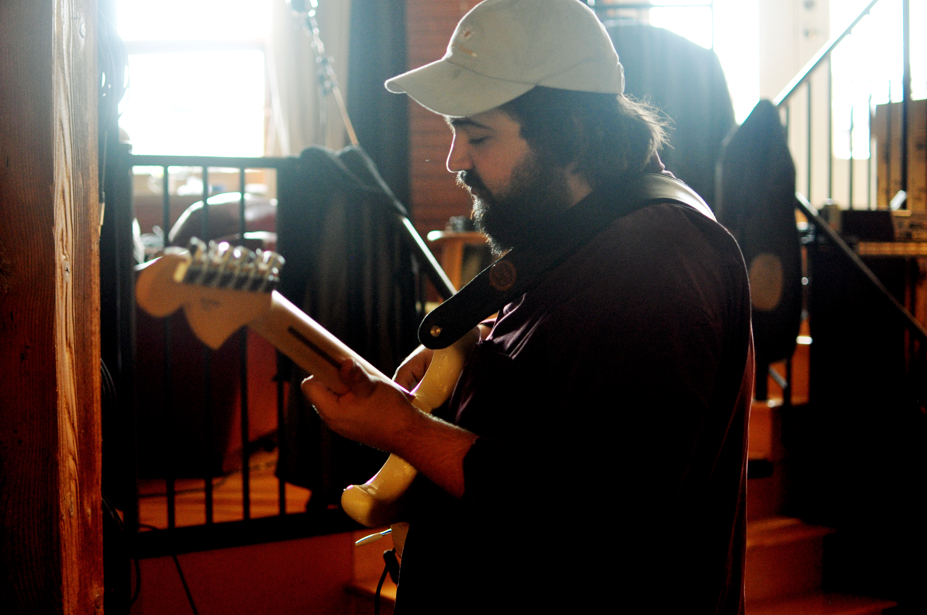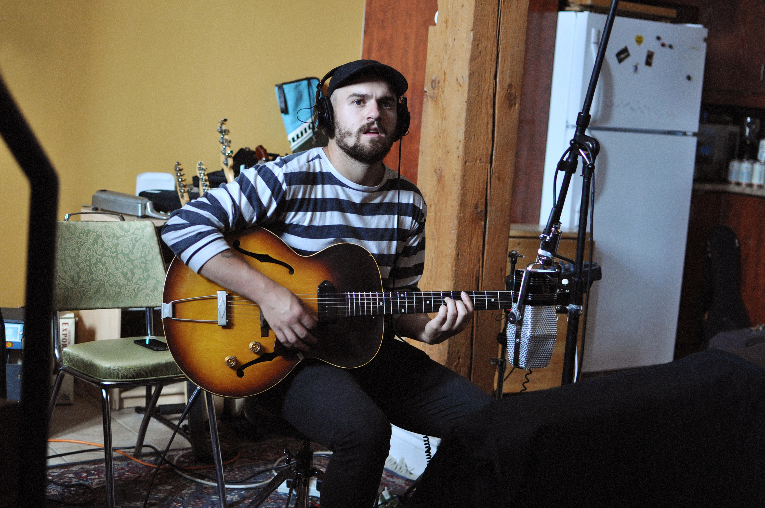 Rendez-vous est donné un samedi midi dans Hochelaga, le quartier de prédilection du groupe. Julien (guitare) vient nous ouvrir la porte blindée du lumineux et cosy Studio B. Il y a des instruments et des câbles partout. Des bières dans le frigidaire et du café à disposition. Les Velvet en fond sonore.