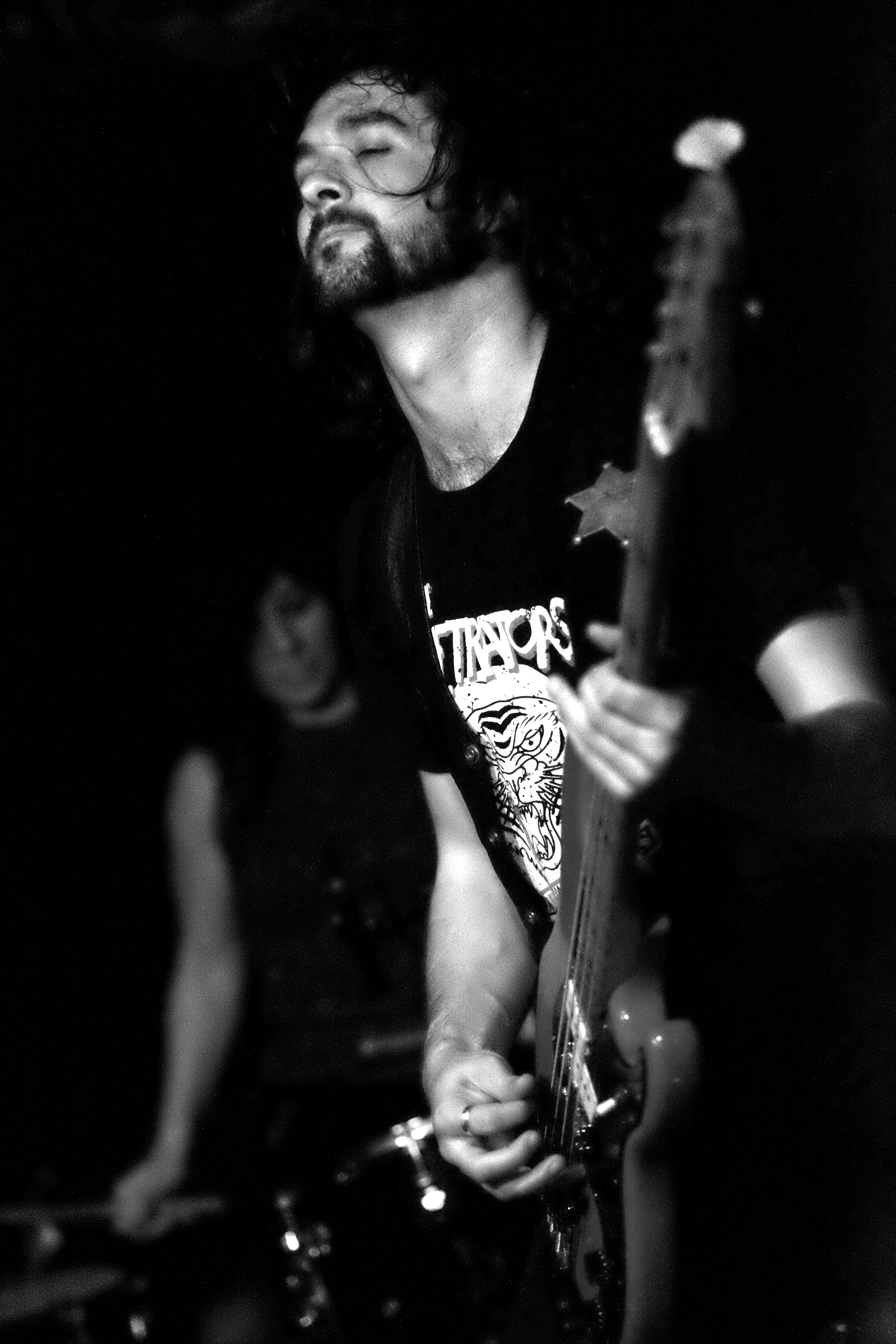 Je n’ai pas non plus le matériel photographique adapté à la situation pour te résumer tout cela en photo. Quoique… D’une certaine manière, les photos dégueulasses que je vais te mettre ici ont un petit quelque chose de brut, d’instantané, d’incontrôlé qui correspond finalement bien à l’ambiance d’un concert de The Schizophonics, sans t’en révéler totalement l’ampleur.