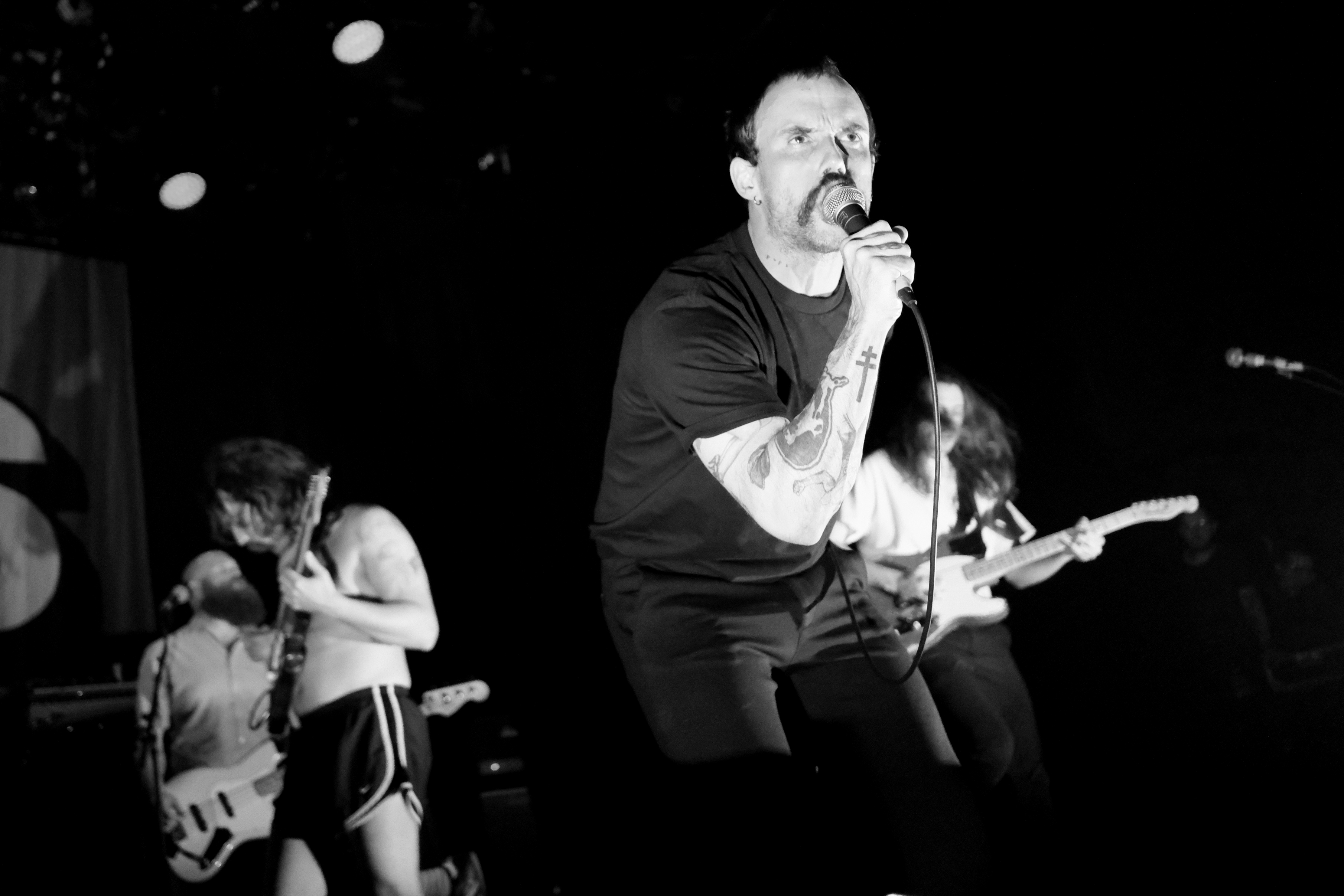 Si la salle est plutôt calme au départ, le charisme et la folie du leader Mez va vite séduire tout le monde et faire bouger les premiers rangs. Il arpente la scène, s’invite dans le pit, le tout avec une classe toute british et un piquant bienvenu. Un piquant qu’on retrouve partout dans les paroles (“Jenny lives of glycerine paste because she says it’s low in calories, likes the taste” dans “Rare Boots”), comme dans les (forcément engagées) prises de position, Brexit et cas américain en tête (cf. le titre “Euromillions”). Bref, le retour de la vague punk/rock anglaise est décidément prolifique en très bons groupes live.
