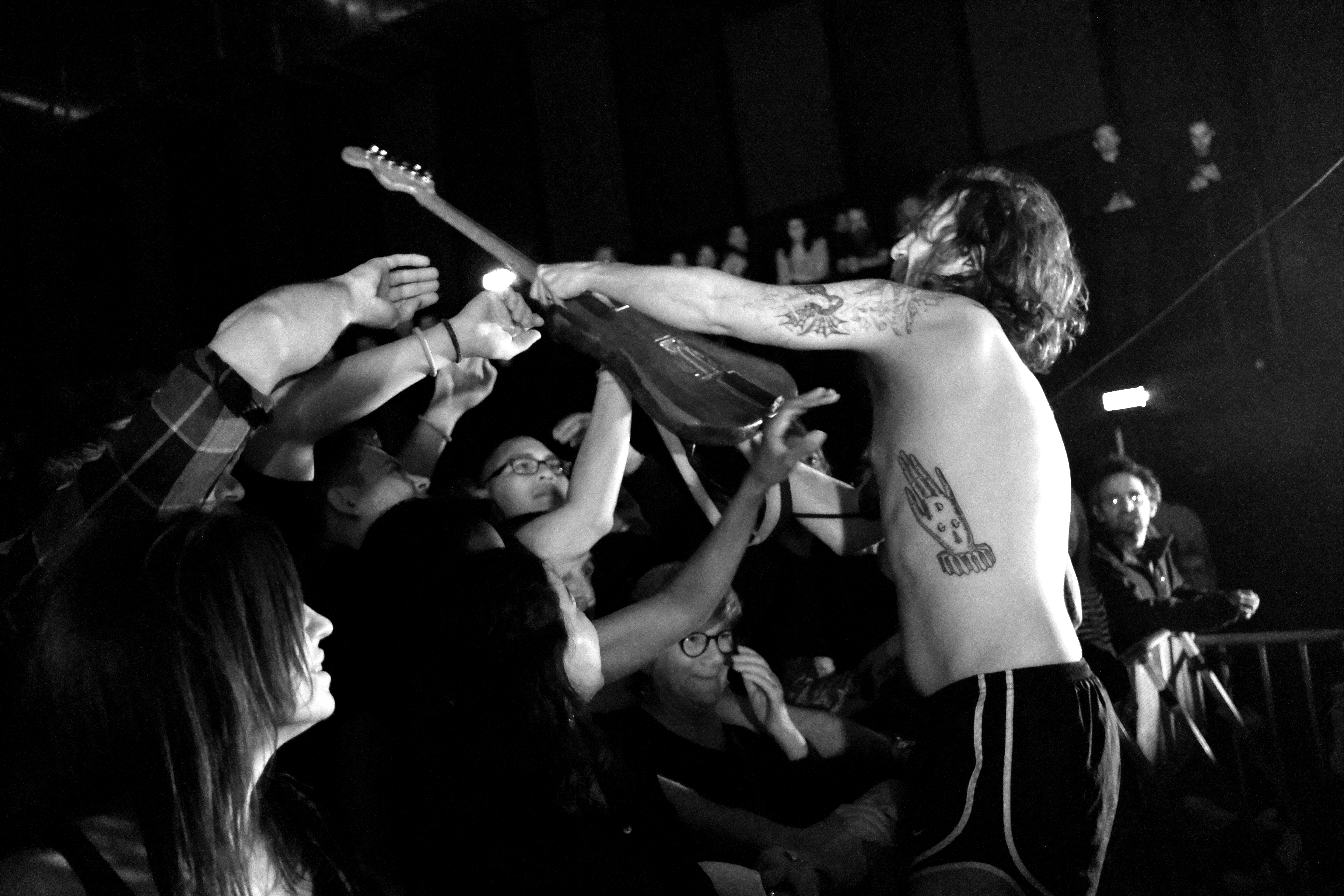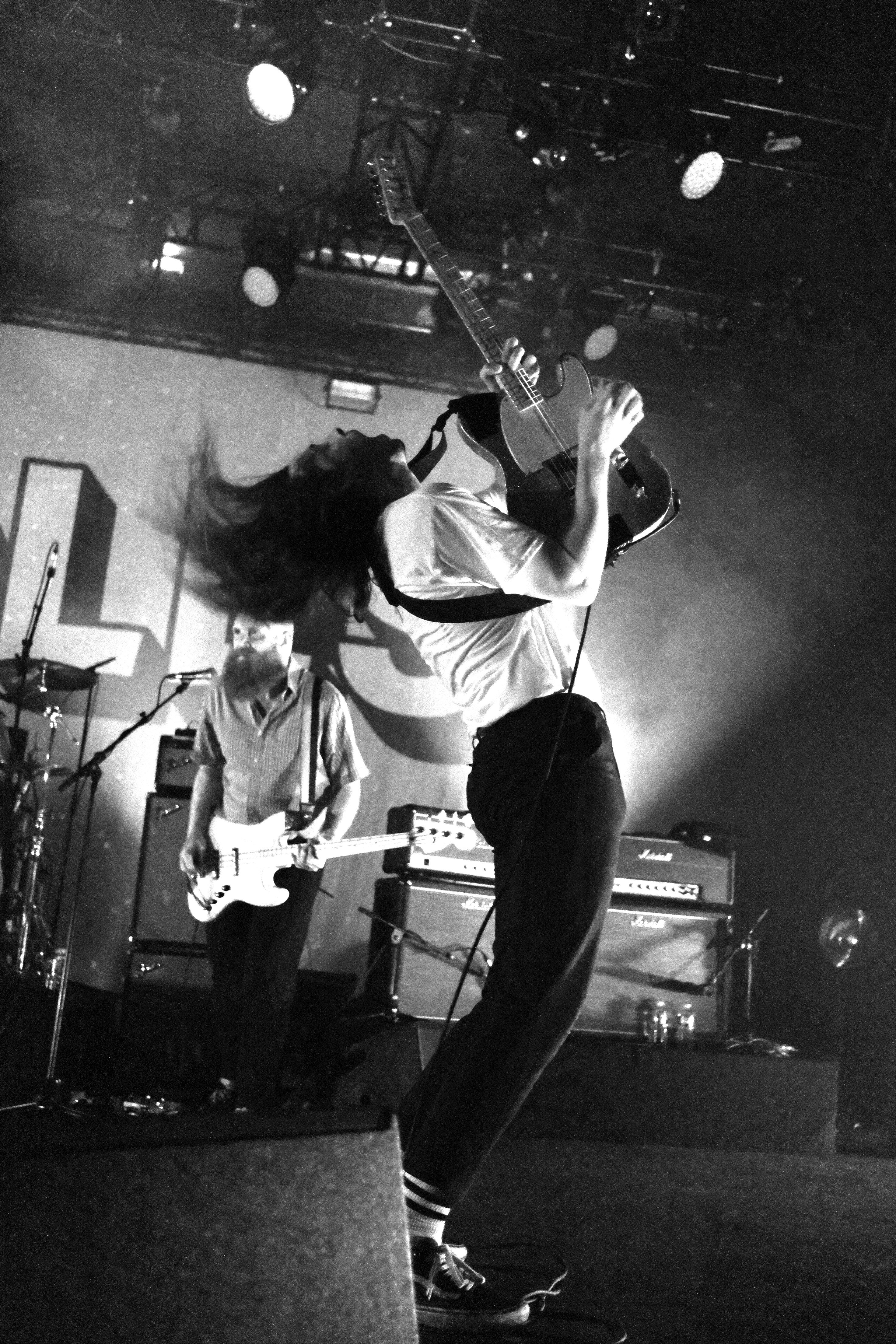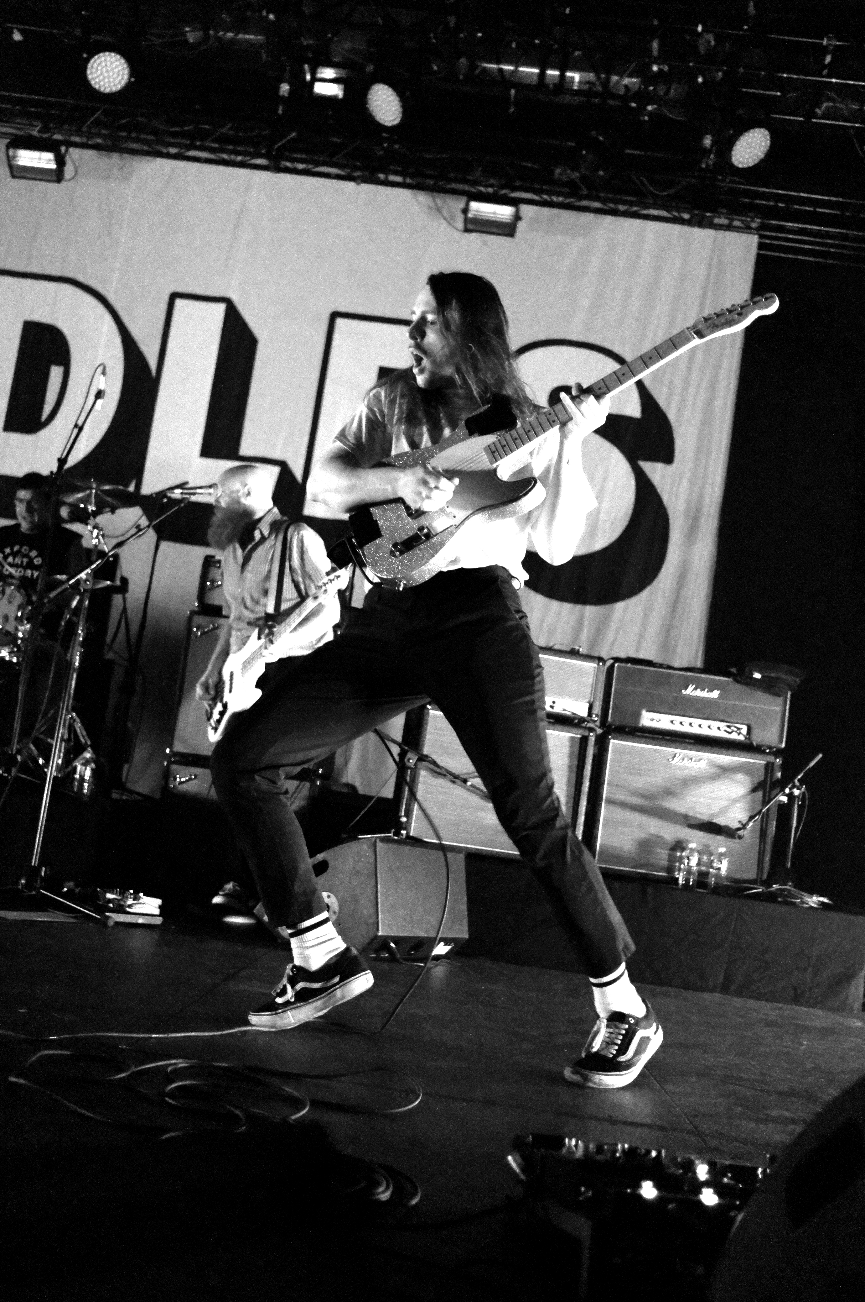 Impossible aussi d’être en retard, puisque la première partie est LIFE. Le groupe anglais, débarqué de Hull (c’est fou ce qu’on améliore notre géographie quand on aime la musique), continue de présenter sur scène son premier album, sorti en mai 2017 déjà, et intitulé Popular Music. Dès les premières secondes, on comprendra vite toute l’ironie derrière ce titre. On verse plutôt dans le rock indé tendance punk pour ce quatuor électrique et complètement survolté.