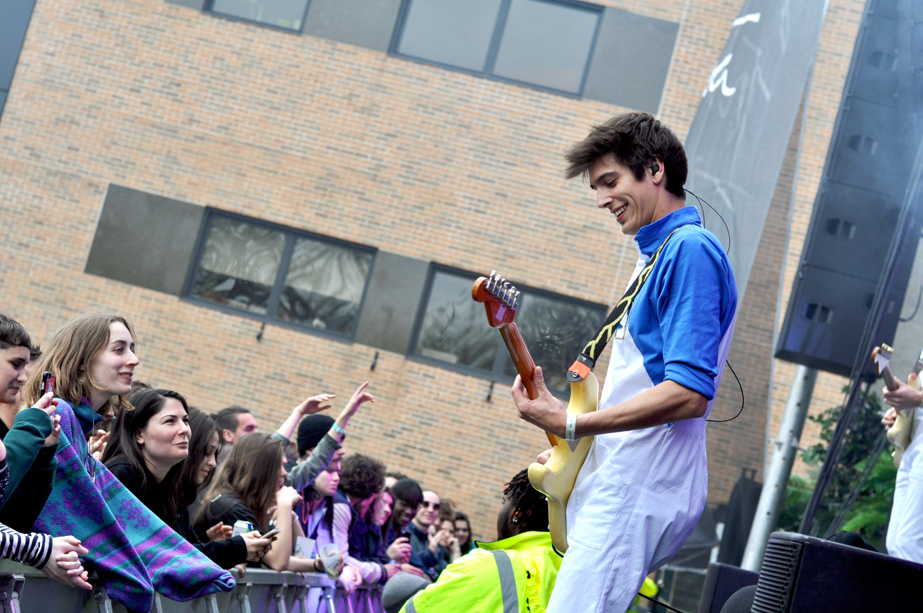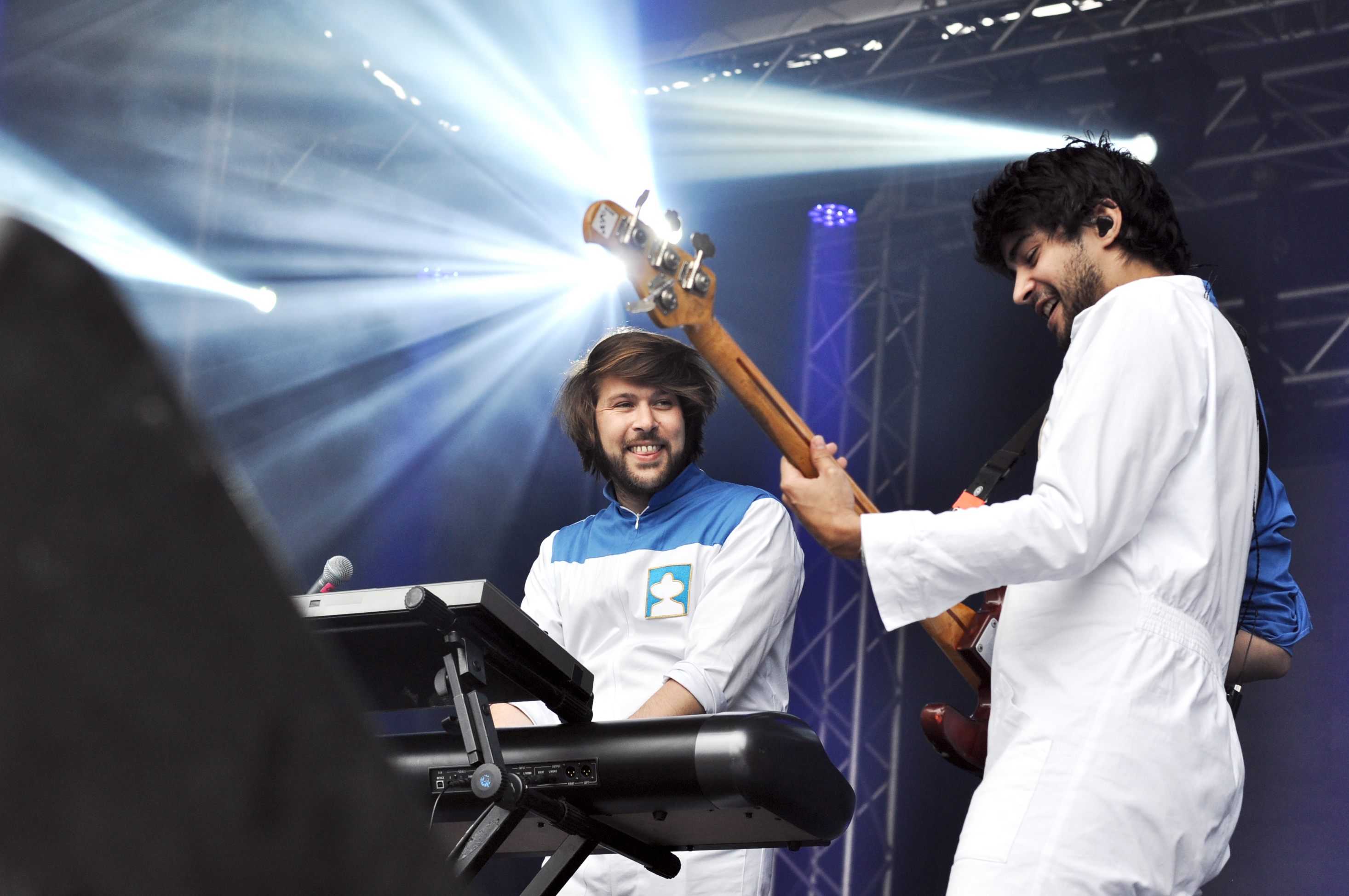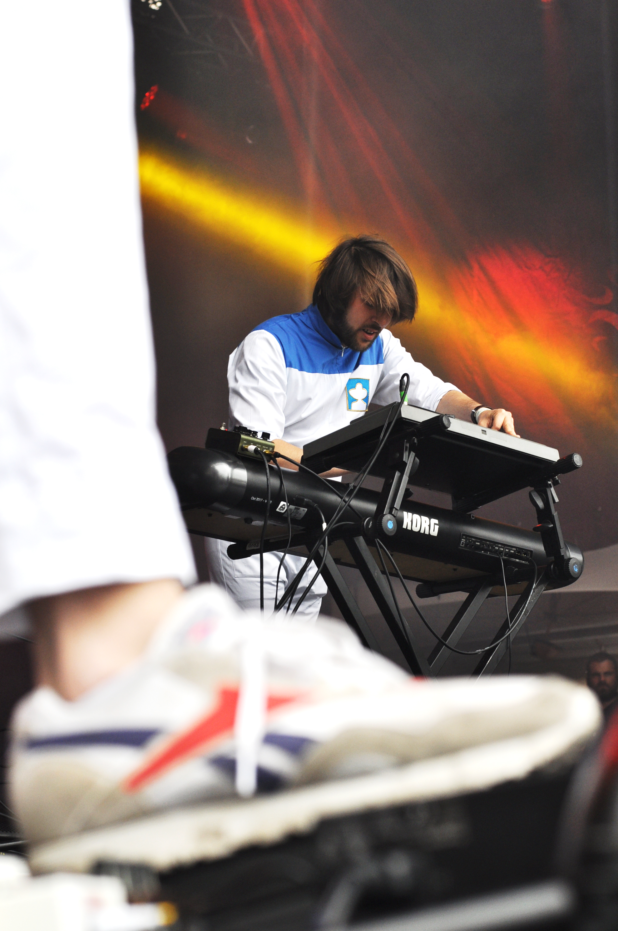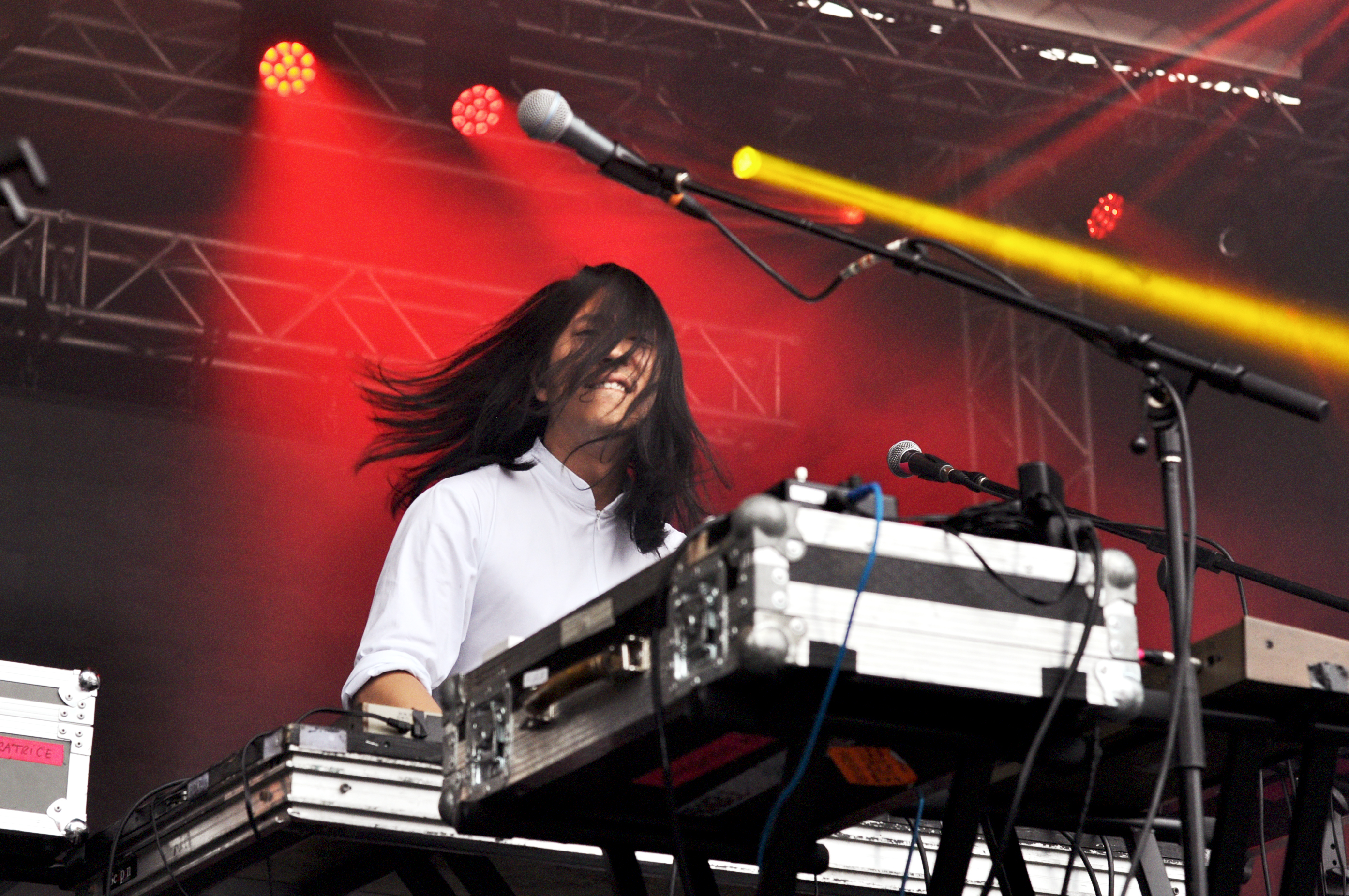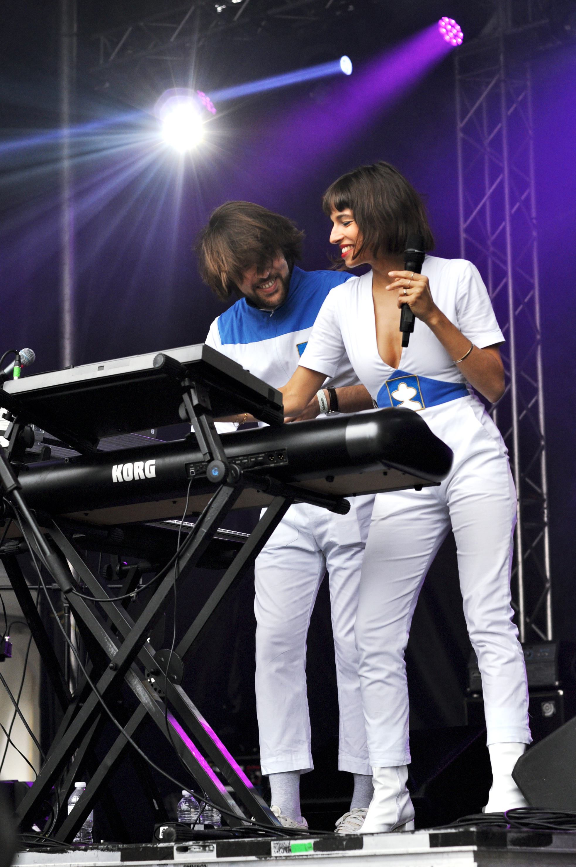 On débarque de l’autobus pour le concert de L’Impératrice de retour au Québec après leur concert avec Feu! Chatterton l’été dernier aux Francos de Montréal. La formation parisienne est en forme, malgré un emploi du temps bien chargé. Ils livrent un set dansant et toujours aussi soigné, dans les enchaînements, les solos et les réinterprétations des titres de leur premier album Matahari. Parés de leurs combinaisons blanche et bleu, les six membres du groupe prennent leur pied à jouer ensemble, et ça ne se voit pas qu’un peu. Que de mines réjouies et sourires communicatifs ! Un concert de l’Impératrice c’est du bonheur à l’état pur, on en voudrait notre dose tous les jours.