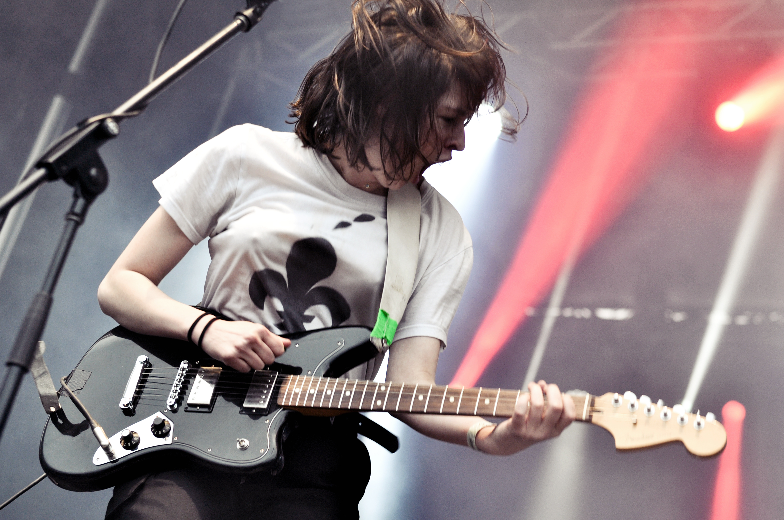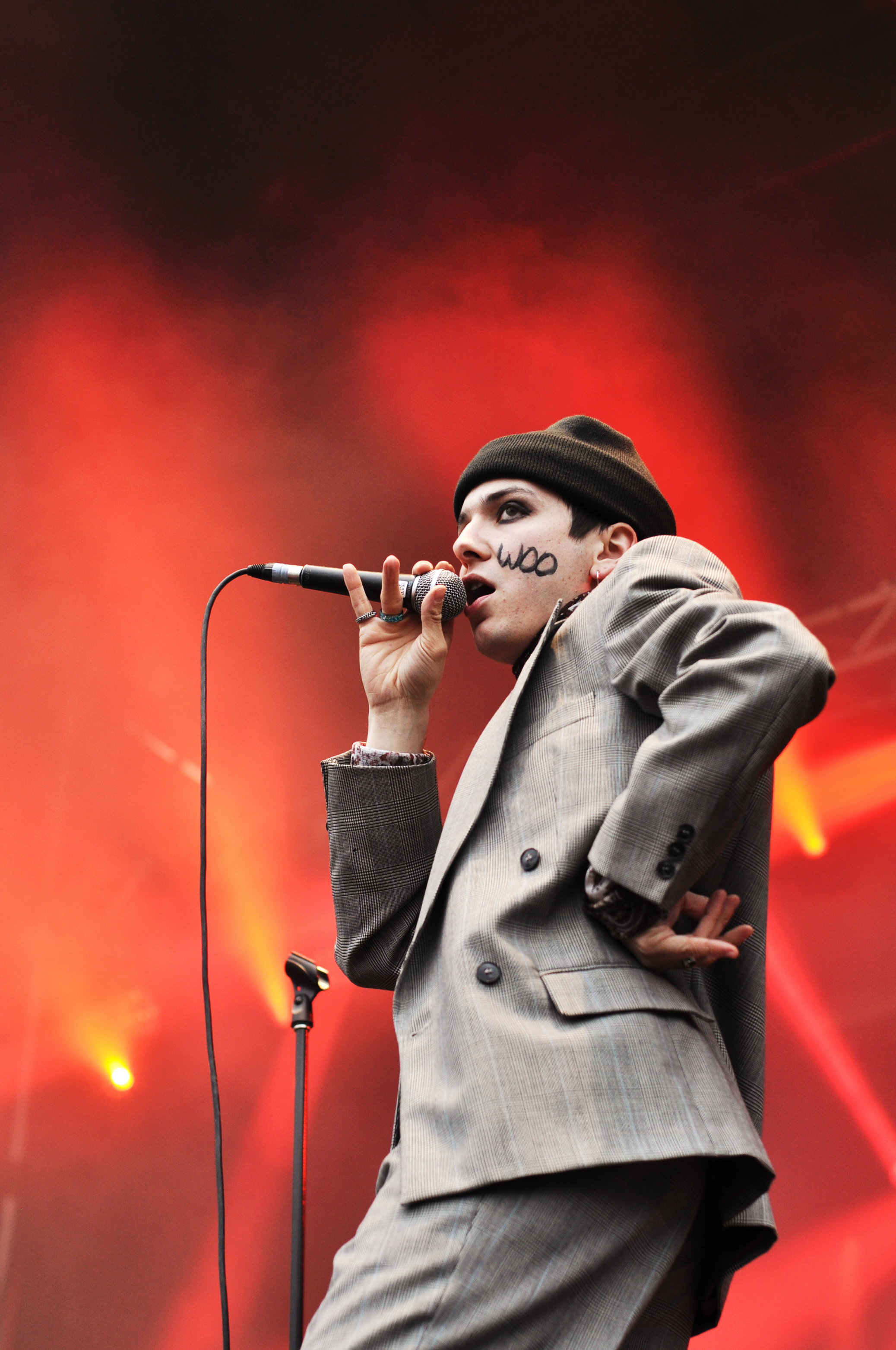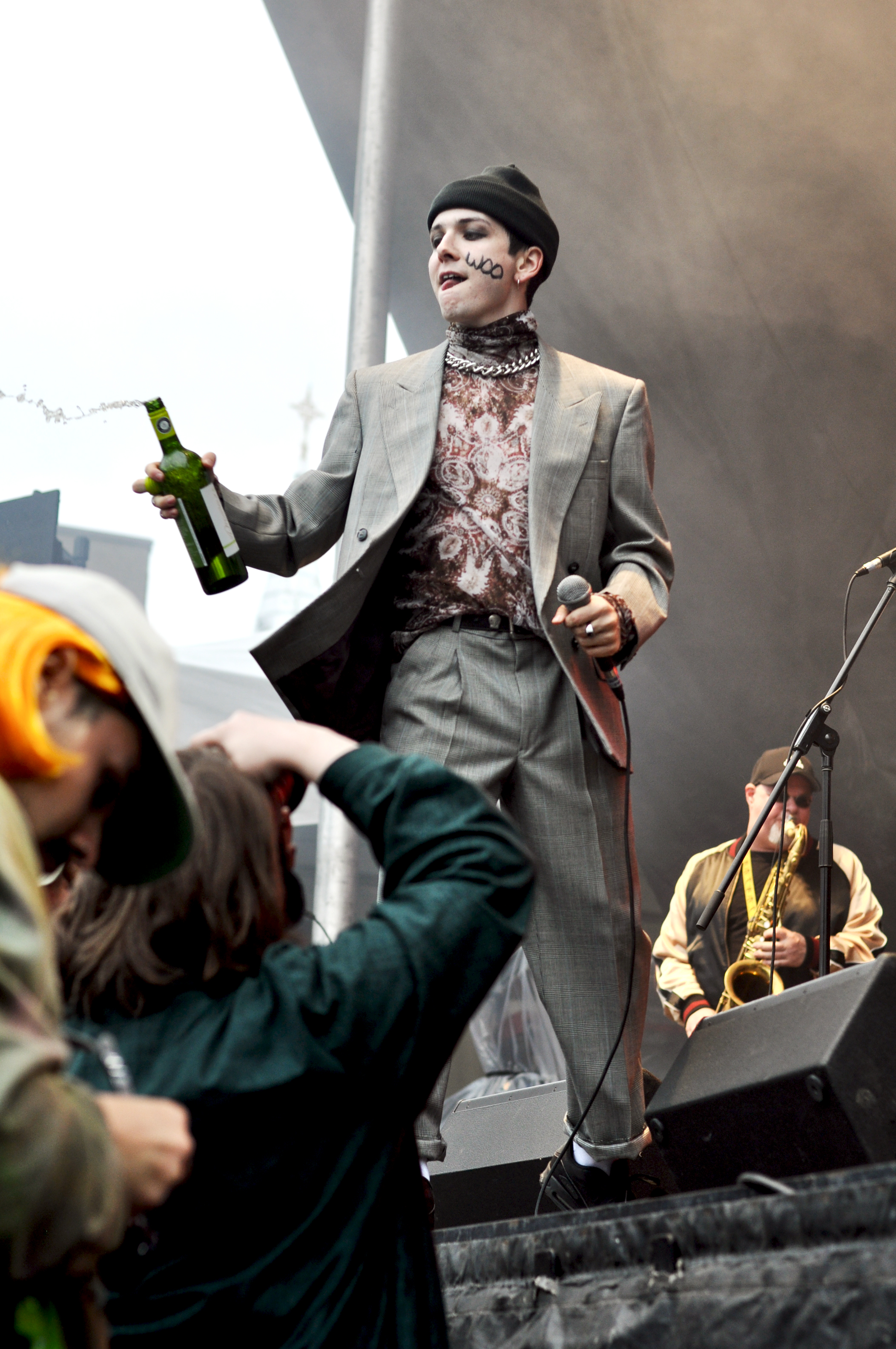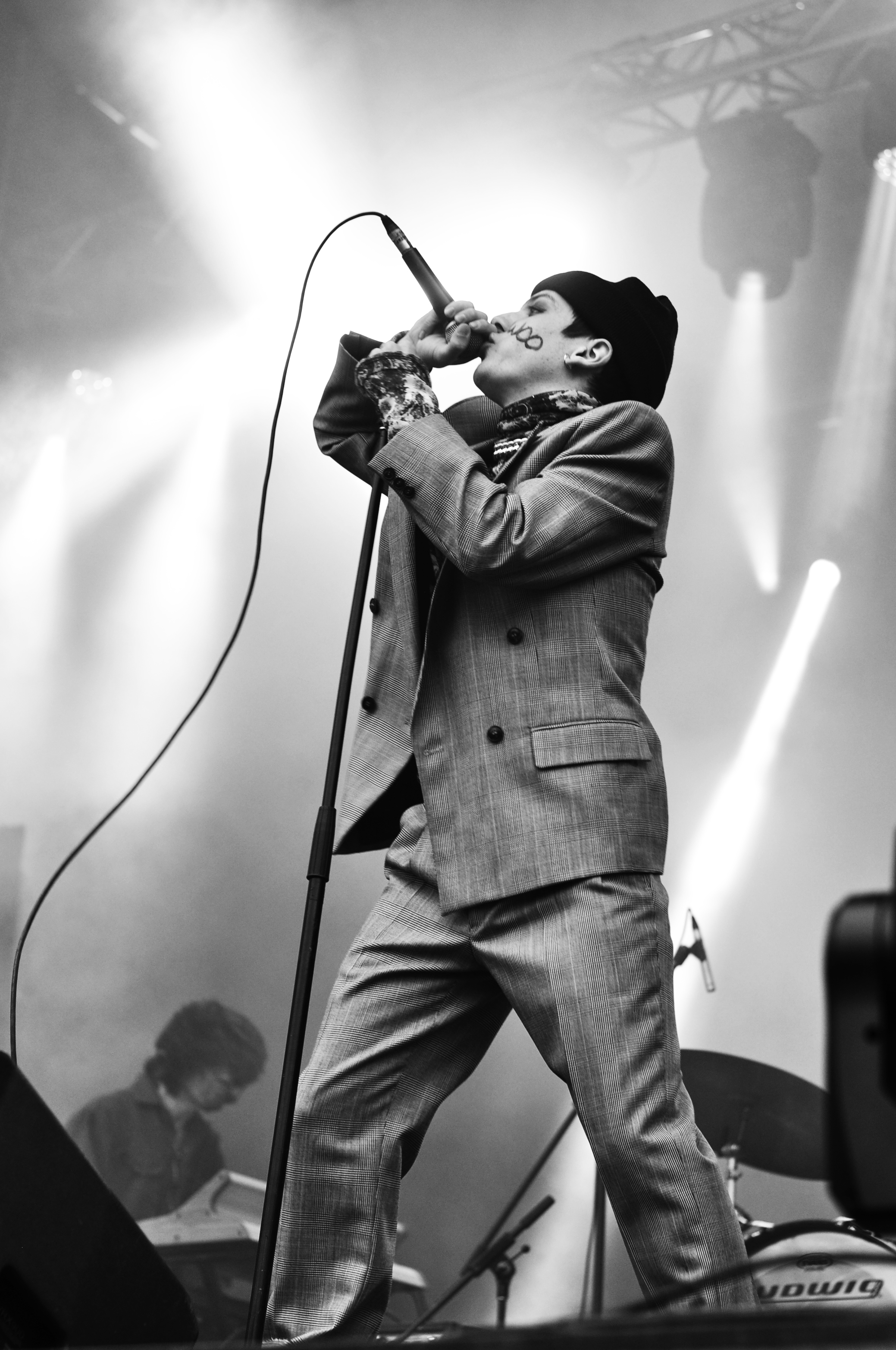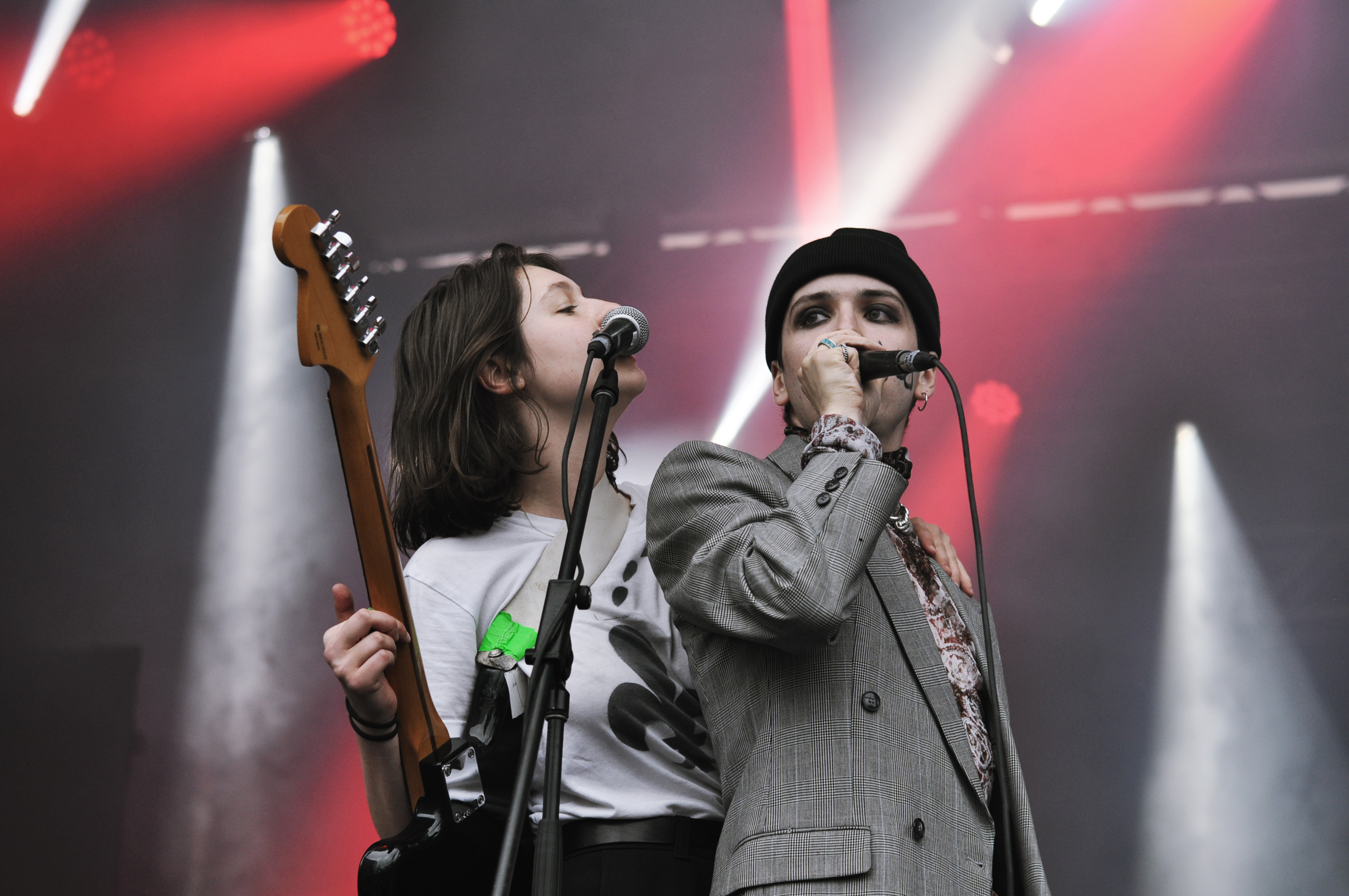 Enchaîne Hubert Lenoir. La vedette du moment, l’enfant terrible du Québec qui revient d’une tournée hors-Québec qui l’a laissé lui, et son groupe, sur les rotules. Ce n’est pas pour rien qu’il annonçait la semaine dernière que ses trois shows programmés pour les Francos de Montréal cet été seraient ses derniers pour son spectacle autour de Darlene. Si le jeune homme a la mine un peu fatiguée, on ne peut pas dire qu’il ne se donne pas à 100% pour son retour au Québec face à une foule de fans bien compacte. Lui qui était programmé dans un bar de la rue St-Hyacinthe l’année passée, se retrouve sur la scène principale cette année, en tête d’affiche. Crowd-surfing, jeter de micro, French kiss avec son band, le package Hubert Lenoir habituel fait toujours son effet.