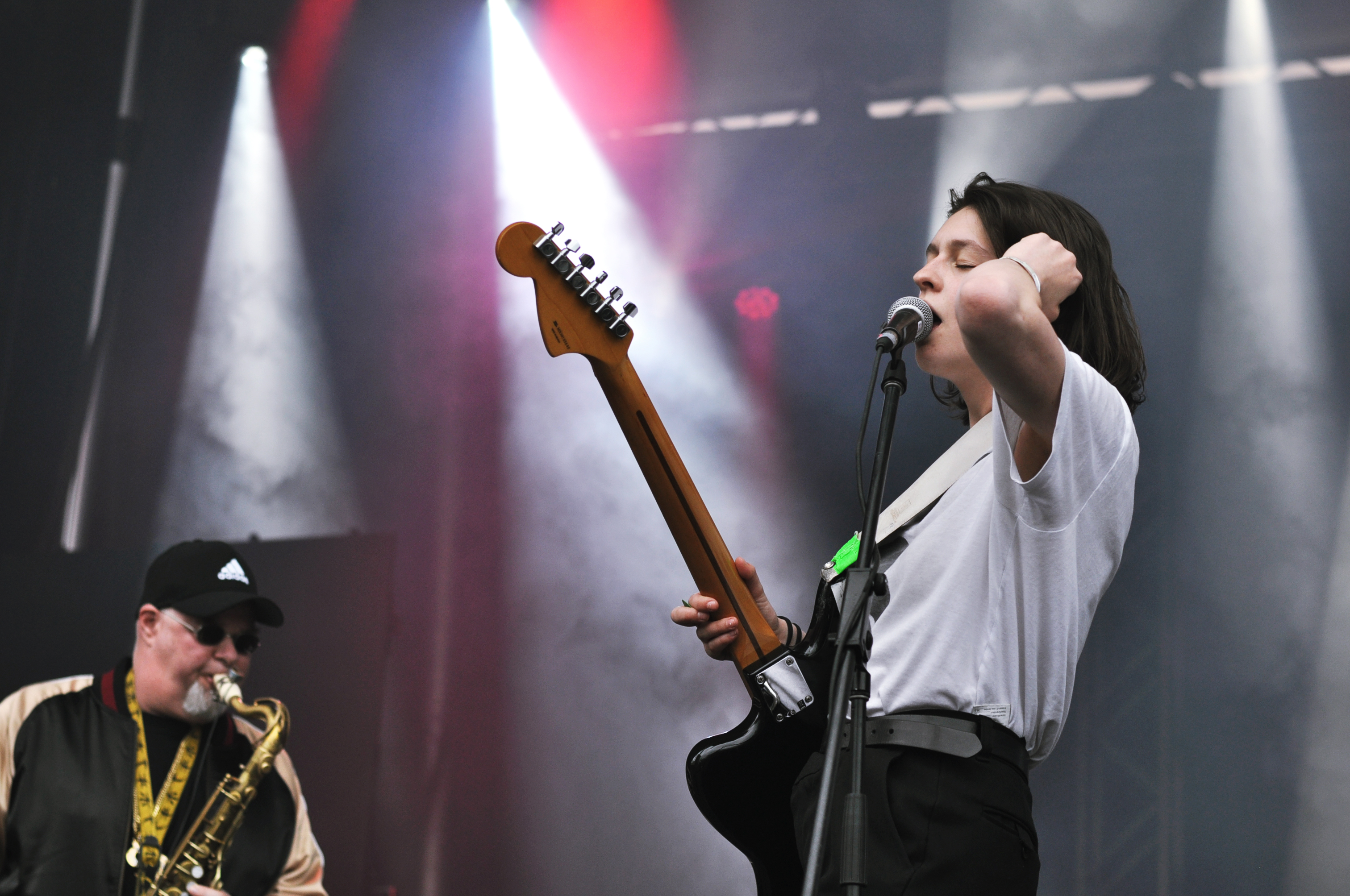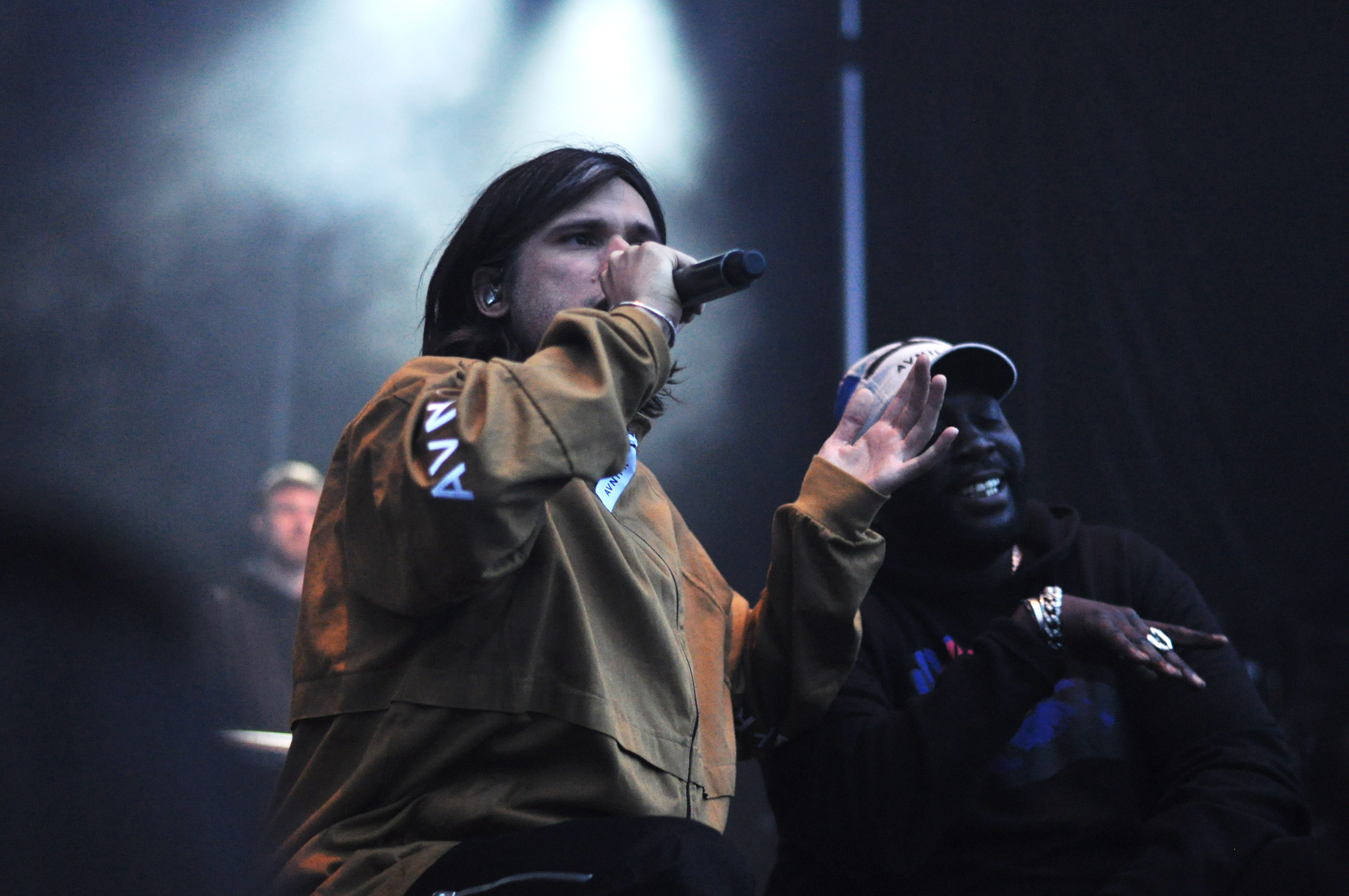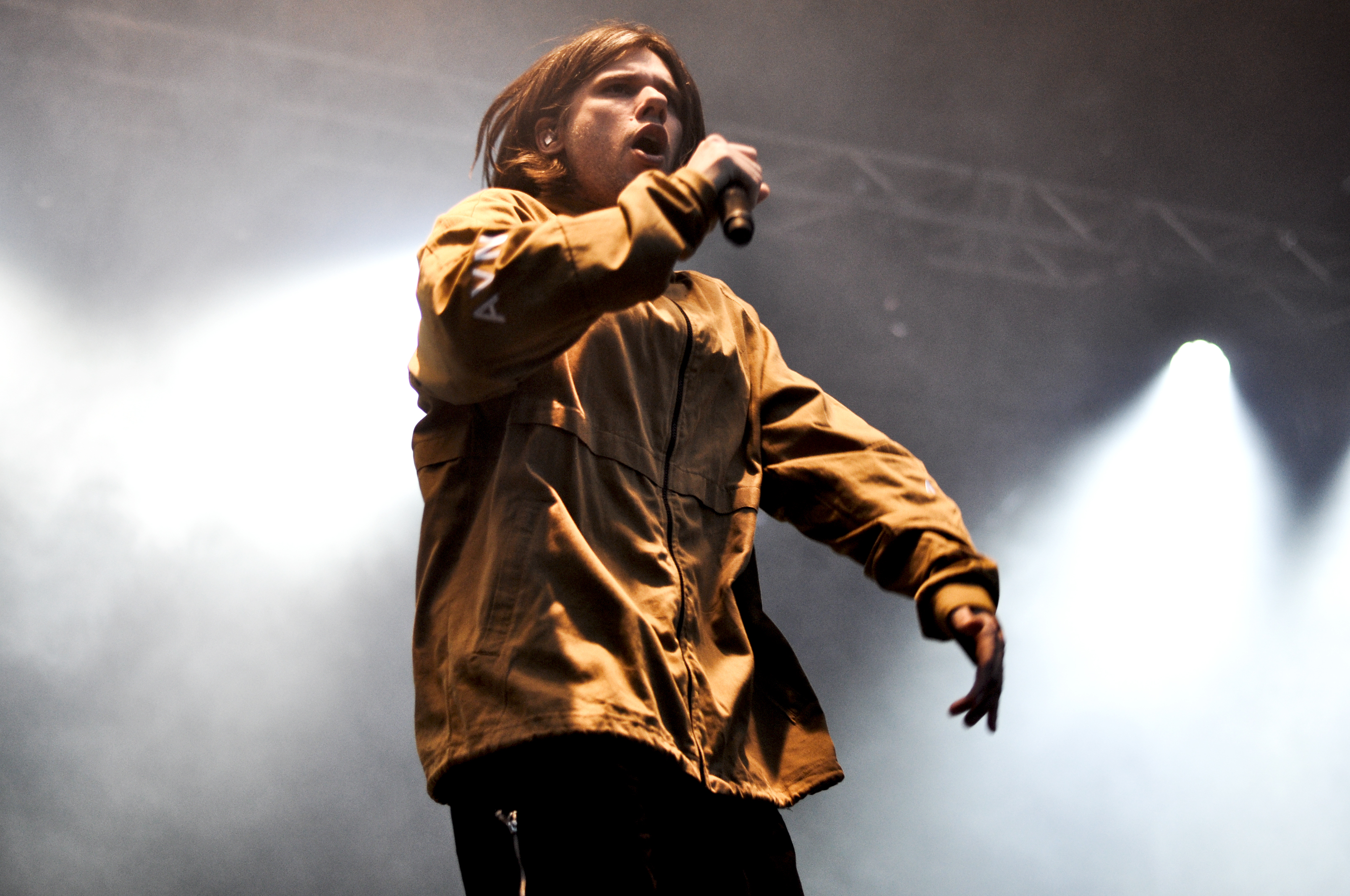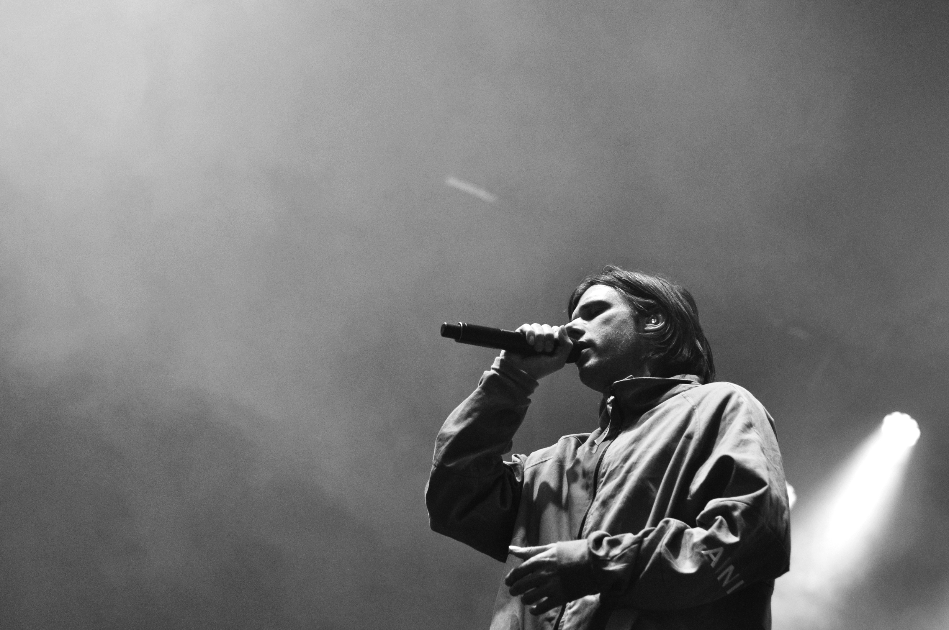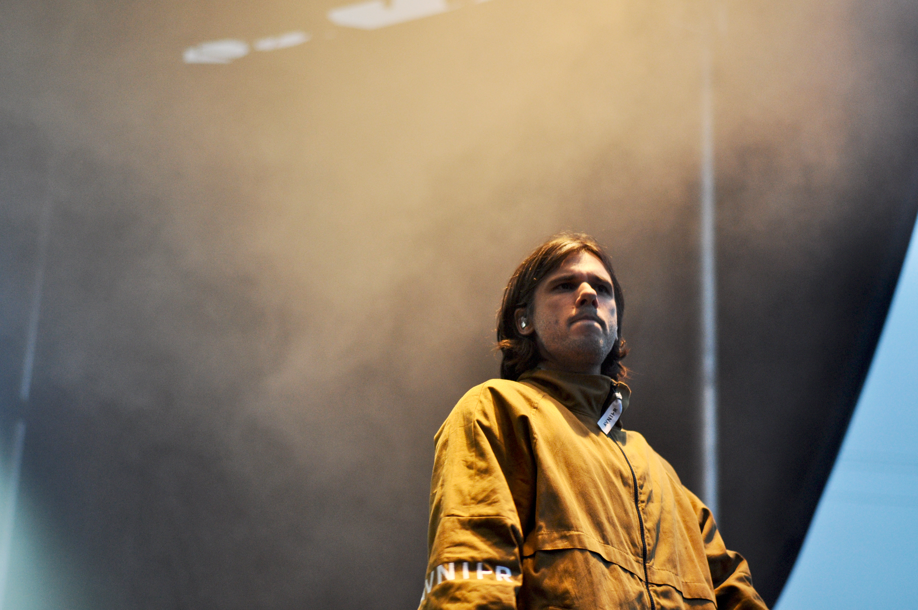 Une autre tête d’affiche prend la relève. Nul autre qu’OrelSan, qui revient lui aussi au Québec, quelques mois après ses deux dates au MTelus de Montréal. Il délivre un set efficace et droit, majoritairement fourni des chansons de La Fête est finie, son dernier album, ainsi qu’un nouveau titre. Accompagné sur scène de quatre musiciens qu’il prend soigneusement le temps de présenter, le set OrelSan est bien rodé, du début explosif “Basique”-“La pluie”-“Bonne meuf”, en passant par “Le chant des sirènes” qui vient réveiller Sainte-Thérèse. En voyant le parterre un peu moins rempli que pour Hubert Lenoir on se demande juste si le décalage de langue et les références franco-françaises ne sont pas un frein à l’adhésion totale du rappeur normand en terres québécoises. Nous, en tout cas, comme la moitié du public français ce soir-là, on kiffe notre race en écoutant ces textes acérés et intenses (“Notes pour plus tard”, “Tout va bien”) qui nous rappellent combien OrelSan est l’un des meilleurs rappeurs de ces dernières années.