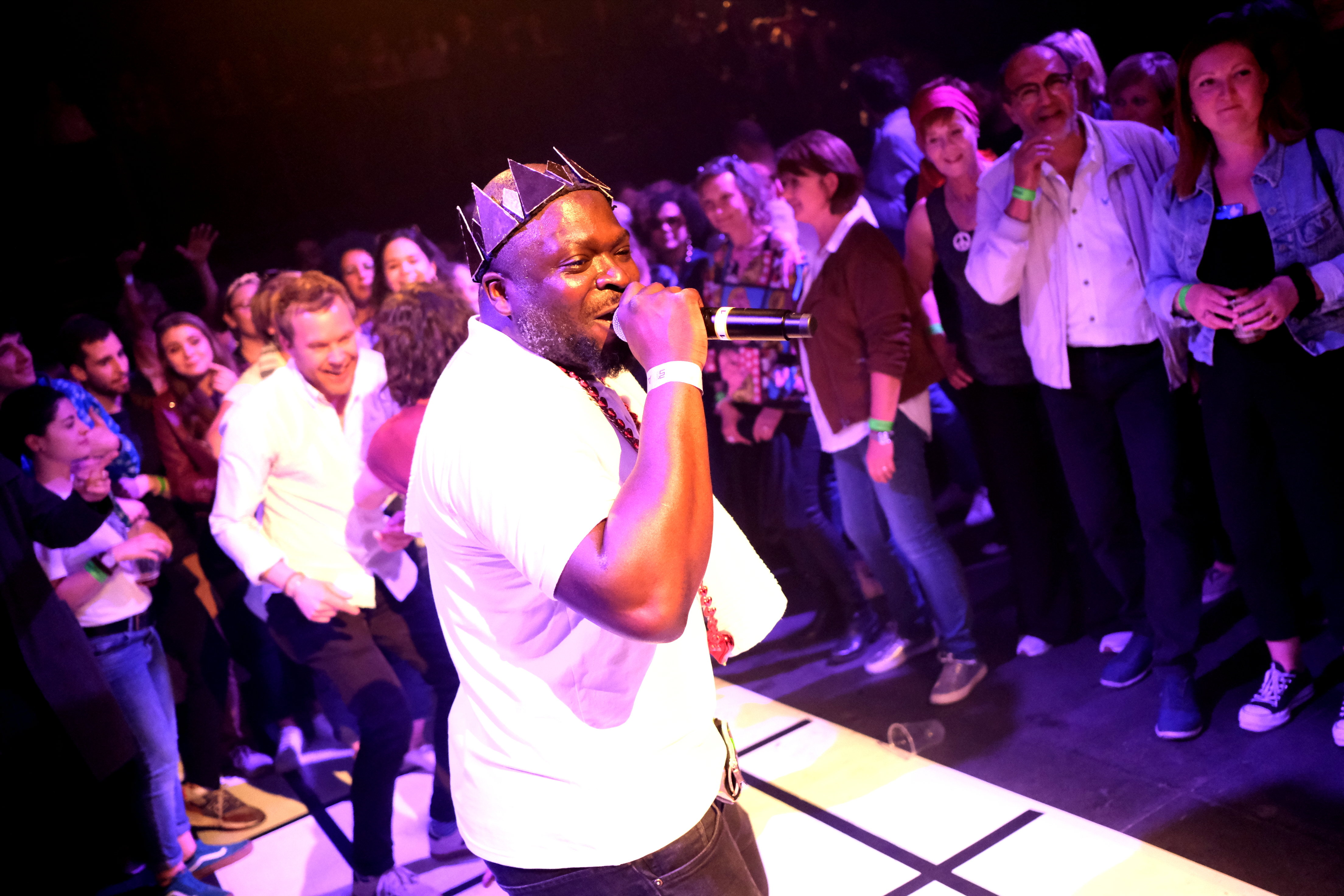 Imagine une bande de potes jouant de la funk/soul sur une scène, avec pour seul objectif de faire danser la foule. Ajoutes-y des moments de danse en file où chacun est invité à laisser exprimer son body à coup de chorégraphies improvisées et déguisements à paillettes. Tu tiens l’idée de base. Pour le reste, il faut le vivre. Et autant le dire, il y a eu du niveau à Nancy. 2h30 de concert et 2h30 de danse non-stop, 2h30 pour Baya l’ambianceur à sauter et motiver les troupes. 2h30 pour les Fat Badgers à suer corps et eau devant leurs instruments. 2h30 pour le public à se déchaîner, se déhancher, délirer, jumper, bouger. La preuve que le concept s’exporte et qu’il doit continuer à le faire. Next stop : la gare de Strasbourg pour la fête de la musique. Rendez-vous le 21 juin.
