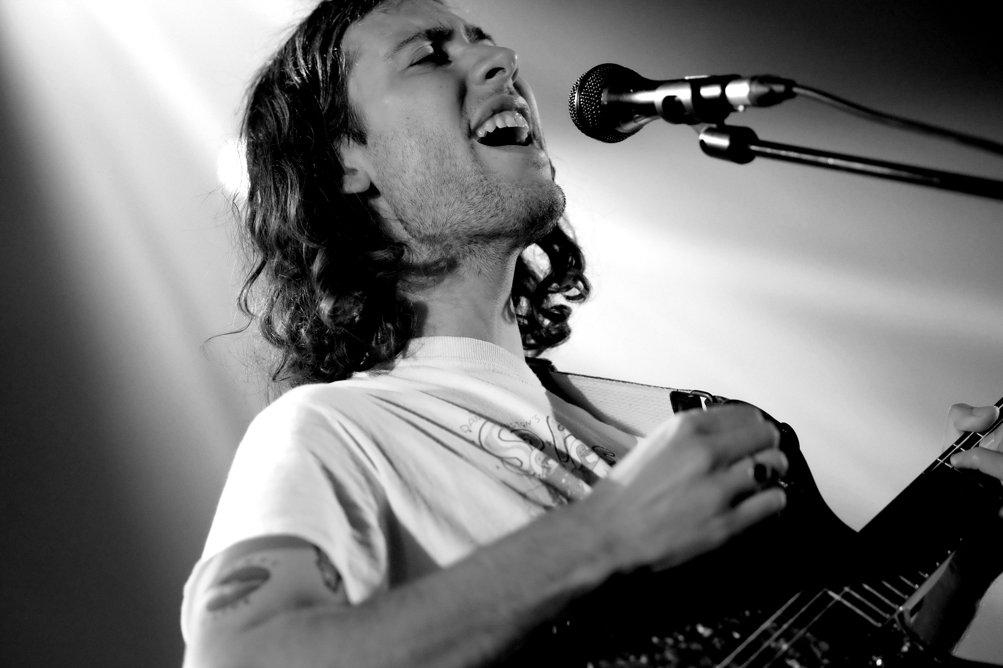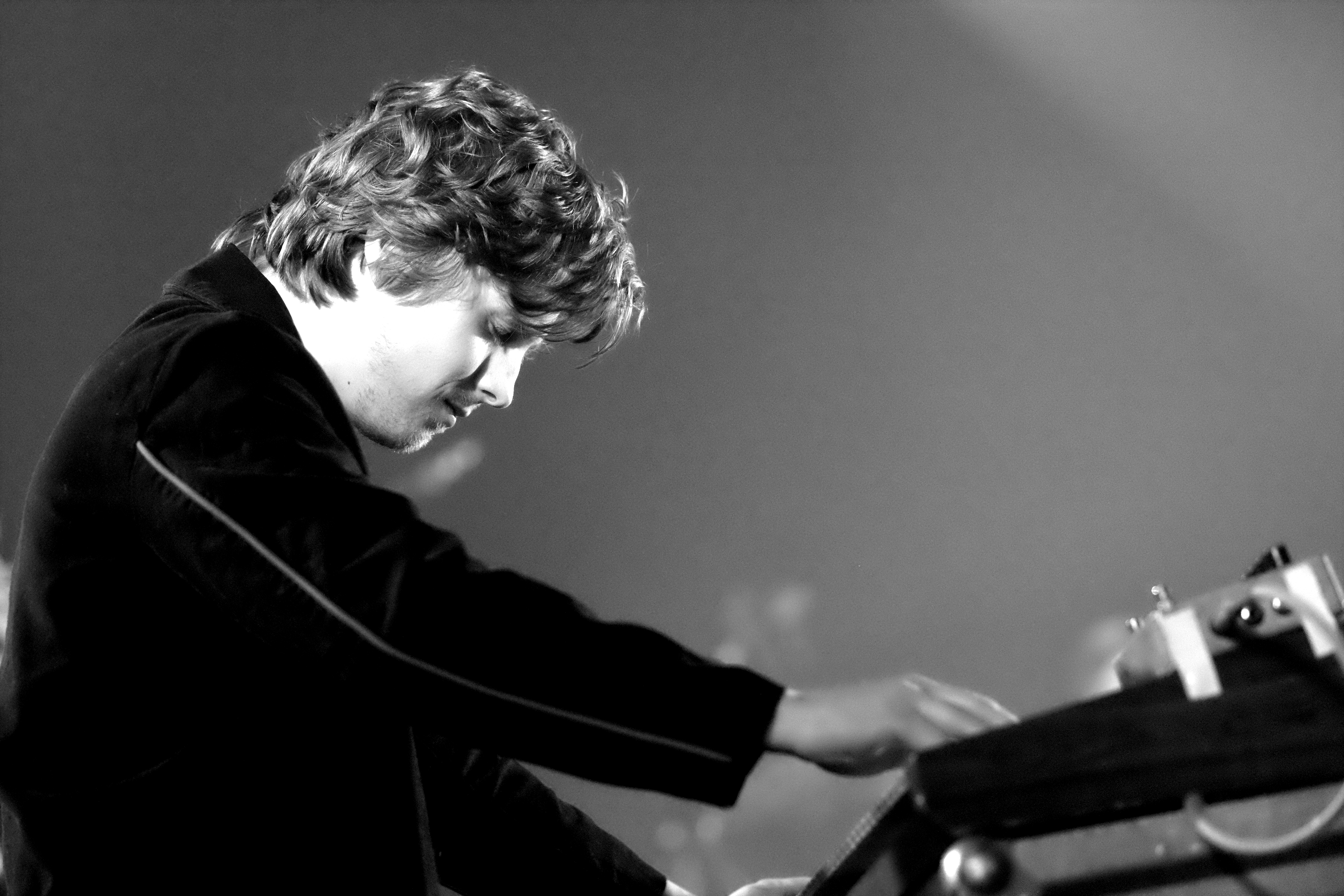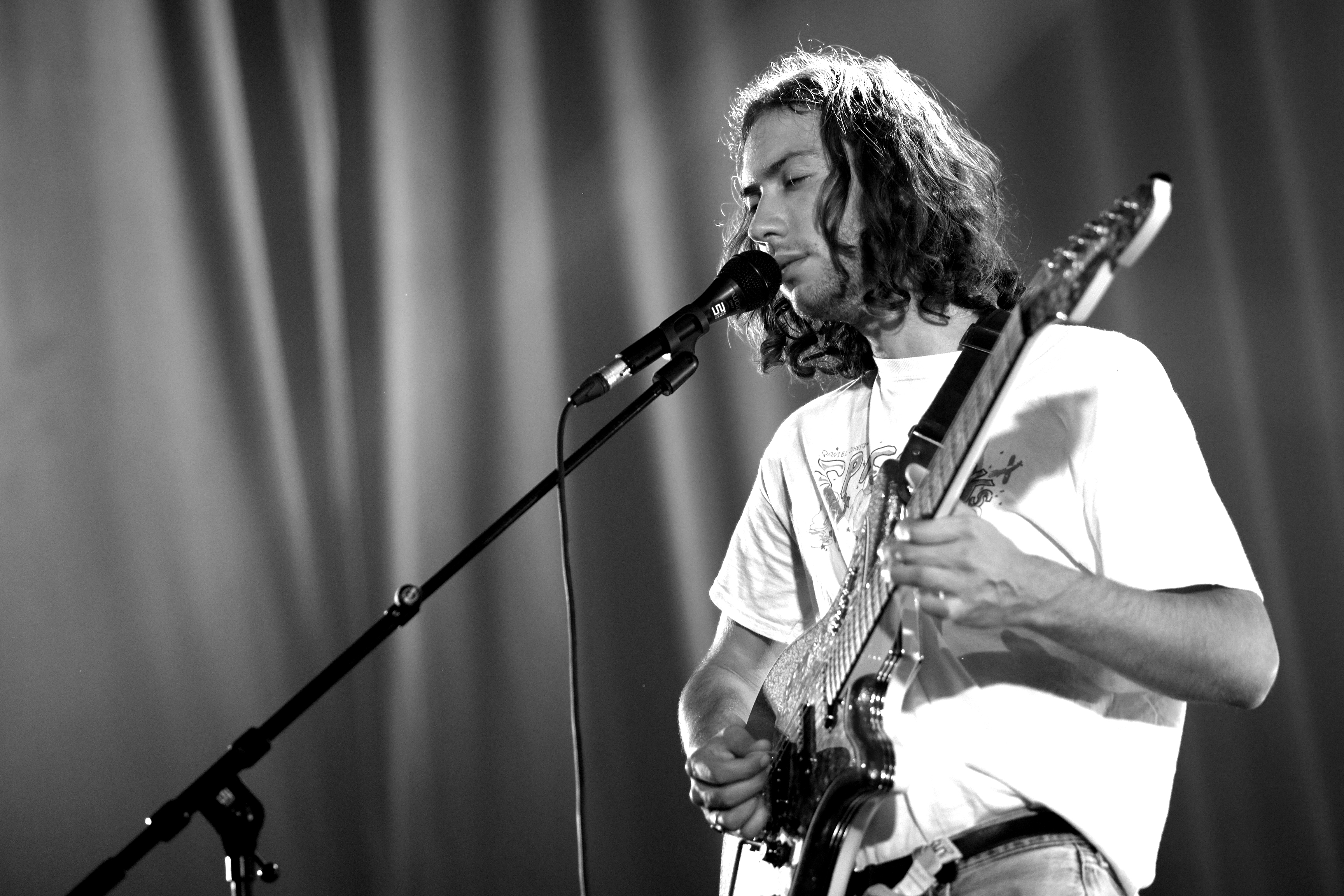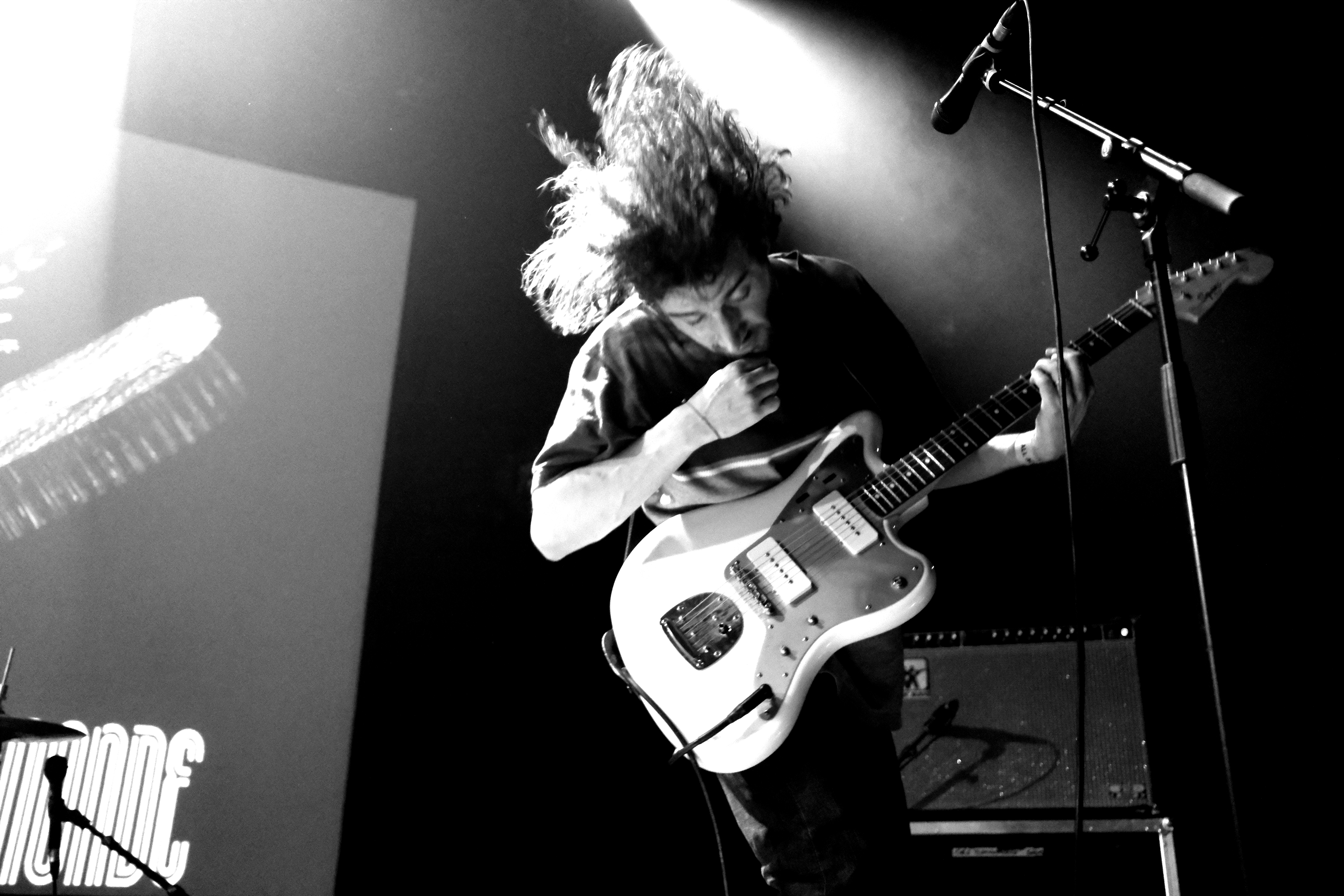 Une entrée en matière plutôt légère, avec Louise-Ellie, une guitariste du coin, puis Miel de Montagne, prototype même du mec à la musique bulle de savon. L’ancien colloc de Jacques fait des titres pop un peu naïfs, légers, évanescents, boîte à rythme en support et guitare électrique en renfort. Le genre de musique qui fait remuer doucement les yeux fermés, le sourire aux lèvres et le cerveau en veille. On se met parfaitement dans l’ambiance pour la suite.