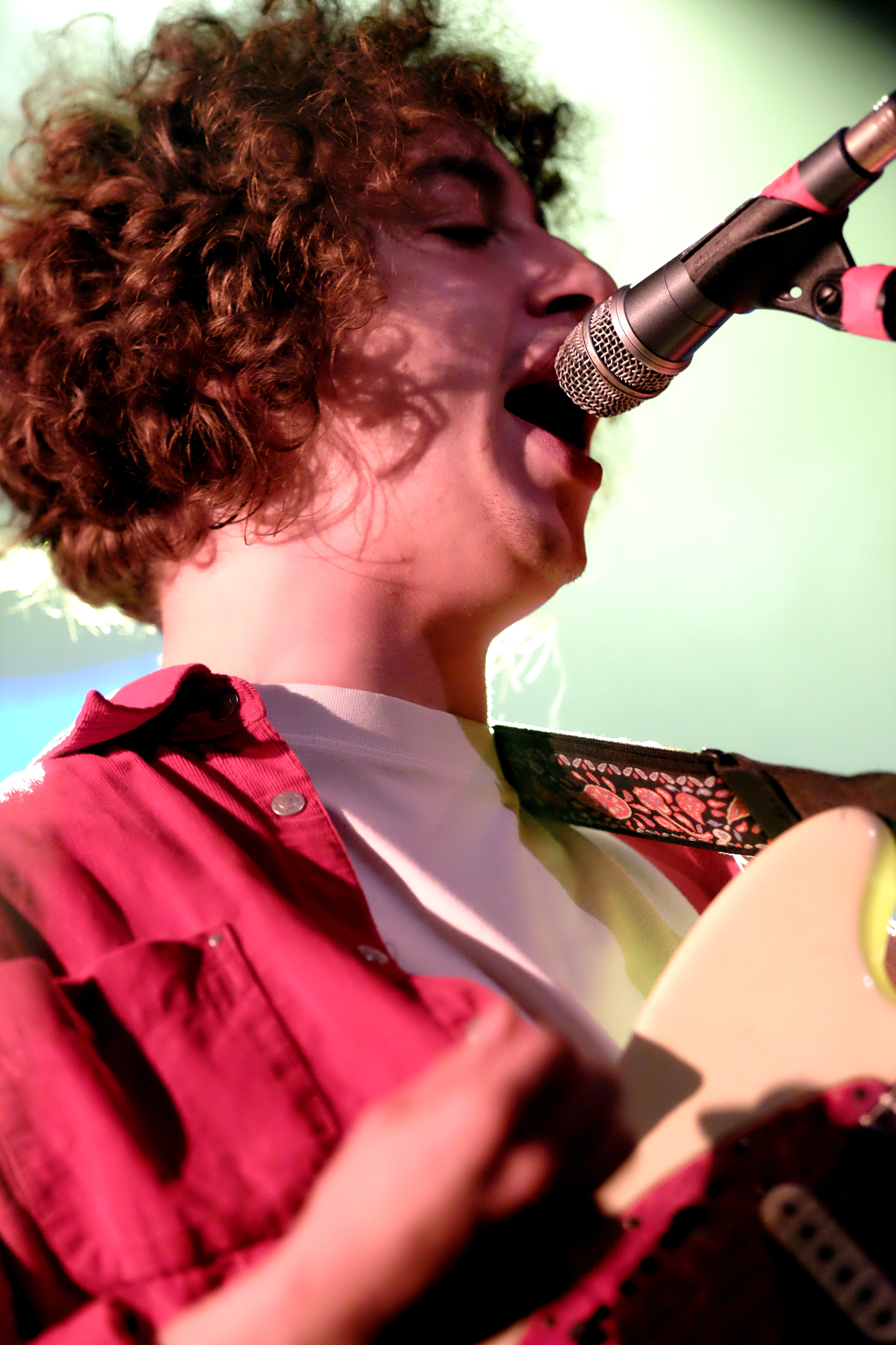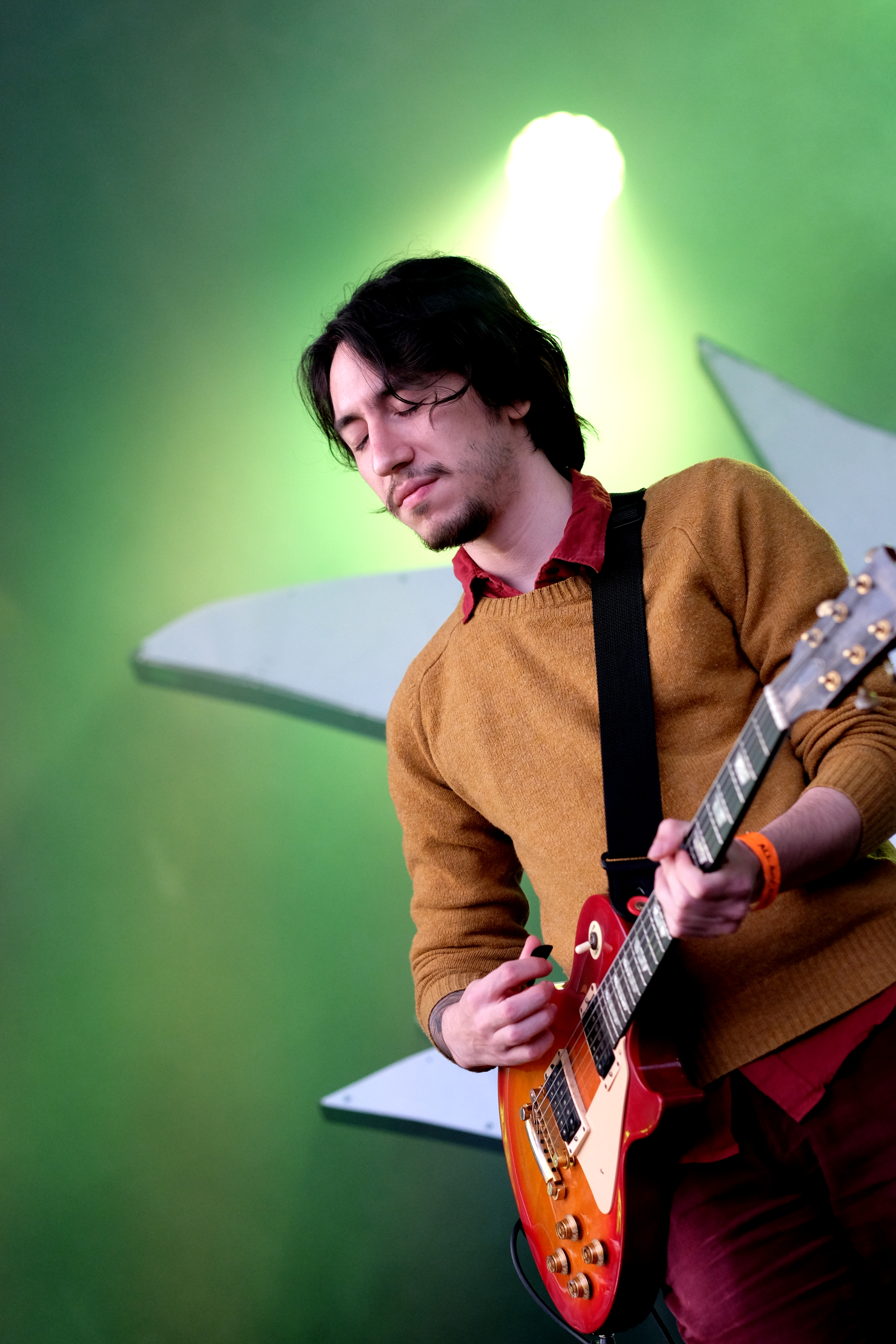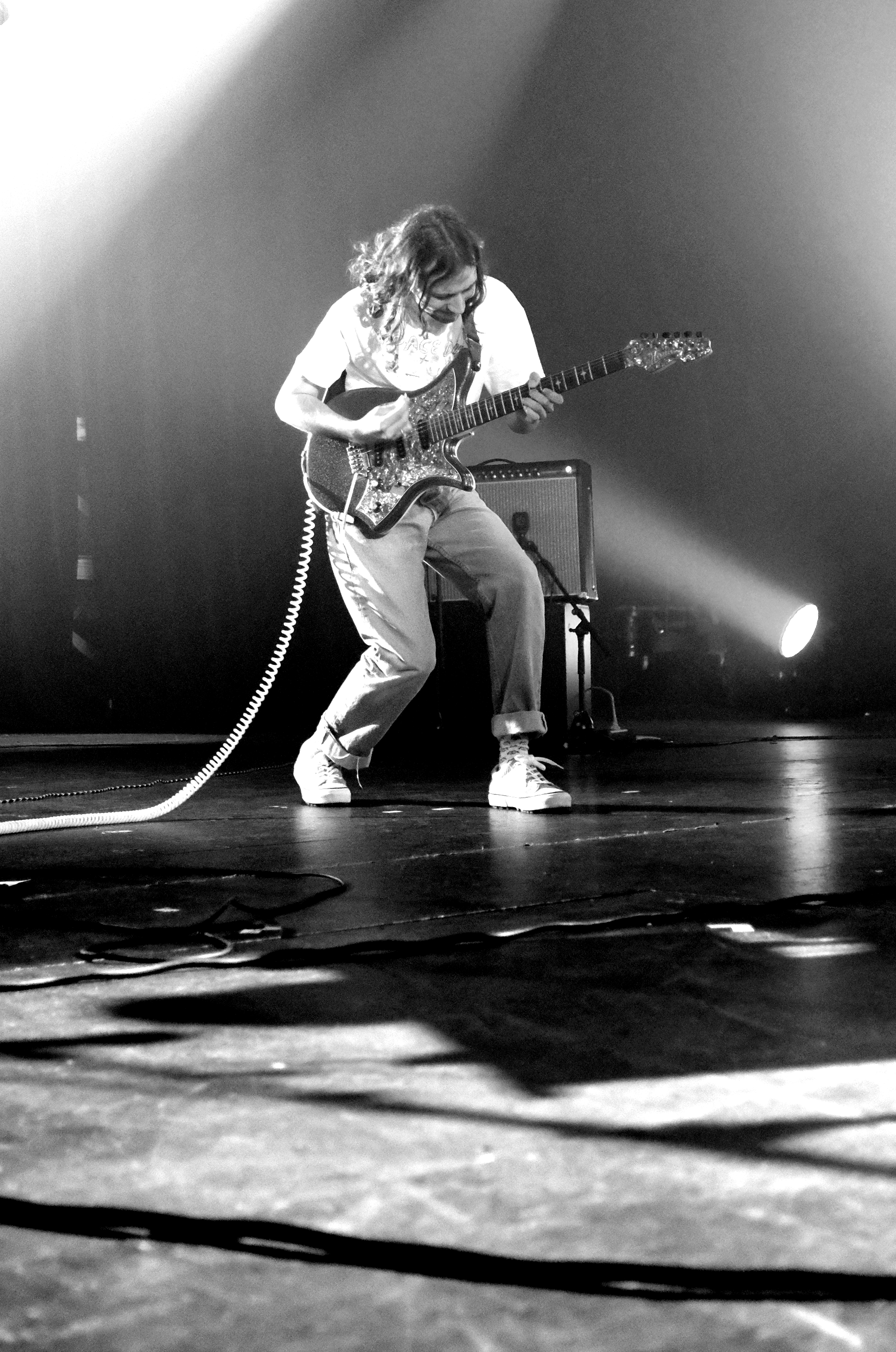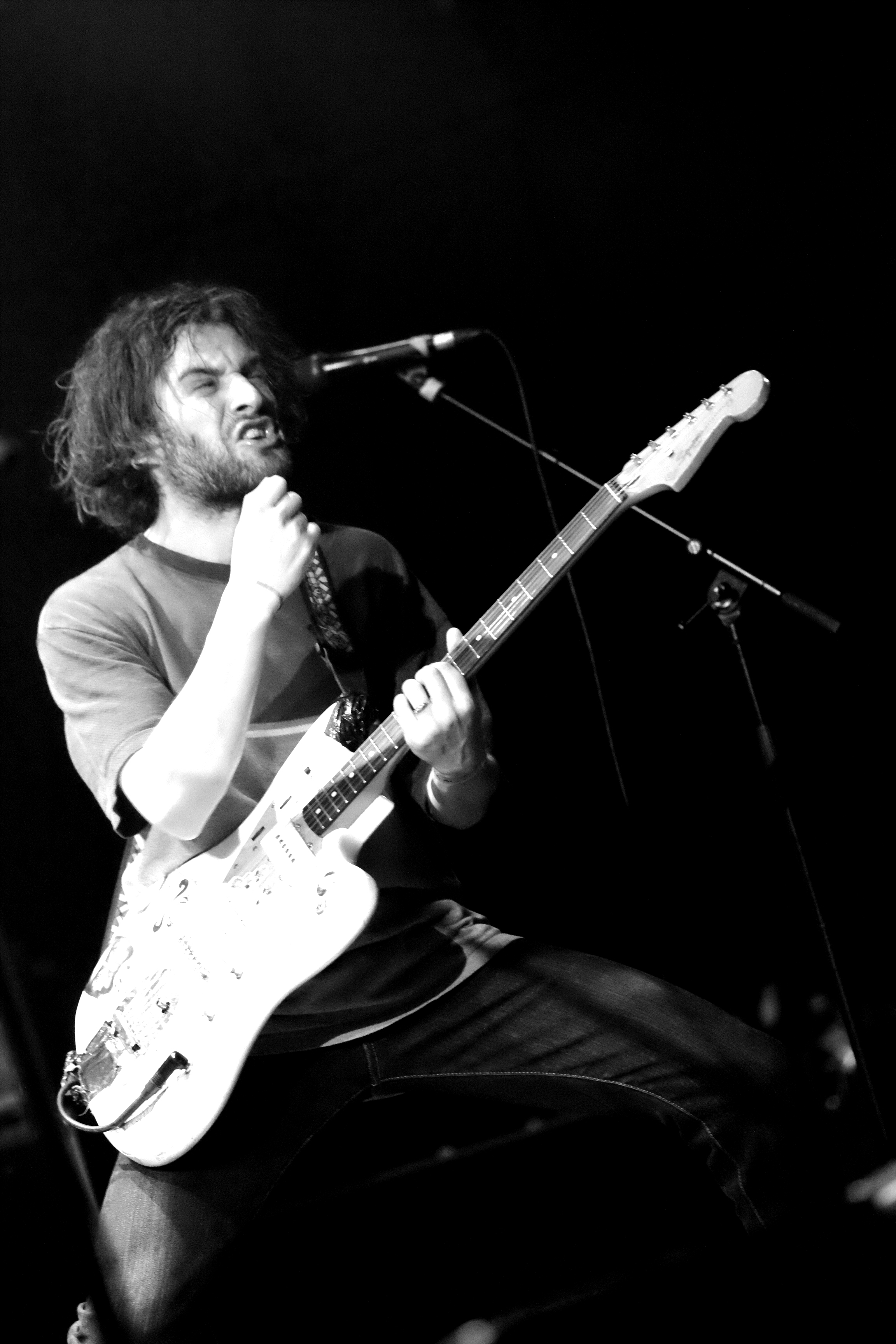 Une entrée en matière plutôt légère, avec Louise-Ellie, une guitariste du coin, puis Miel de Montagne, prototype même du mec à la musique bulle de savon. L’ancien colloc de Jacques fait des titres pop un peu naïfs, légers, évanescents, boîte à rythme en support et guitare électrique en renfort. Le genre de musique qui fait remuer doucement les yeux fermés, le sourire aux lèvres et le cerveau en veille. On se met parfaitement dans l’ambiance pour la suite.