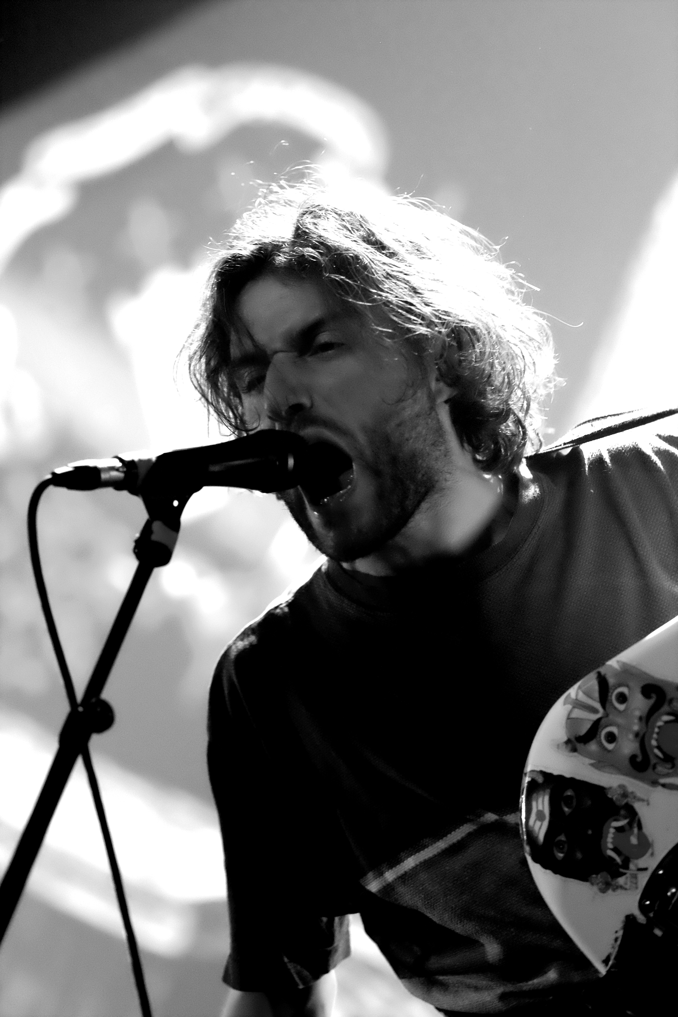 Et puis est arrivé 2panheads. Et là, les mots manquent. La claque intersidérale prise pendant ce concert empêche de trouver réellement les termes les plus appropriés pour décrire leur musique. Alors parlons ambiance créée. Un mélange de concert rock et de club dark et underground. Un mur de son à la fois punk et cold wave. Des paroles scandées comme des slogans et des bruits à faire décoller un hélico. Et cette envie viscérale de plonger tête la première dans le noir intense et électrique, cette impression d’apesanteur vrillée d’éclairs stroboscopiques. 2panheads est à découvrir sur scène. Absolument.
