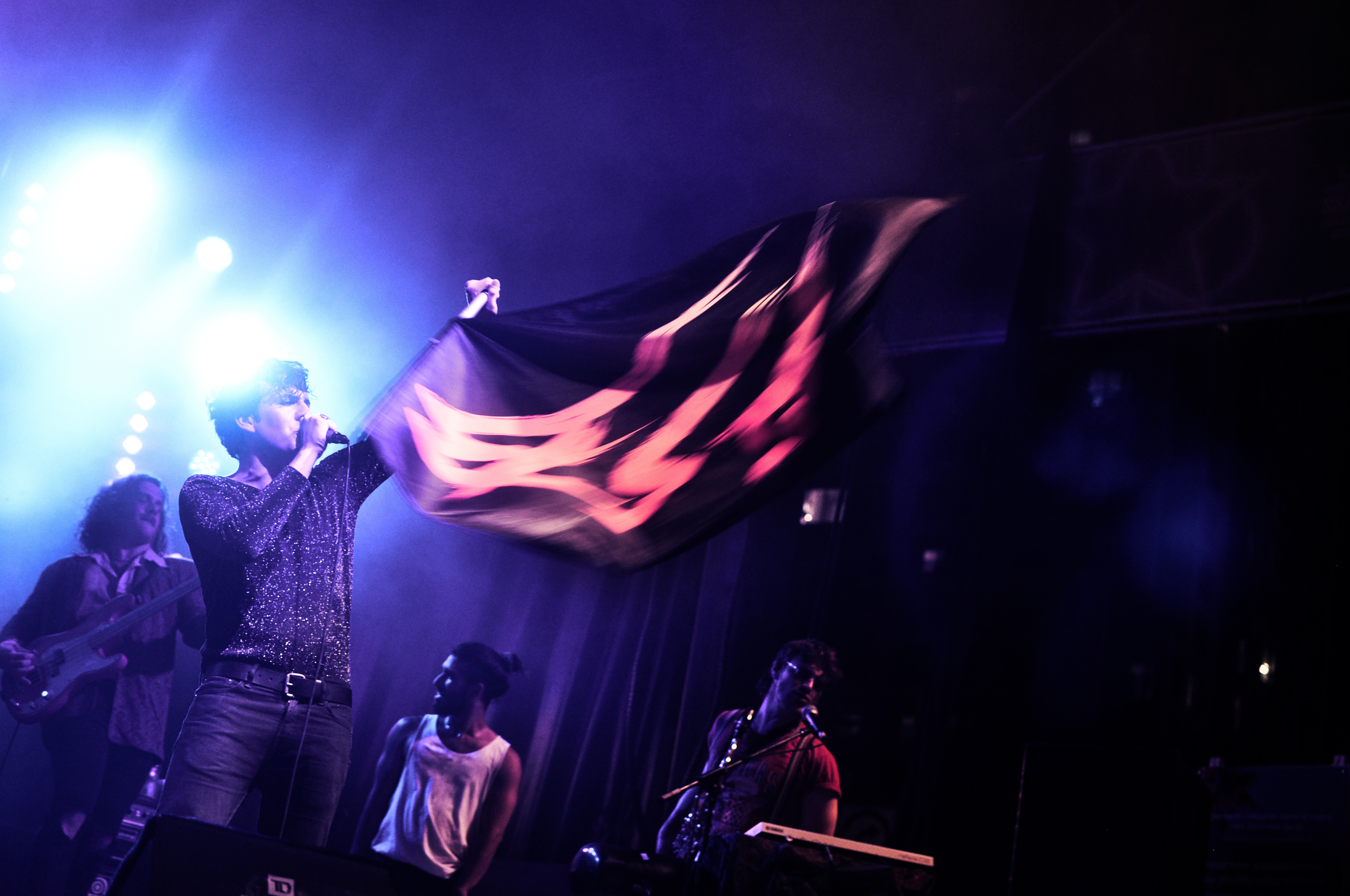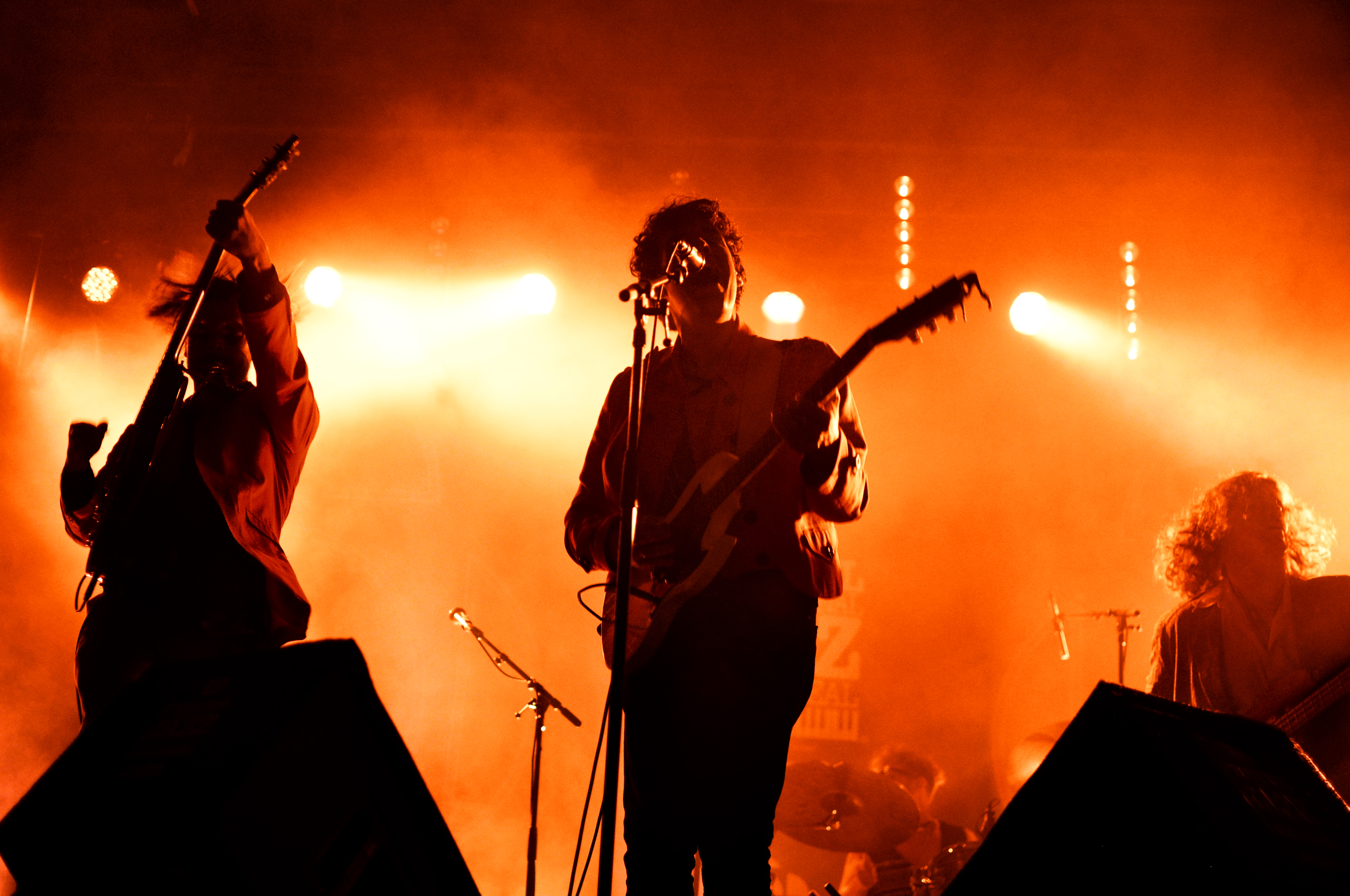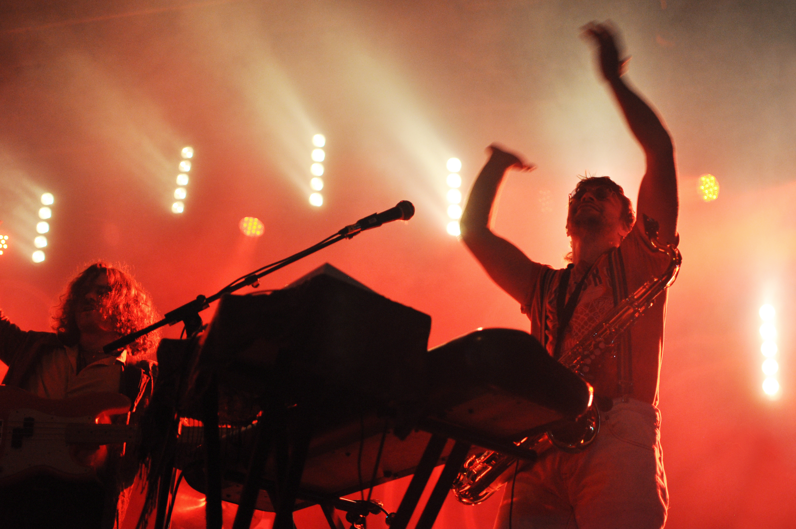 La groovy et rétro “Fashion” ouvre ce concert de feu, suivi d'”Electrify”, leur dernier single en date. Puis, vient “$ummertime Fun”, qui est, comme le fait remarquer Julien, de circonstance, pour le plus gros show de leur carrière. Le seul moment de répit a lieu lors des premières mélodieuses et touchantes minutes de “People” qui, entamée en clavier-voix, finit par escalader en intensité alors que le reste du groupe se joint à la messe. Un titre que l’on espère retrouver sur un prochain EP… ou album.