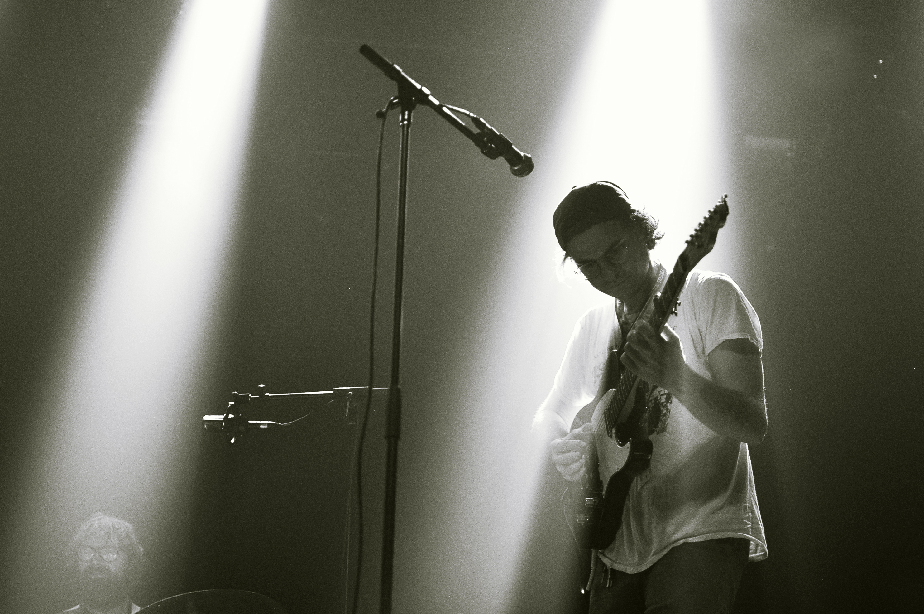 Le moins que l’on puisse dire c’est que Walker est à l’aise avec le public. Entre chaque longue pièce, il fait des blagues et remarques enfantines, s’excuse parfois lorsqu’il trouve qu’il va trop loin ou quand il joue une intro mal accordée. Mais il finit toujours par en rire, sourire au coin des lèvres et regards complices échangés avec ses musiciens.