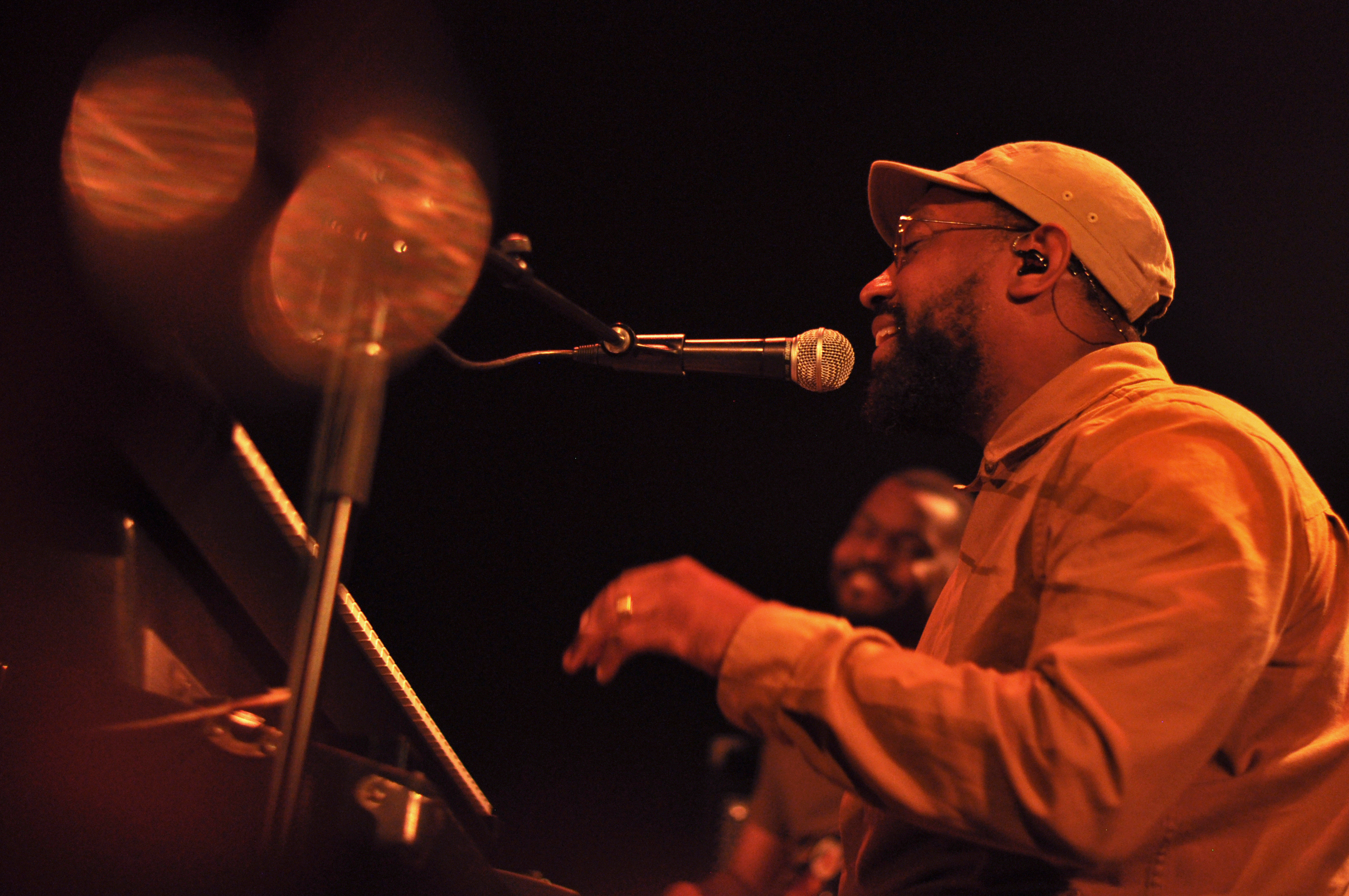 Fin de soirée à l’Astral où P. J. Morton se produit pour la première fois à Montréal. Dans les faits, l’Américain est déjà venu en ville, mais jamais avec son groupe à lui (il a accompagné pendant plusieurs années Maroon 5). L’artiste est accompagné de trois musiciens et deux choristes, tous en demi-cercle sur scène. Morton, derrière son clavier est sur l’extrémité droite, casquette vissée sur la tête, petite lunettes ronde.